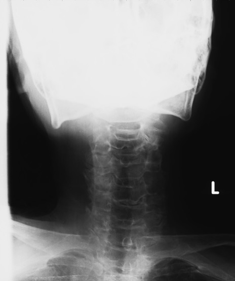 【症例】80歳代女性 【主訴】頸部痛 【現病歴】昨日家の階段を2段くらい上がったところで転倒して受傷。 【既往歴】糖尿病、高血圧 【身体所見】神経学的異常なし。