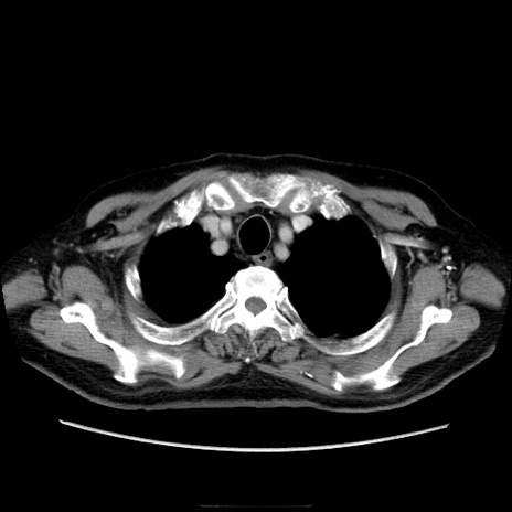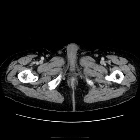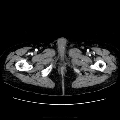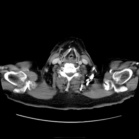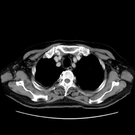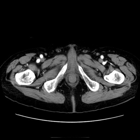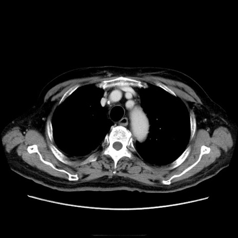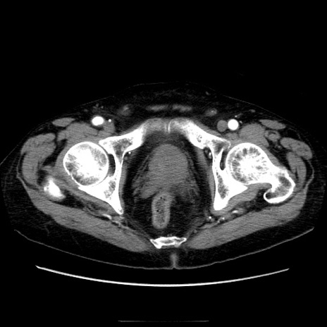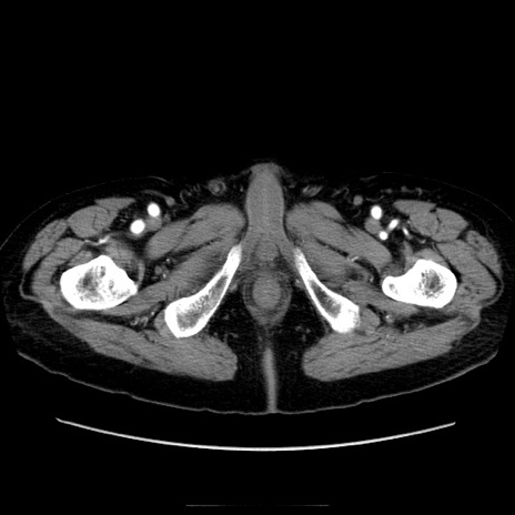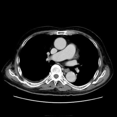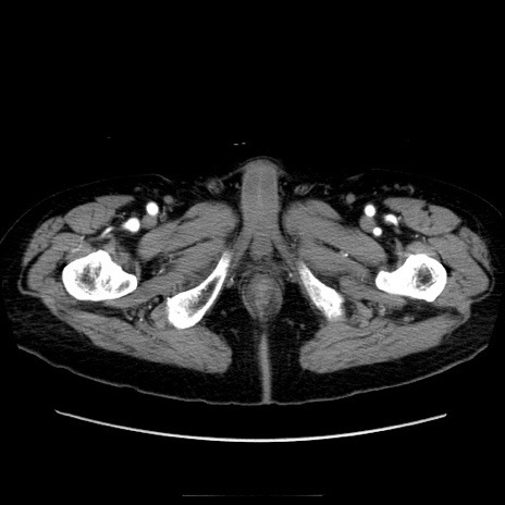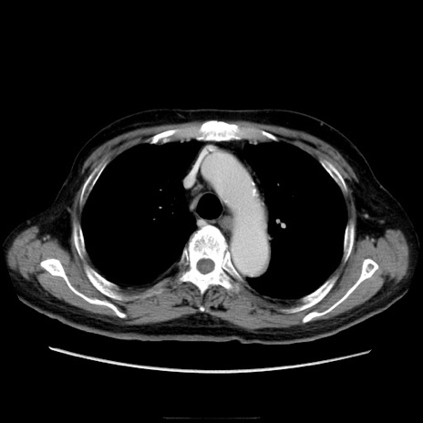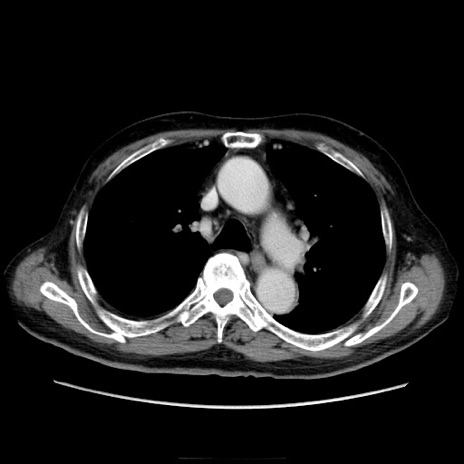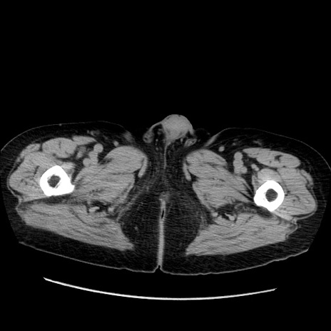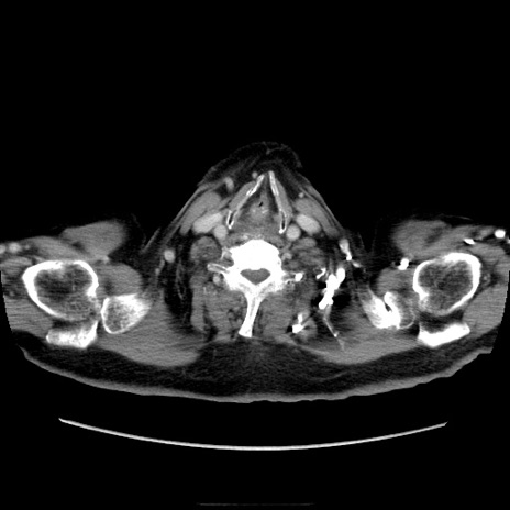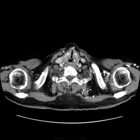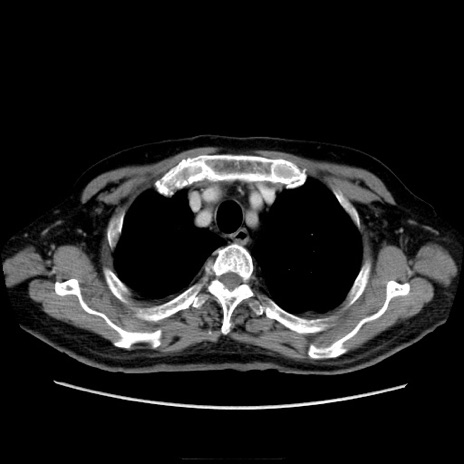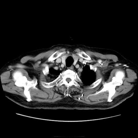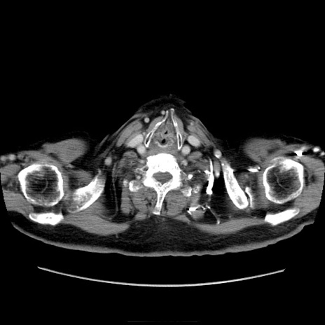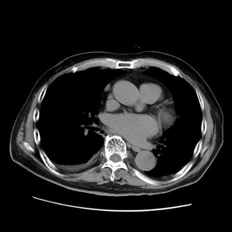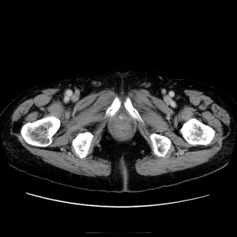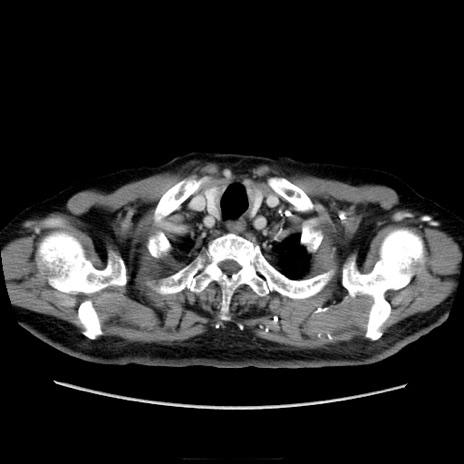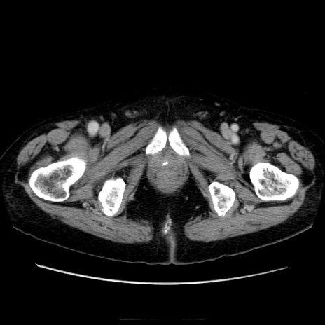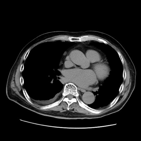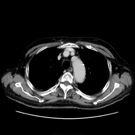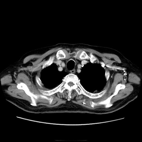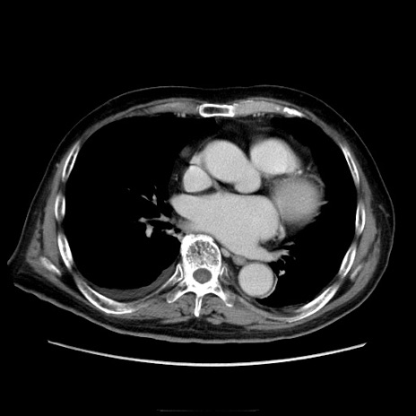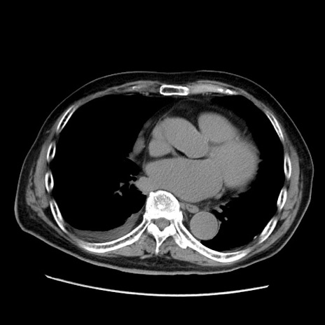 【症例】70歳代男性 【主訴】腹痛 【現病歴】肝硬変・肝細胞癌にてかかりつけの方。約9時間前に食後より腹痛出現。症状が徐々に増悪し、嘔吐出現したため来院。 【既往歴】肝硬変、肝細胞癌(RFA、TACE後) 【身体所見】意識清明、表情苦悶様、BT 36℃、BP 129/78mmHg、P 88bpm、SpO2 97%(RA)、右上腹部から心窩部にかけて圧痛あり、反跳痛なし、筋性防御あり。 【データ】WBC 5800、CRP 0.16