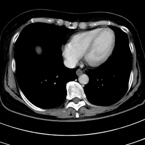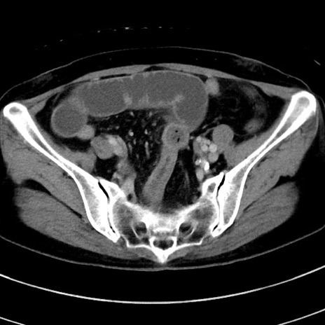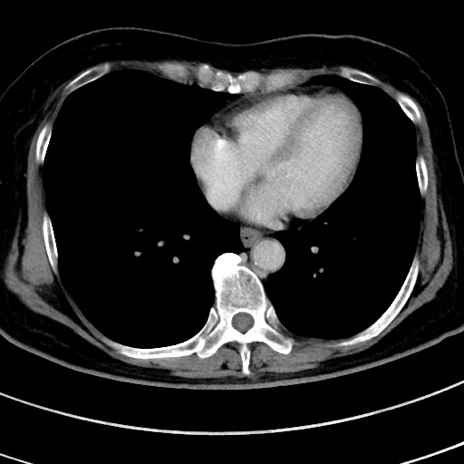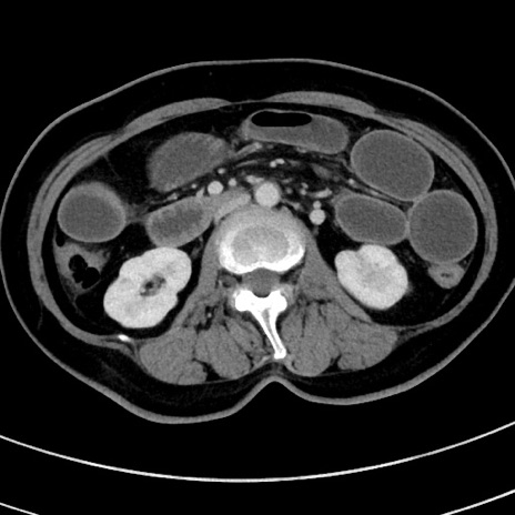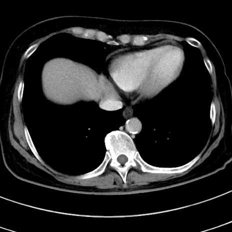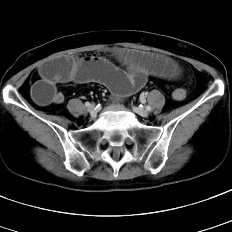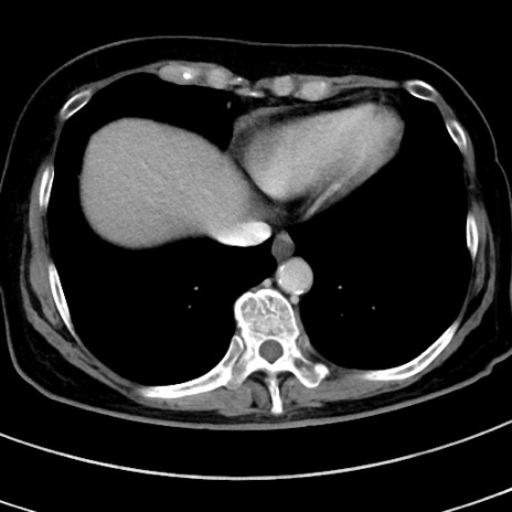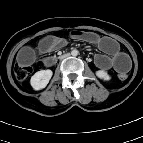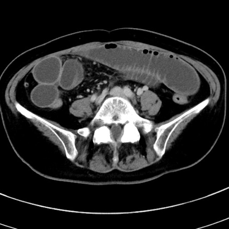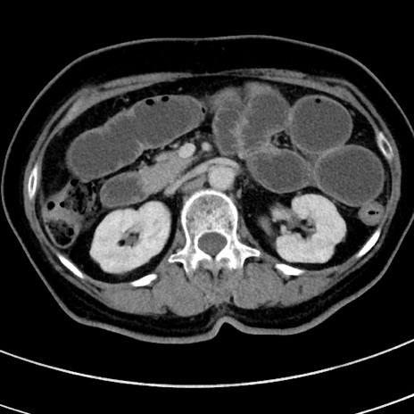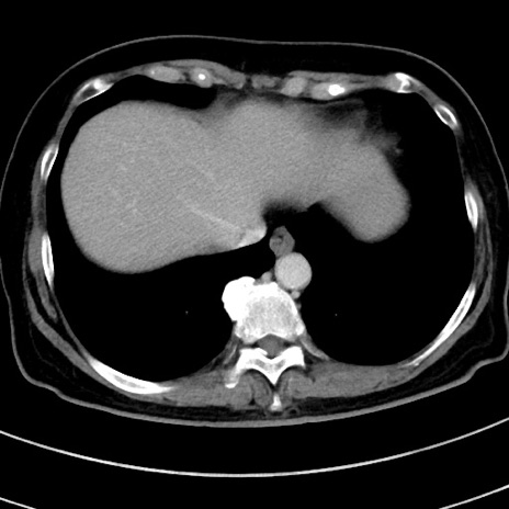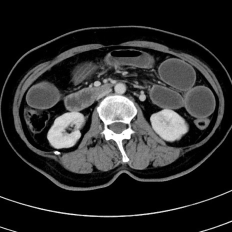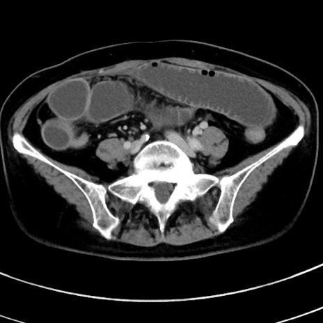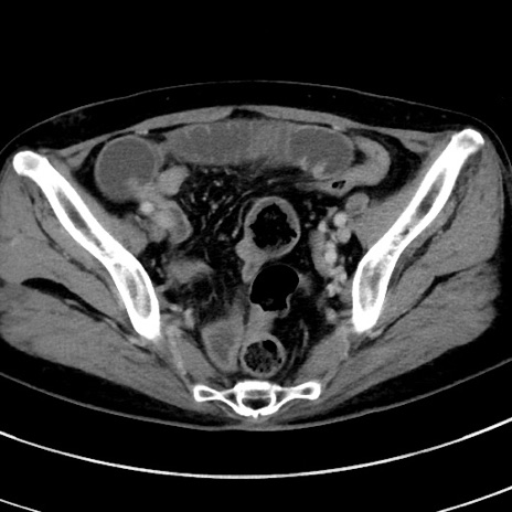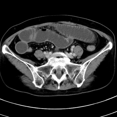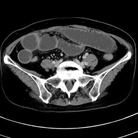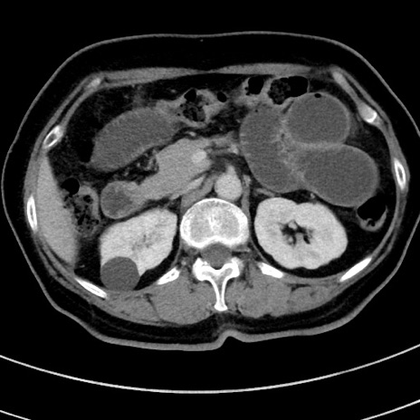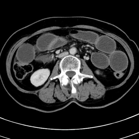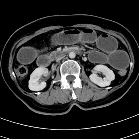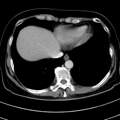 【症例】 60歳代女性 【主訴】むかつき、みぞおちの痛み 【現病歴】3日前よりむかつきがあり、食事がとれない。 【既往歴】糖尿病 【身体所見】発熱なし、心窩部圧痛軽度あるも、腹膜刺激症状なし。 【データ】WBC 7400、CRP 1.92