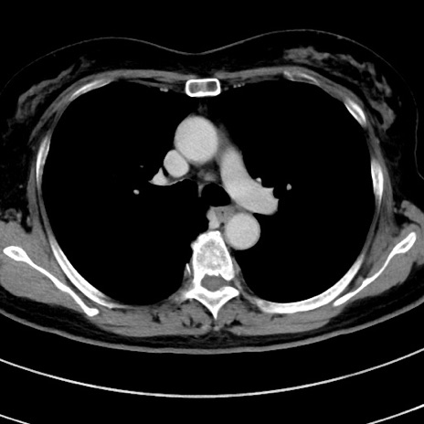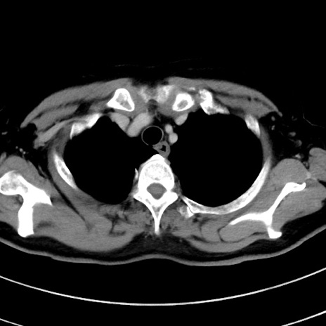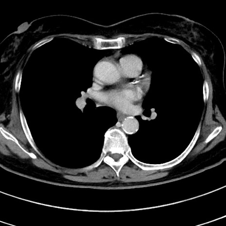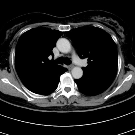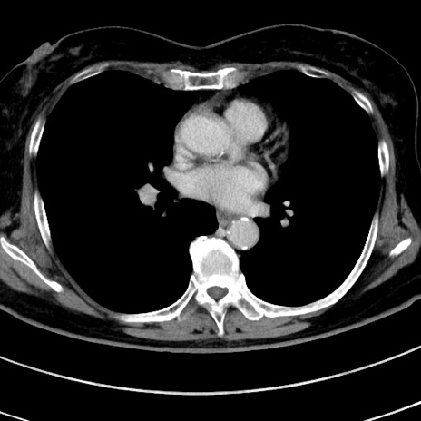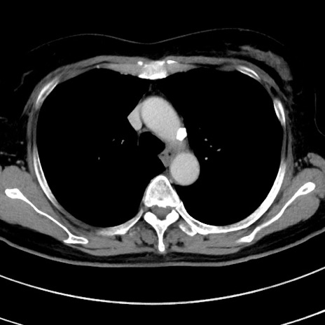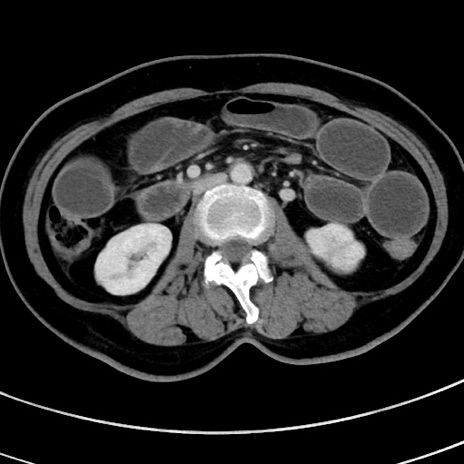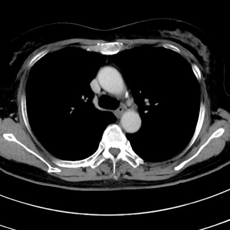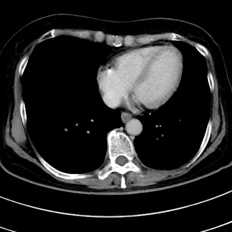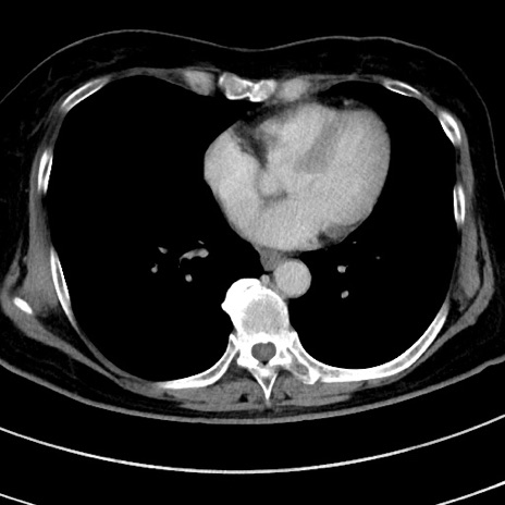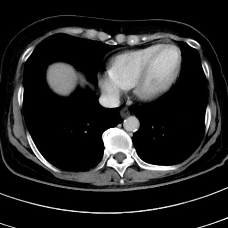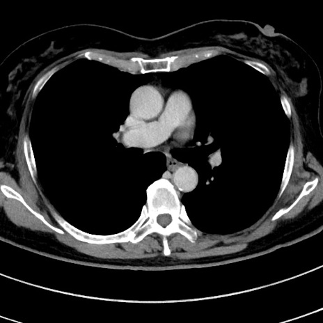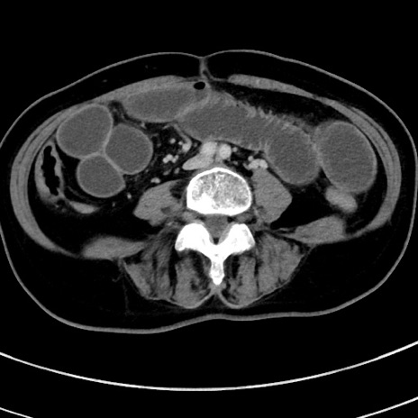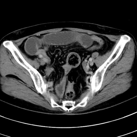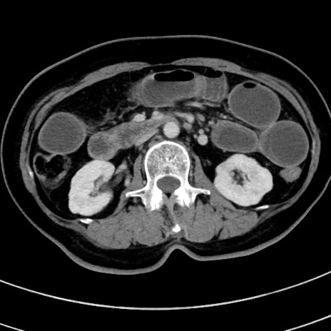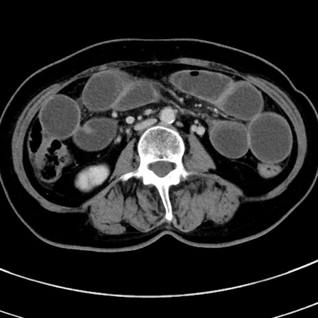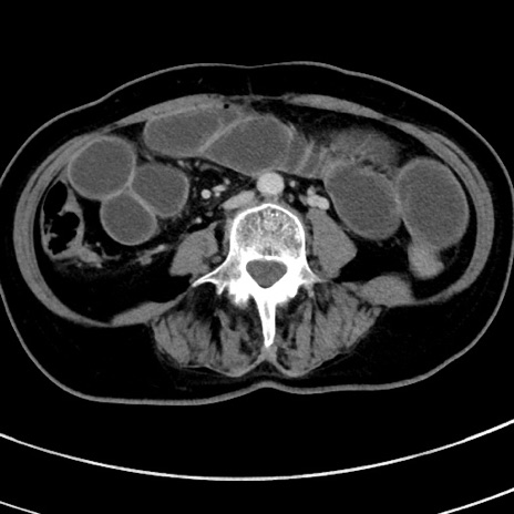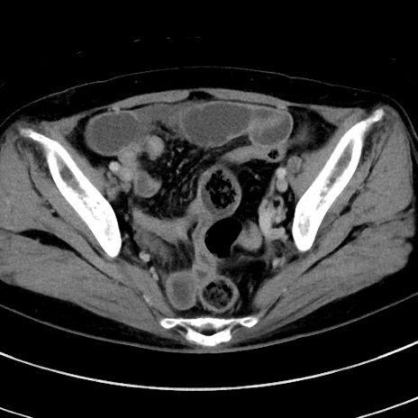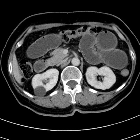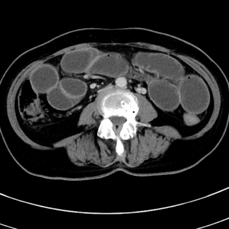 【症例】 60歳代女性 【主訴】むかつき、みぞおちの痛み 【現病歴】3日前よりむかつきがあり、食事がとれない。 【既往歴】糖尿病 【身体所見】発熱なし、心窩部圧痛軽度あるも、腹膜刺激症状なし。 【データ】WBC 7400、CRP 1.92