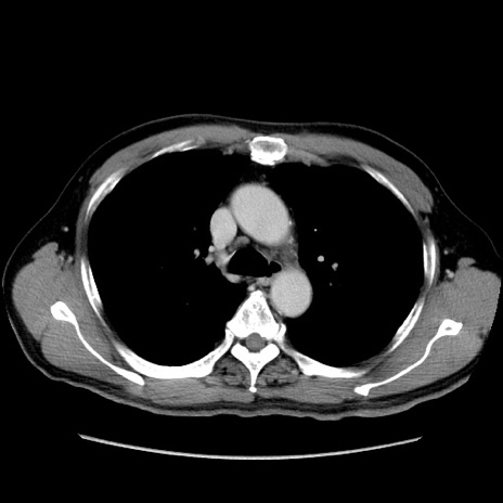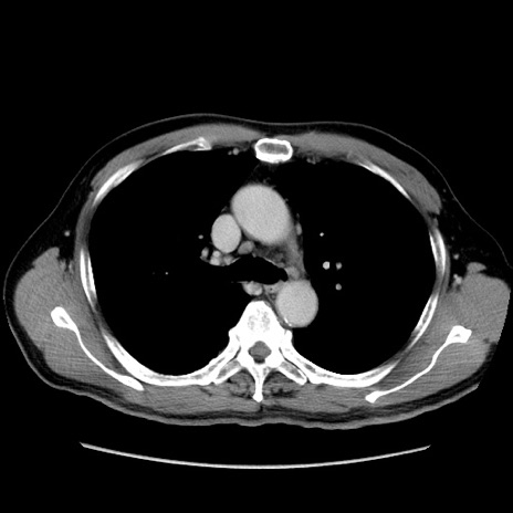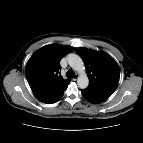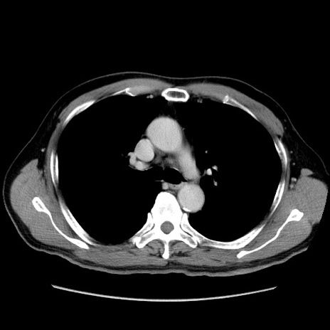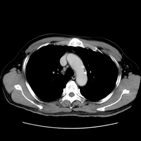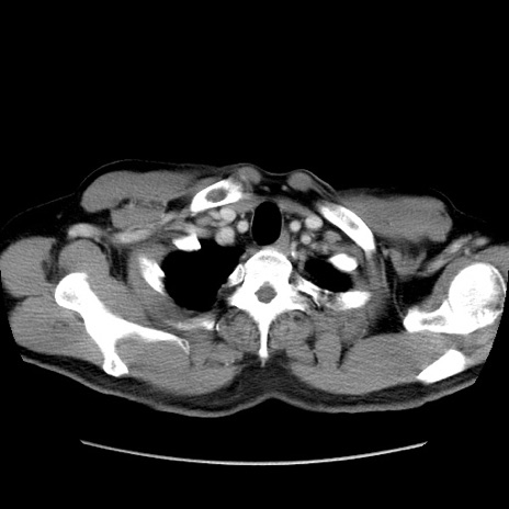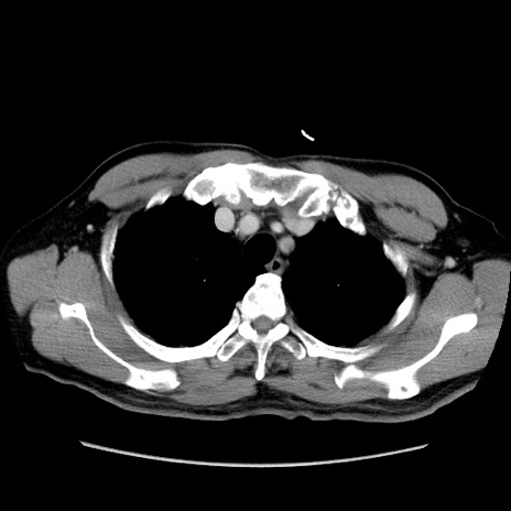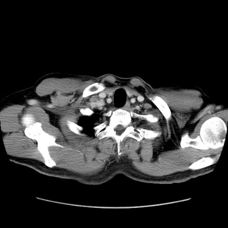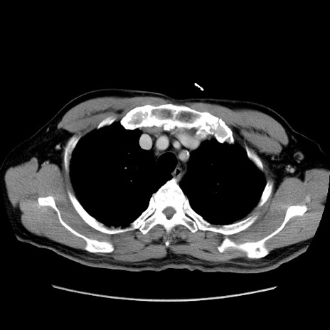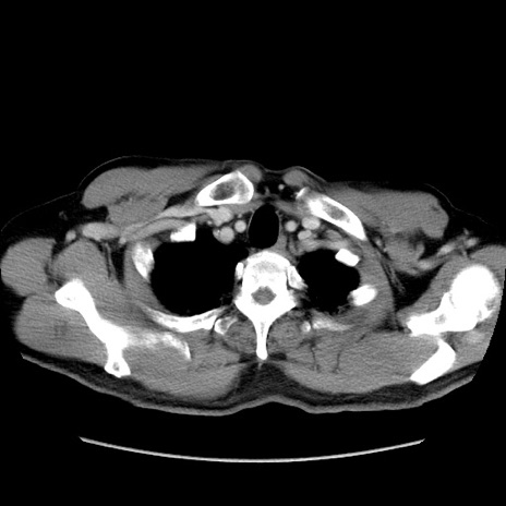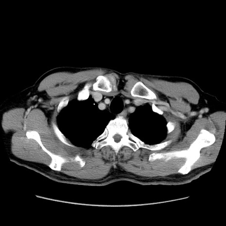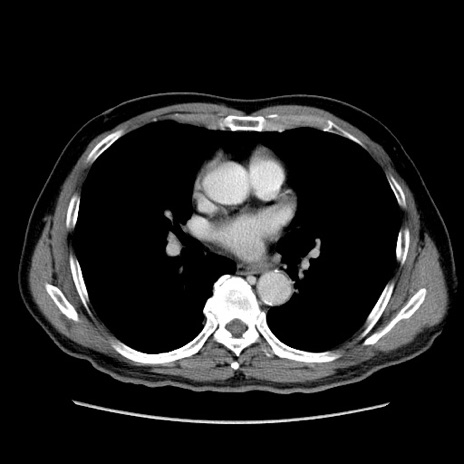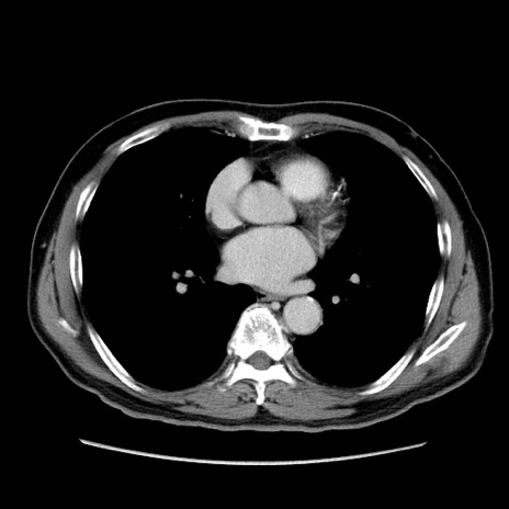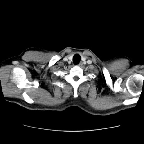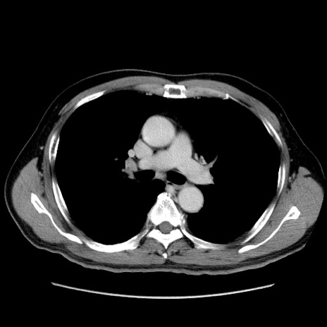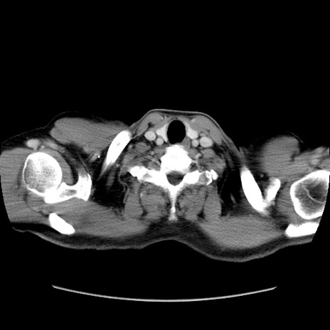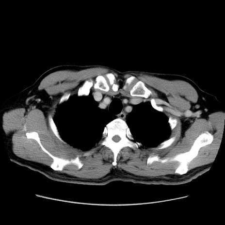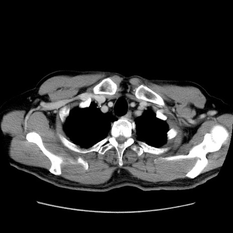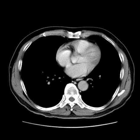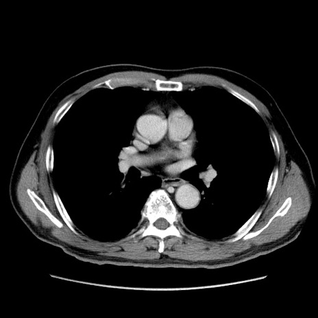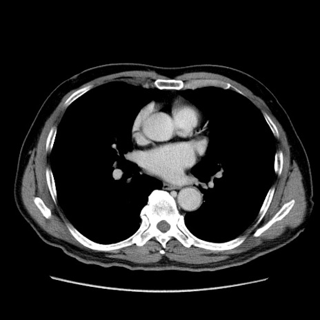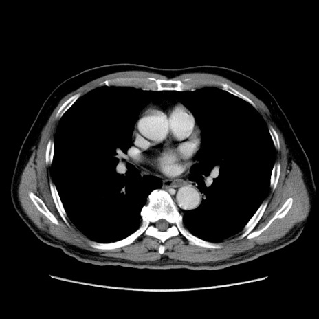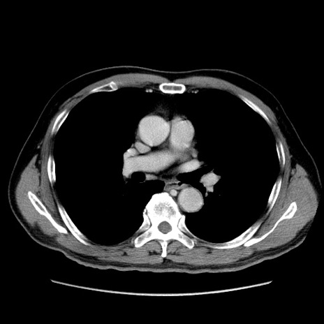 【症例】60歳代 男性 【主訴】右鼠径部膨隆 【現病歴】1年程前より右鼠径部膨隆あり。自己にて還納可能だったため放置していた。3時間前より右鼠径部の脱出を認め、還納困難となり受診。 【既往歴】高血圧 【身体所見】右鼠径部に小児頭大の膨隆あり。弾性硬であり、用手還納は困難。左鼠径部にも膨隆を認める。脱出はなし。 【データ】WBC 15500、CRP 測定なし