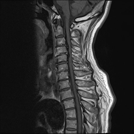 【整形】TIPS症例7 頚椎MRI T1WI(矢状断像)