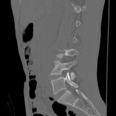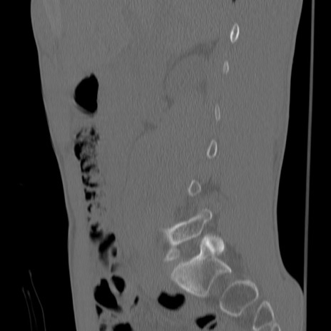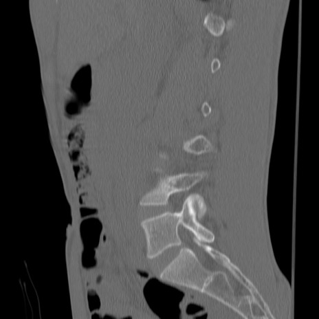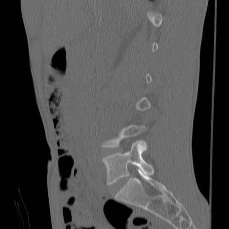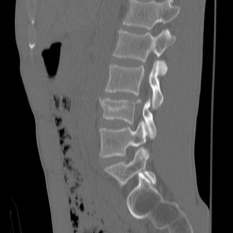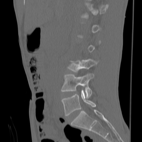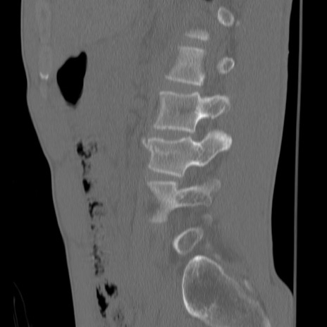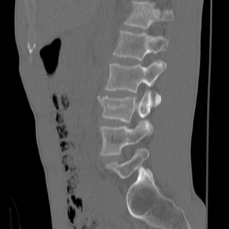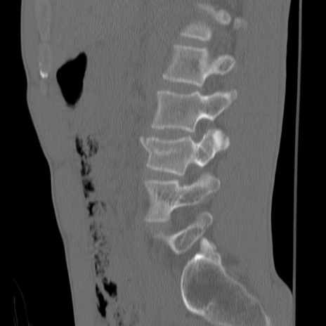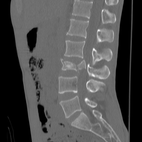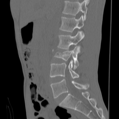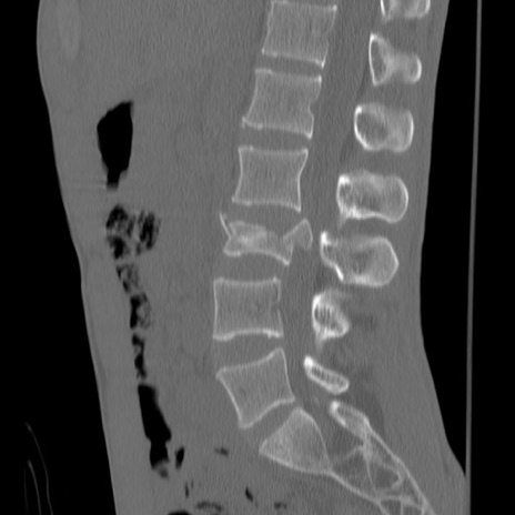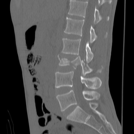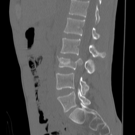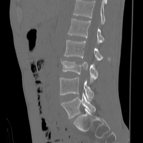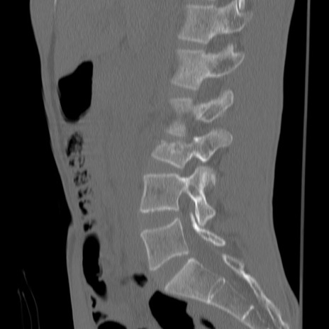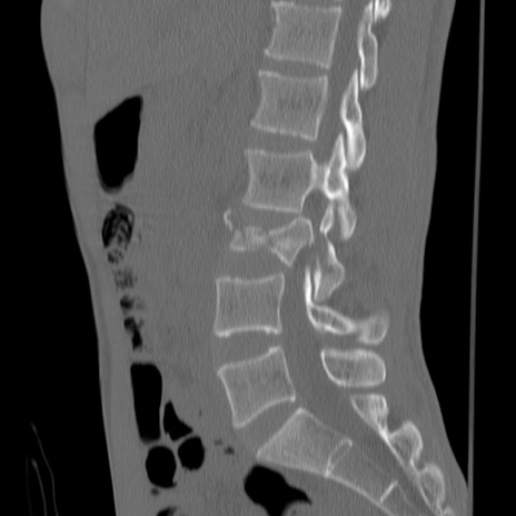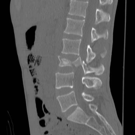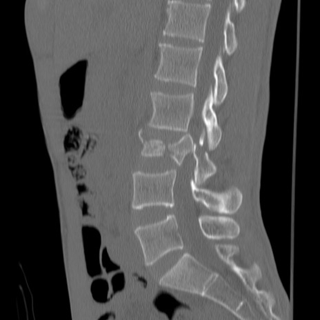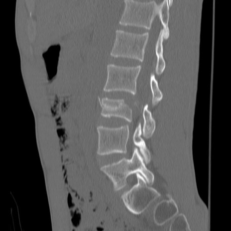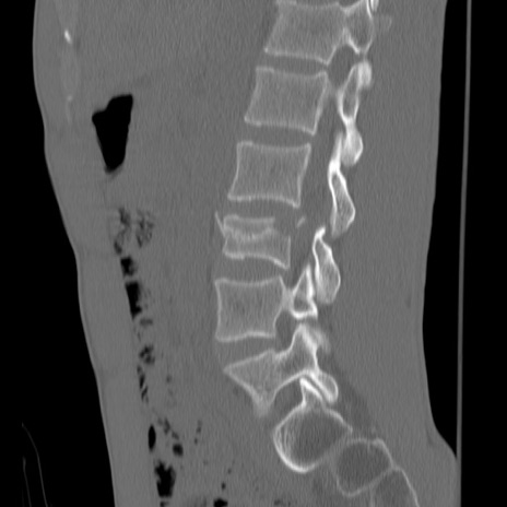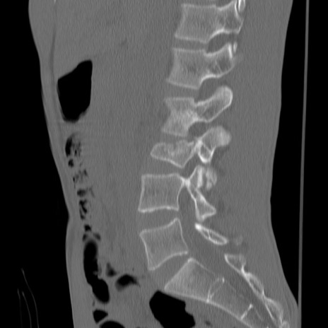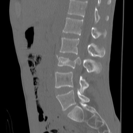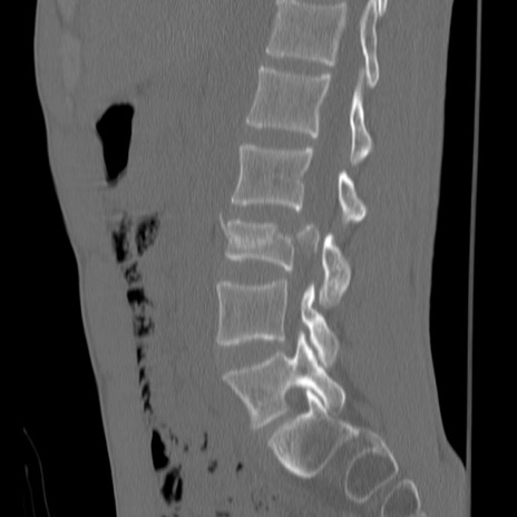【症例】30歳代男性 【主訴】腰痛 【現病歴】本日旅行先で観光中に、友人と衝突し転倒し受傷。 【既往歴】なし 【身体所見】麻痺なし、右下腿内側前面外側、左下腿内側に知覚鈍麻・しびれ