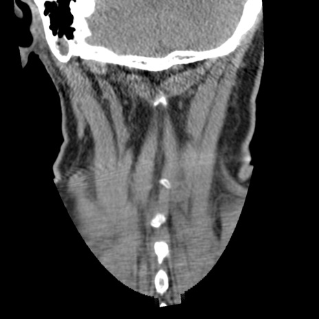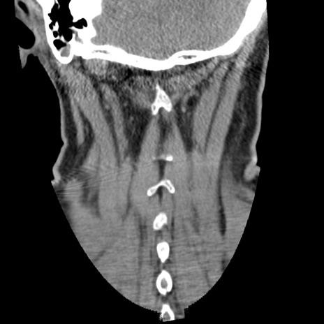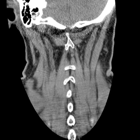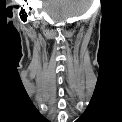【症例】60歳代女性 【主訴】後頭部〜右後頸部にかけての痛み 【現病歴】本日飲食店でコーヒーを飲んでいたところ、突然後頭部〜右後頸部にかけて痛みが出現し、右上肢の感覚障害を伴ったため救急要請。 【身体所見】脳神経学的に明らかな異常所見を認めず。右上肢に軽度の感覚障害あり。
