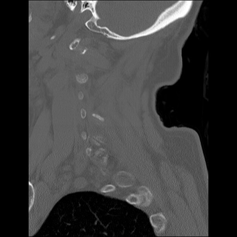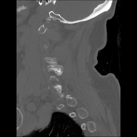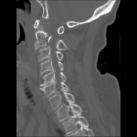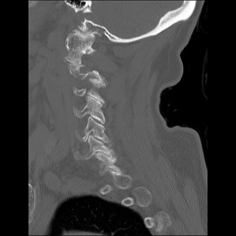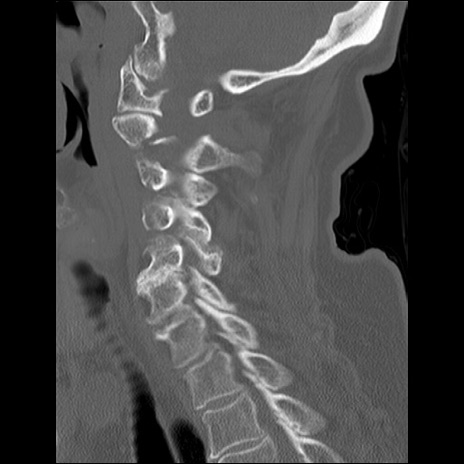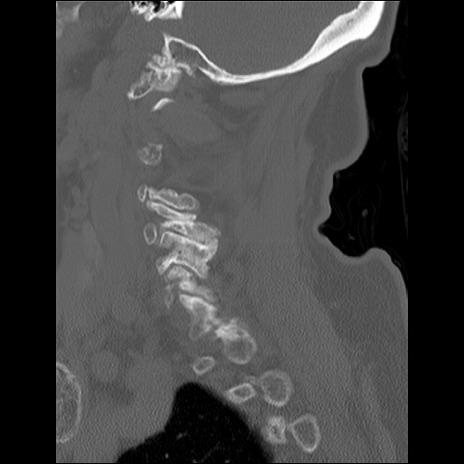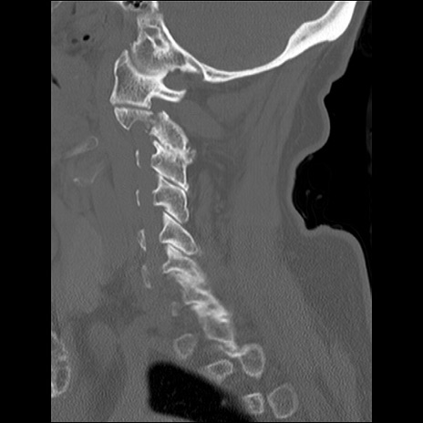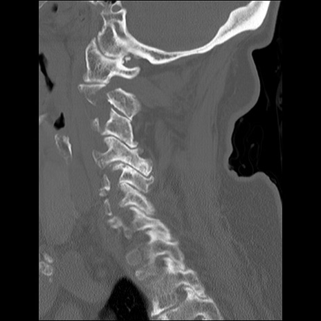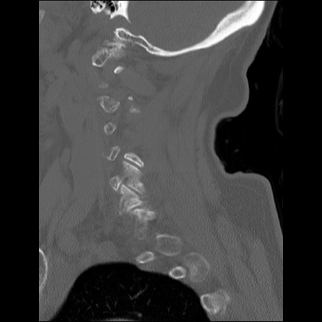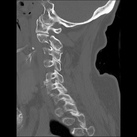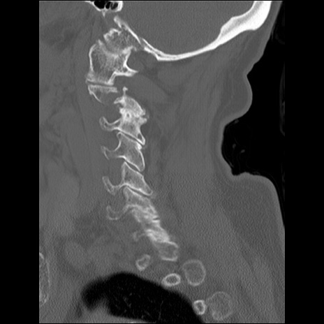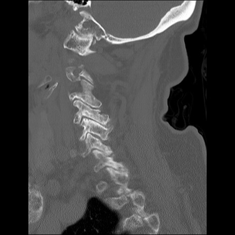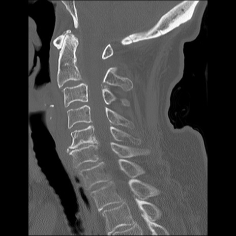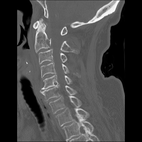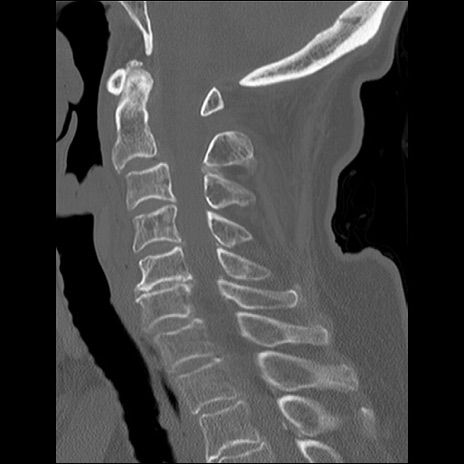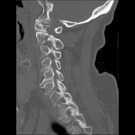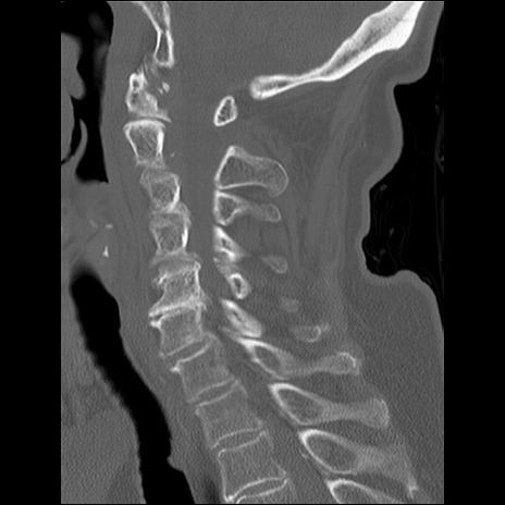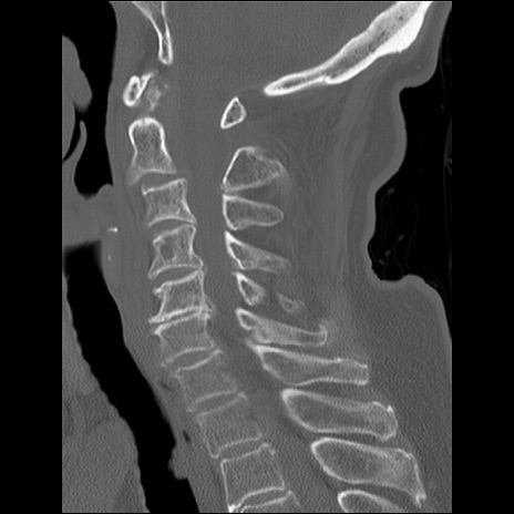 【症例】80歳代女性 【主訴】頸部痛 【現病歴】昨日家の階段を2段くらい上がったところで転倒して受傷。 【既往歴】糖尿病、高血圧 【身体所見】神経学的異常なし。