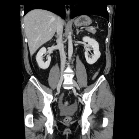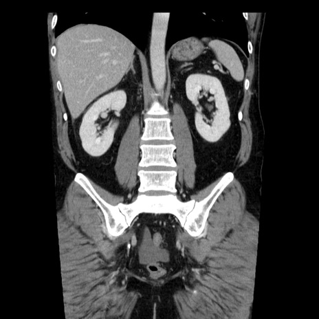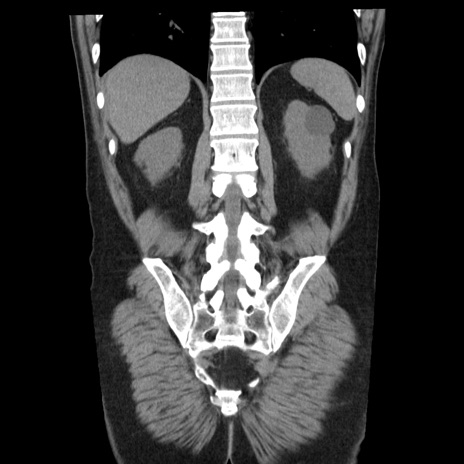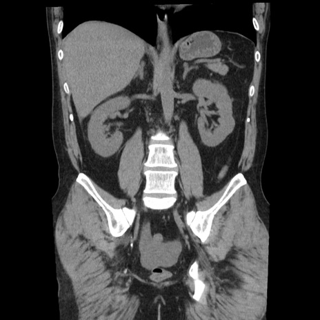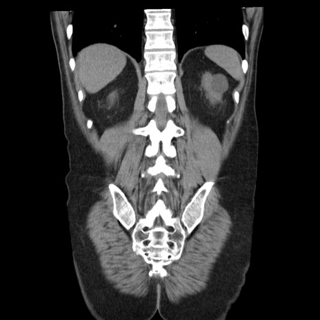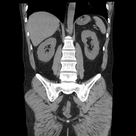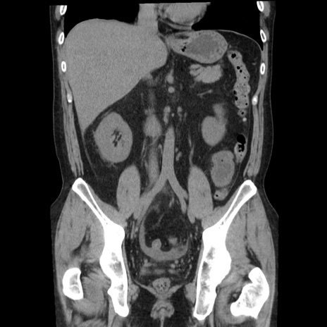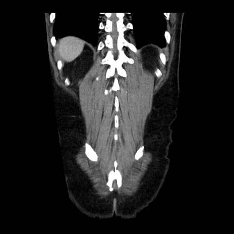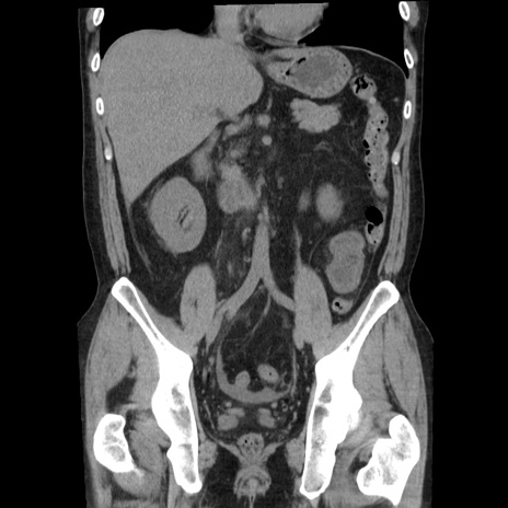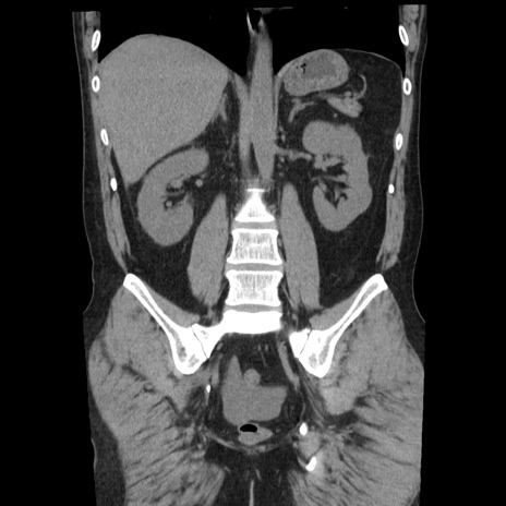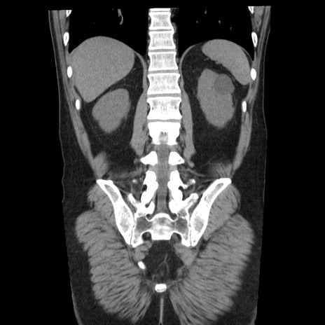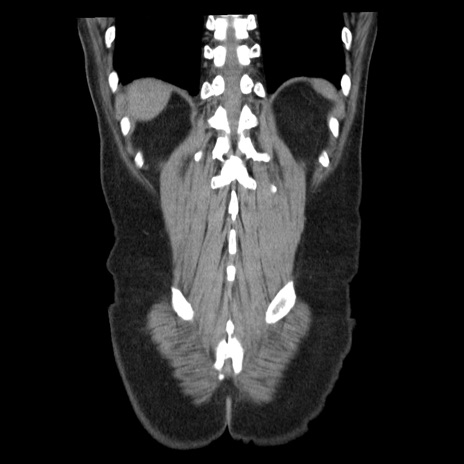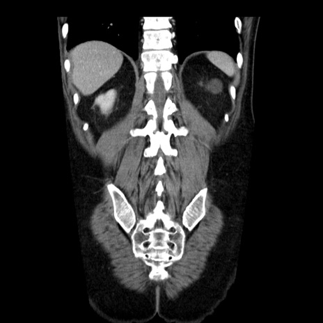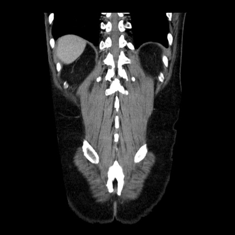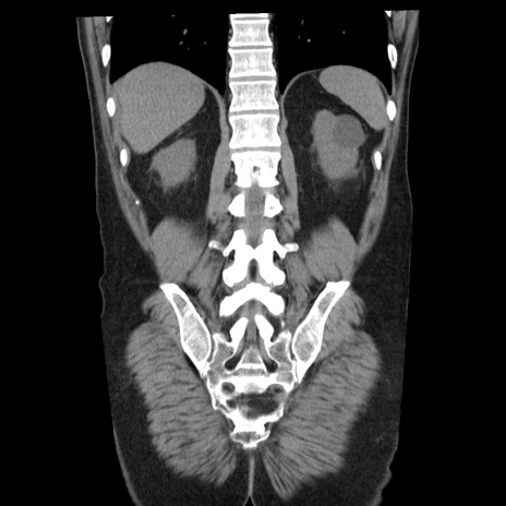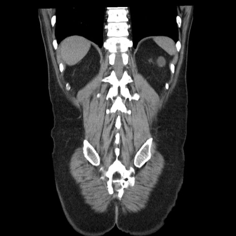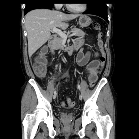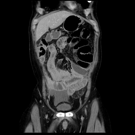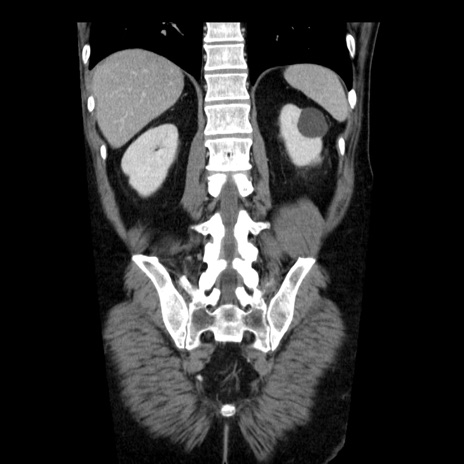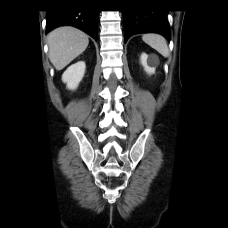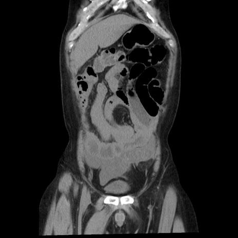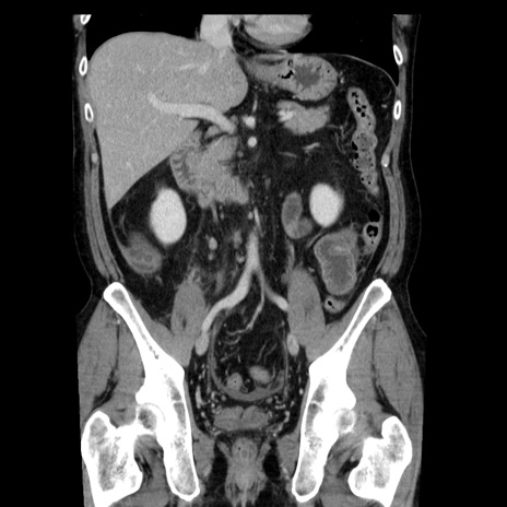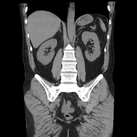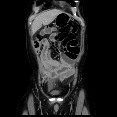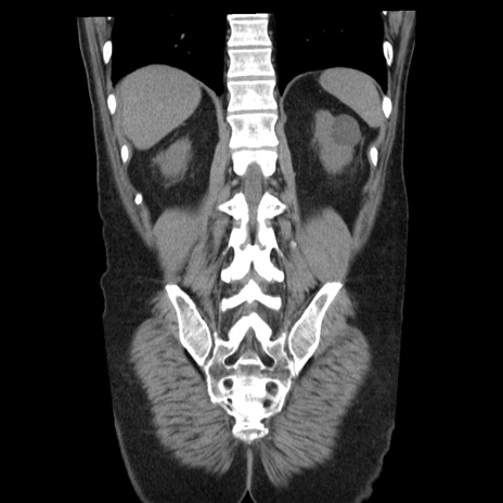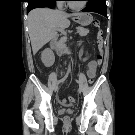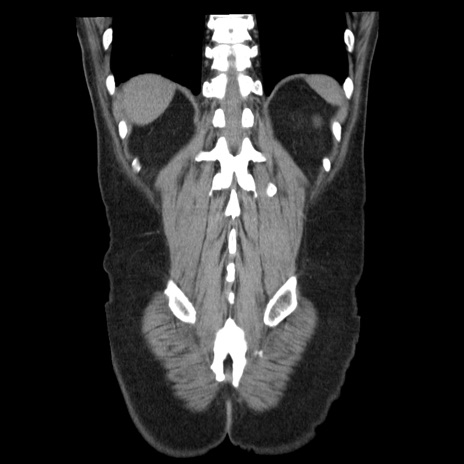 【症例】40歳代男性 【現病歴】2日前から胃痛あり。徐々に周期的な激痛に変化した。本日になっても激痛があるため受診。 【既往歴】なし 【身体所見】意識清明、BT 38-39℃台あり、腹部:膨満、やや硬、右下腹部に圧痛あり。 【データ】WBC 8500、CRP 23.26