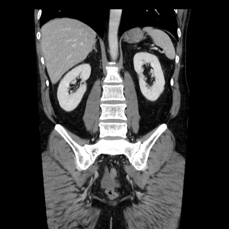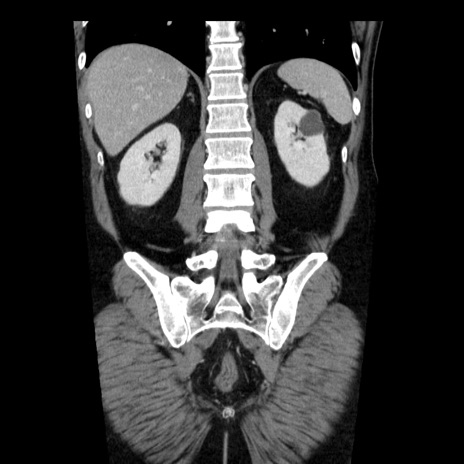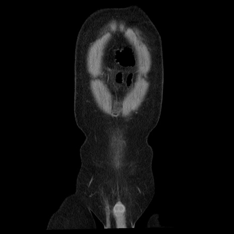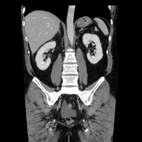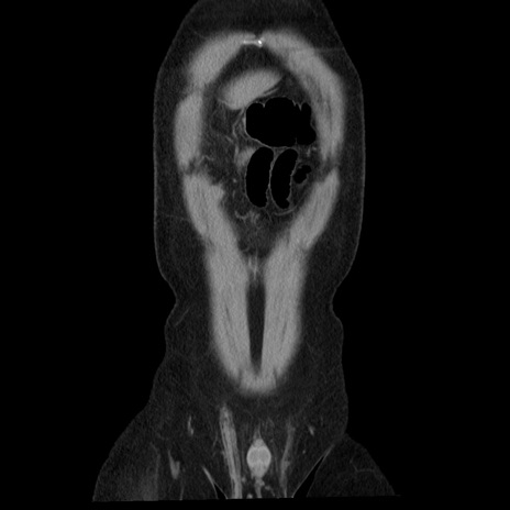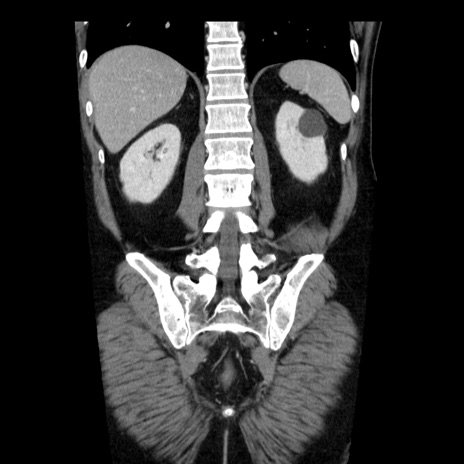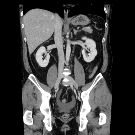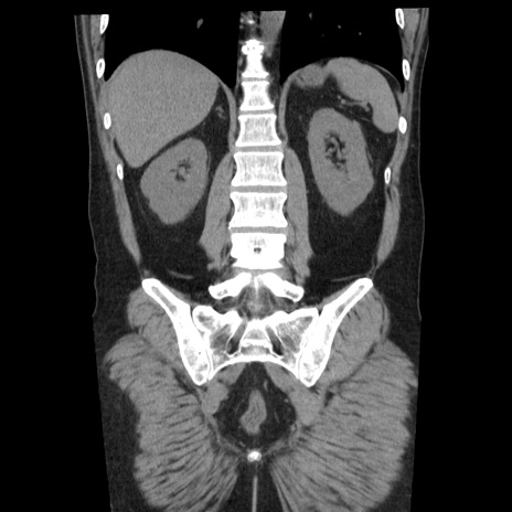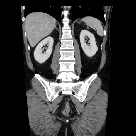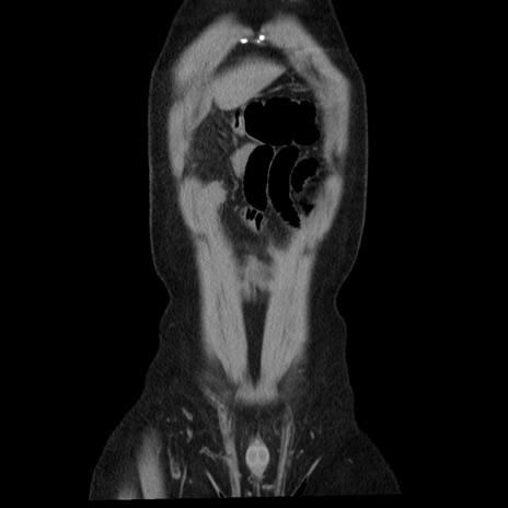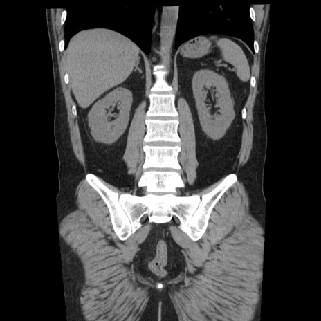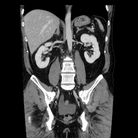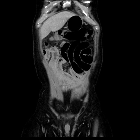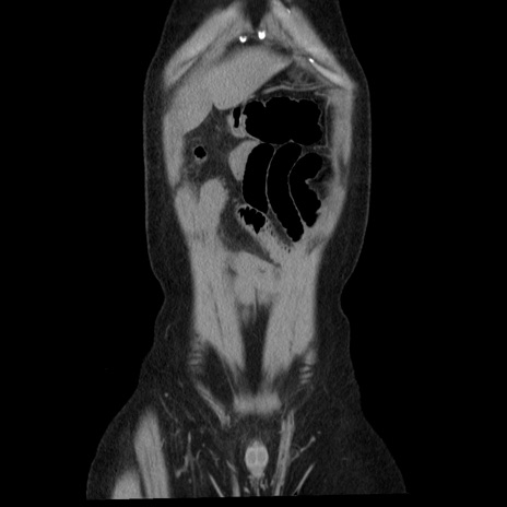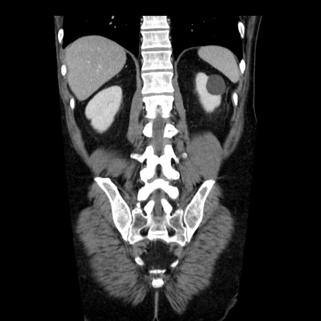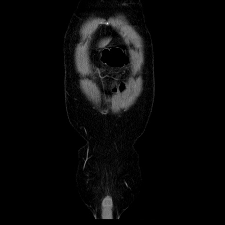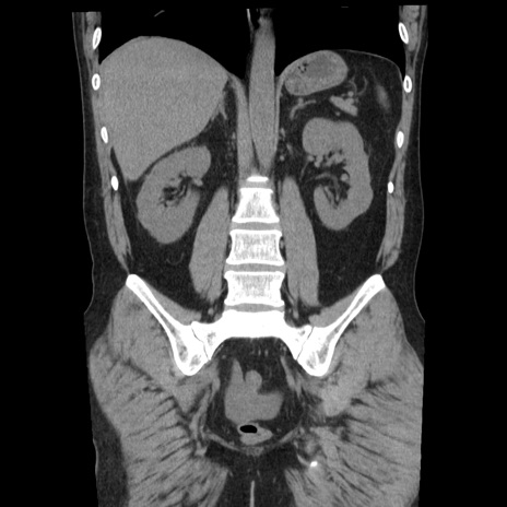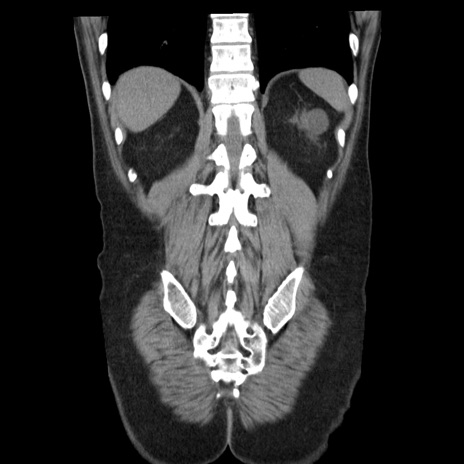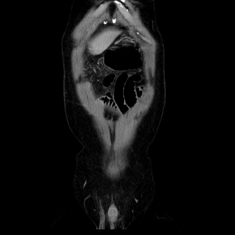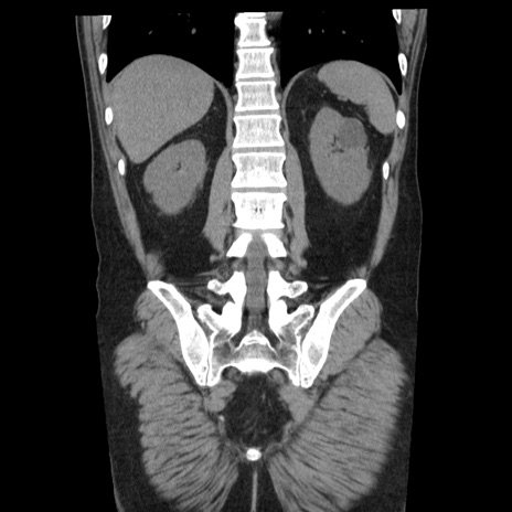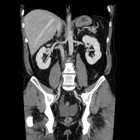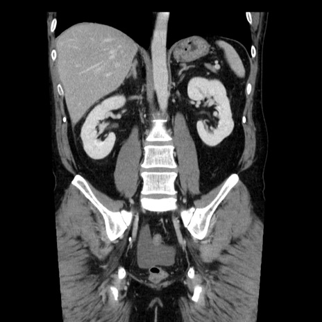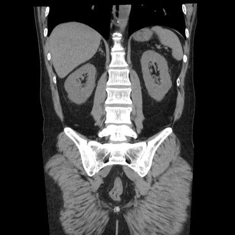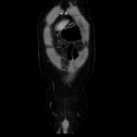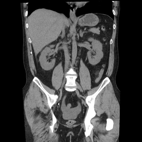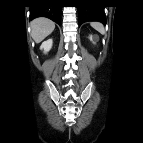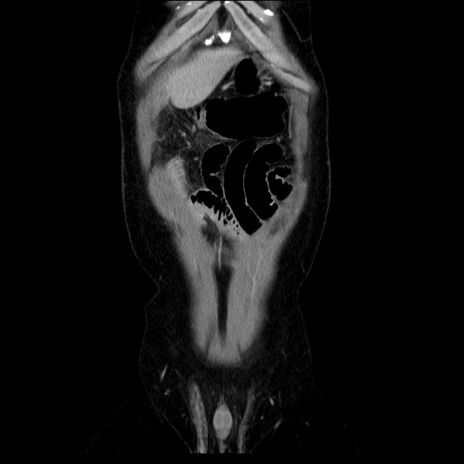 【症例】40歳代男性 【現病歴】2日前から胃痛あり。徐々に周期的な激痛に変化した。本日になっても激痛があるため受診。 【既往歴】なし 【身体所見】意識清明、BT 38-39℃台あり、腹部:膨満、やや硬、右下腹部に圧痛あり。 【データ】WBC 8500、CRP 23.26