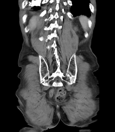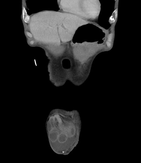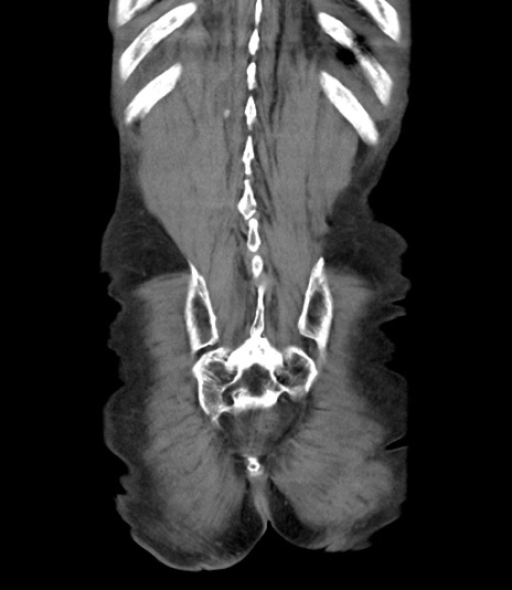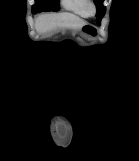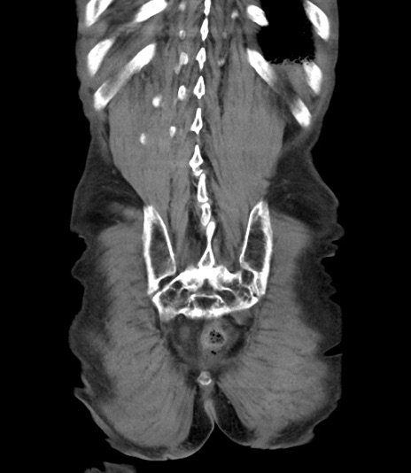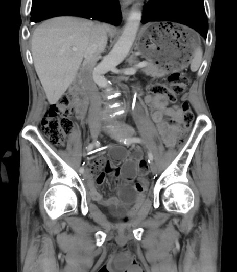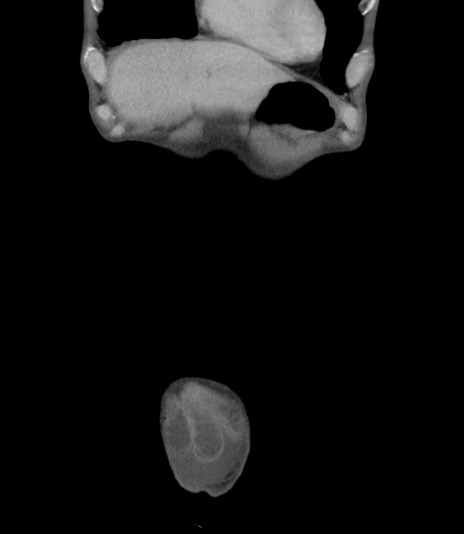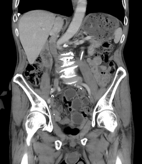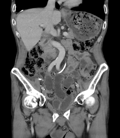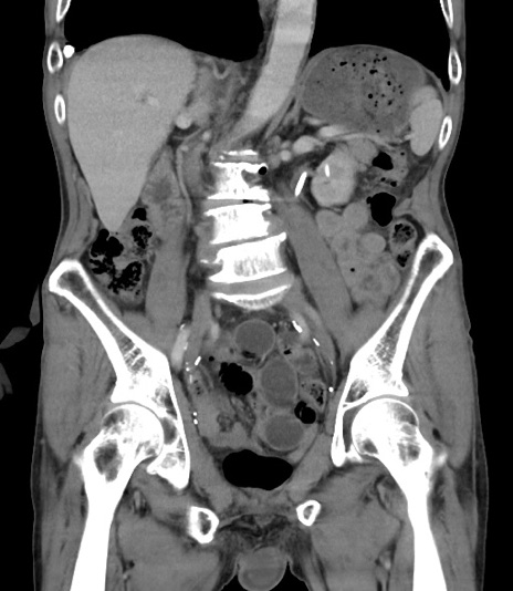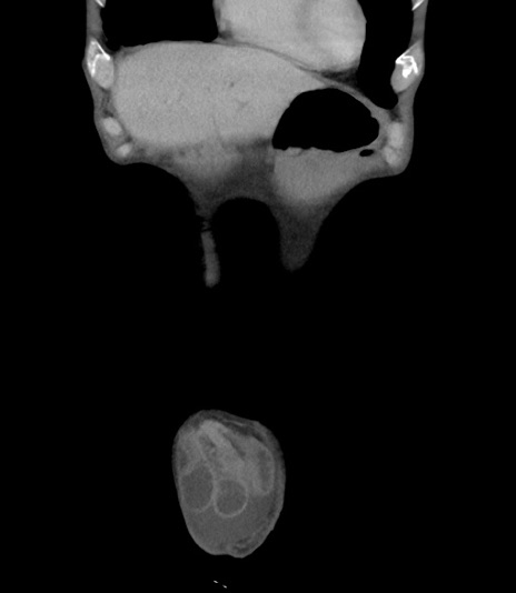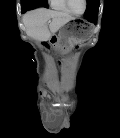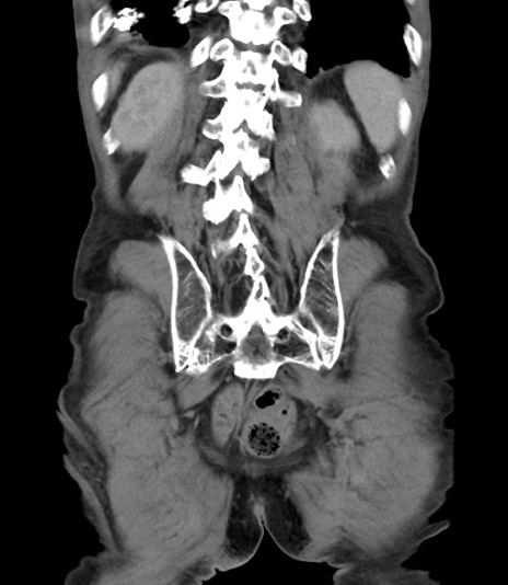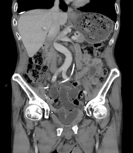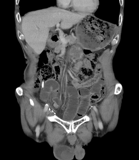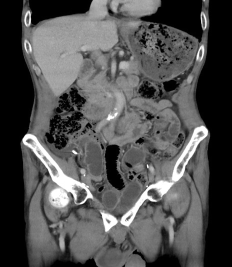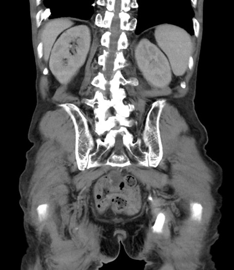 【症例】 70歳代男性 【主訴】右鼠径部腫瘤、疼痛 【現病歴】本日朝より上記主訴あり、受診。 【既往歴】膀胱癌にて膀胱全摘、両側尿管皮膚瘻 【データ】WBC 5600、CRP 0.56