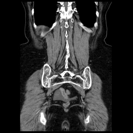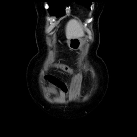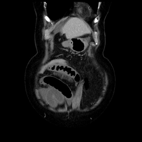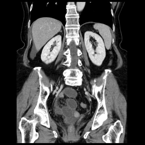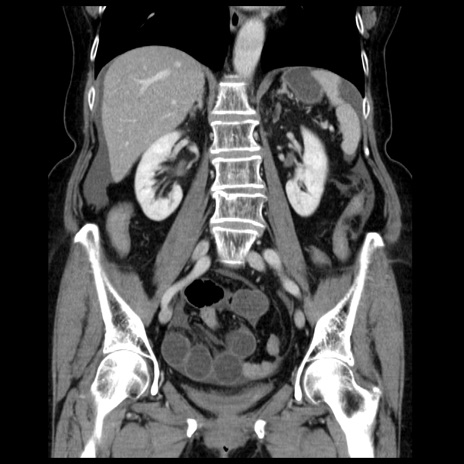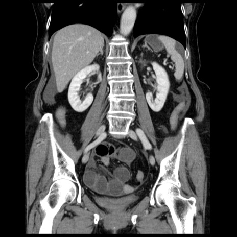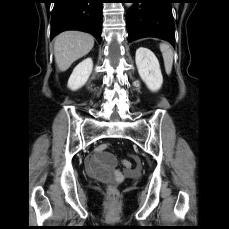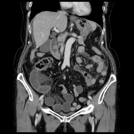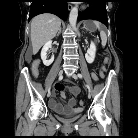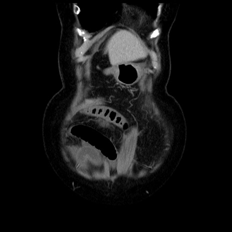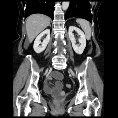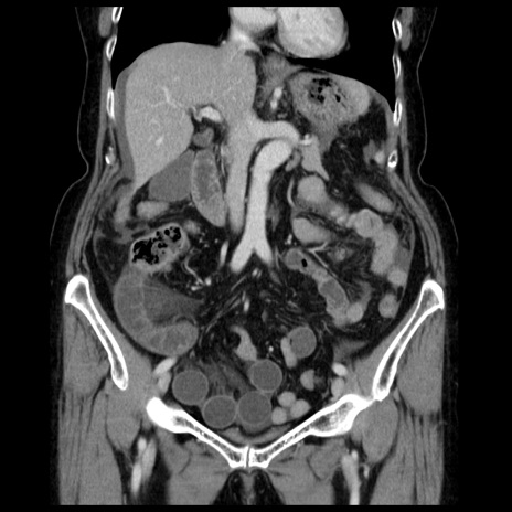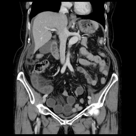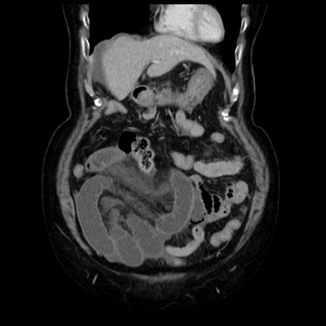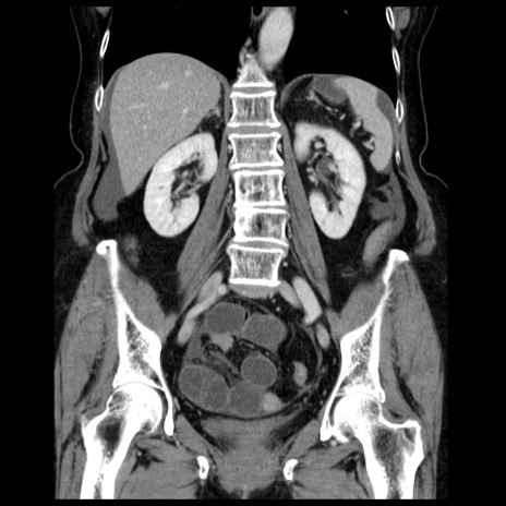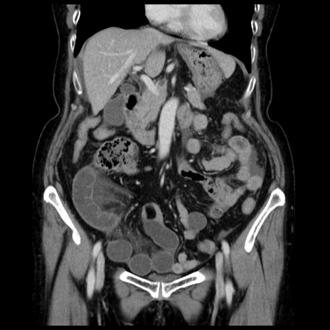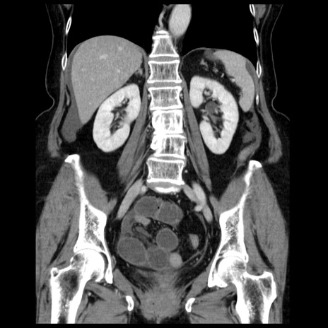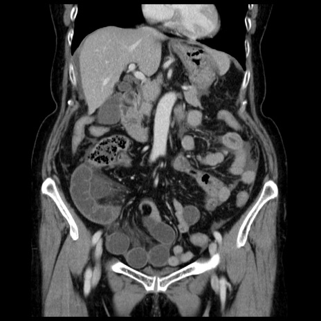 【症例】70歳代女性 【主訴】腹痛、嘔吐 【現病歴】15時間程前(昨晩)より腹痛あり。今朝になっても症状の改善なく、嘔吐あり。腹痛も増悪あり、救急外来受診。 【既往歴】子宮癌全摘術後 【身体所見】意識清明、BP 121/72mmHg、P 74bpm、SpO2 100%(RA)、腹部:平坦・軟、腸雑音ほぼ聴取せず。下腹部・心窩部・臍左上に圧痛あり。反跳痛なし。 【データ】WBC 10600、CRP 0.15