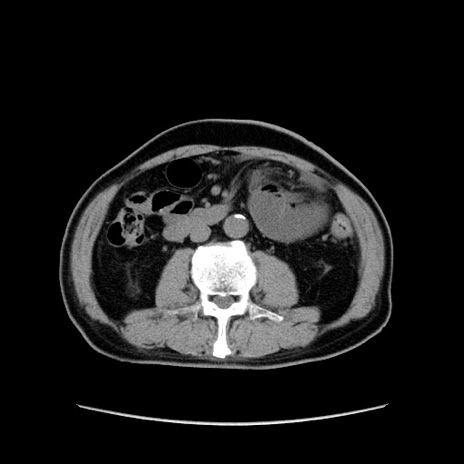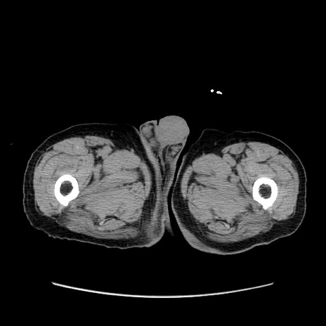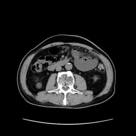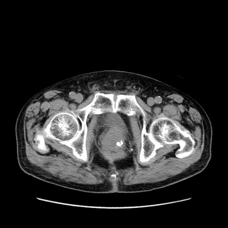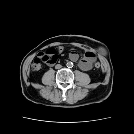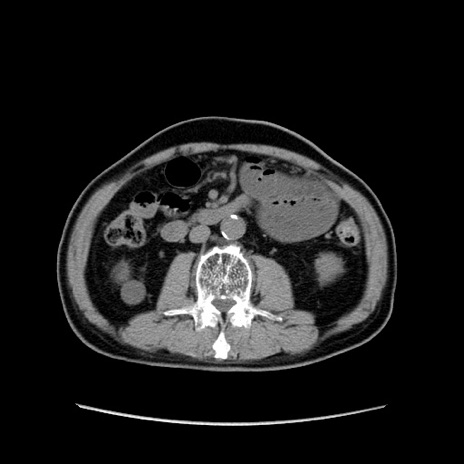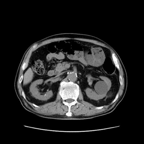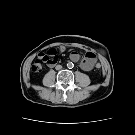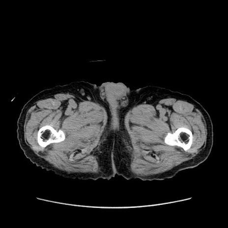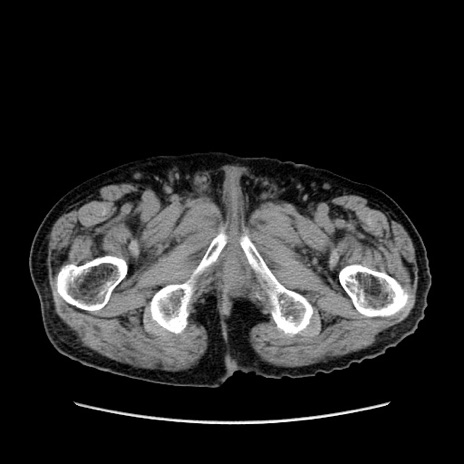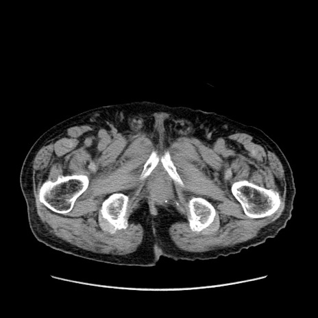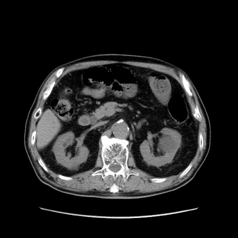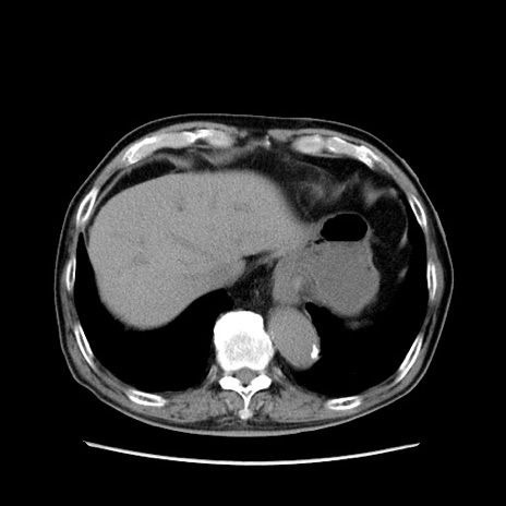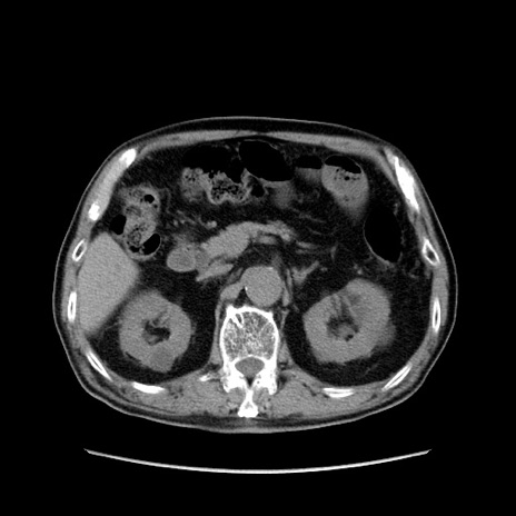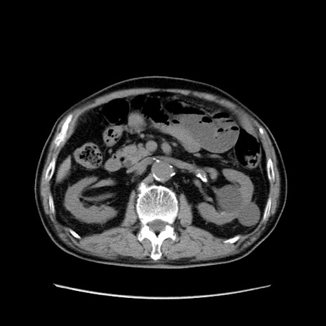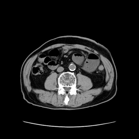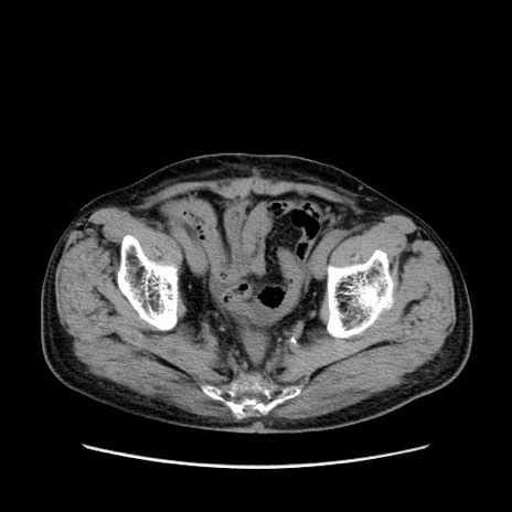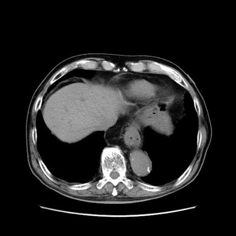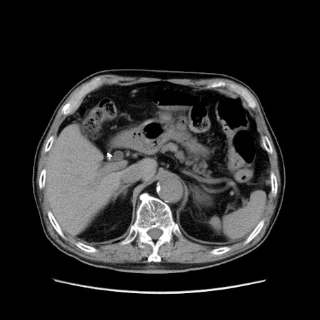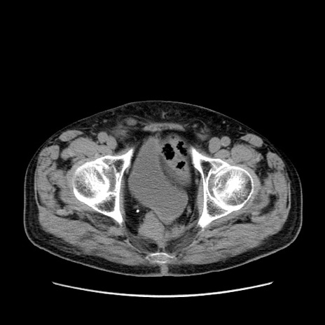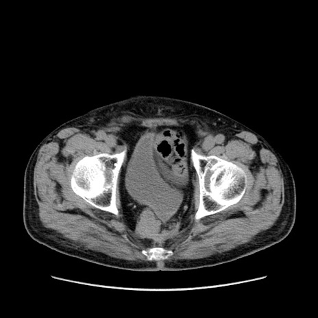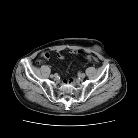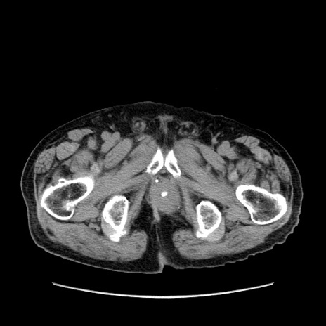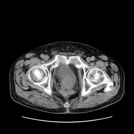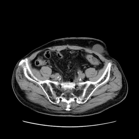 【症例】80歳代男性 【主訴】左側腹部痛、嘔吐 【現病歴】本日早朝より左腹部に痛みあり。昼頃嘔吐認めたため、救急要請。 【既往歴】直腸癌(Mile手術)、胆摘 【身体所見】意識清明、BT 35.9℃、BP 221/93mmHg、SpO2 97%(RA) 、腹部:左ストーマ周囲に限局性の腹部膨隆あり。 膨隆部自発痛・圧痛あり・軟。 【データ】WBC 7700、CRP 0.09