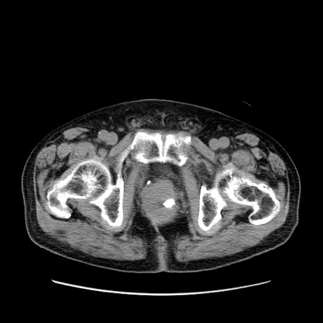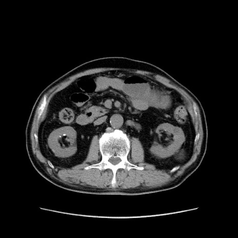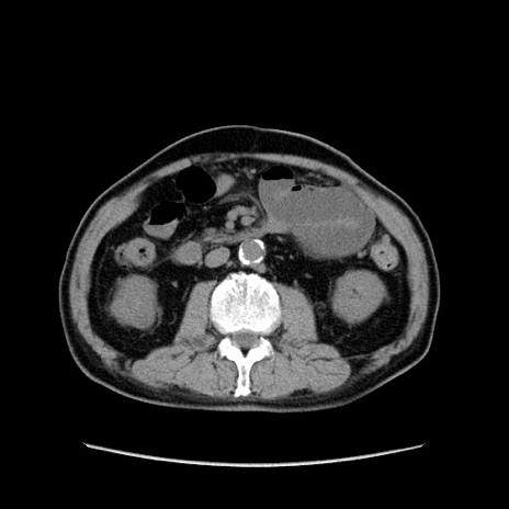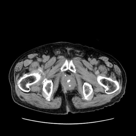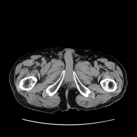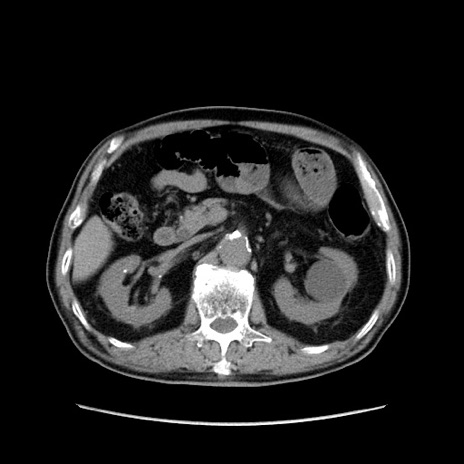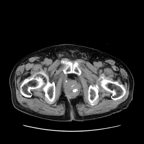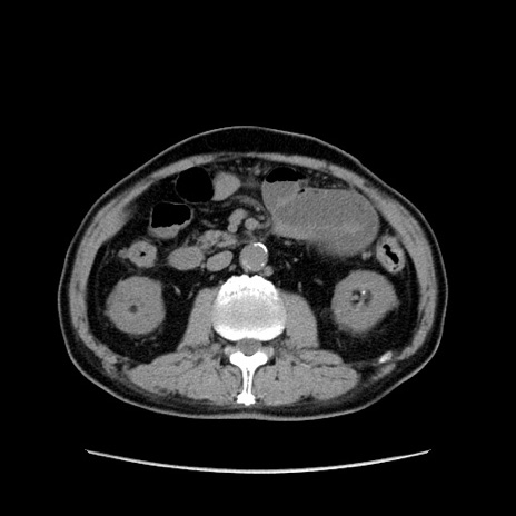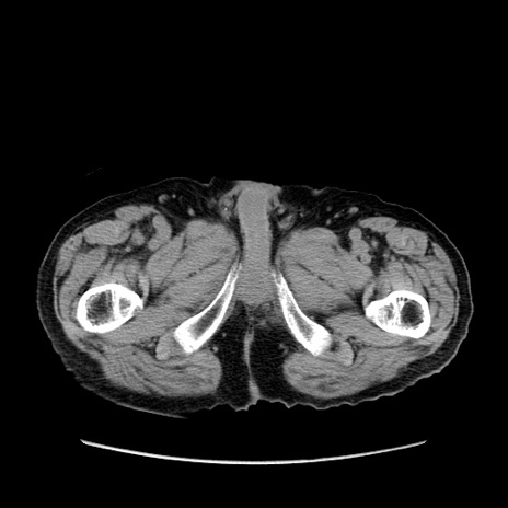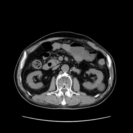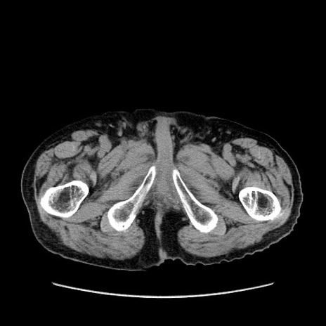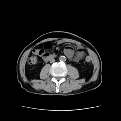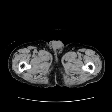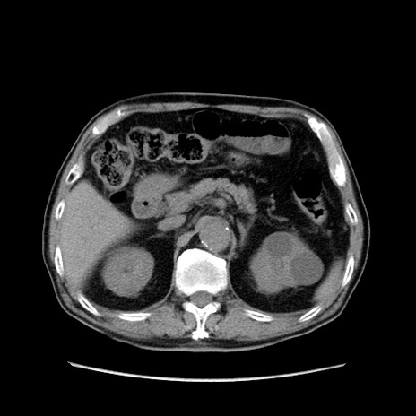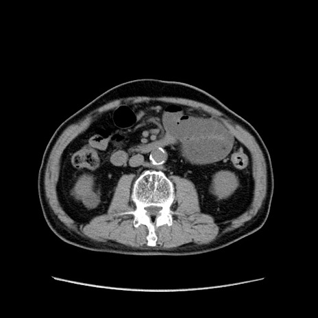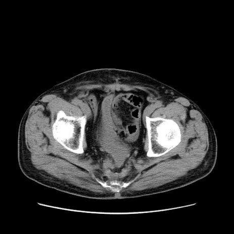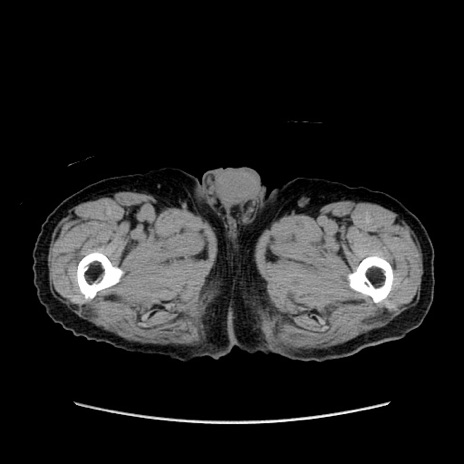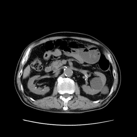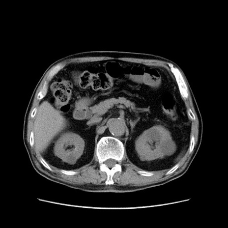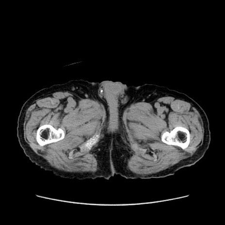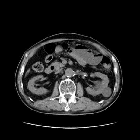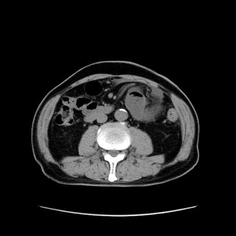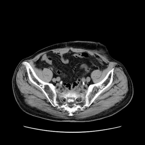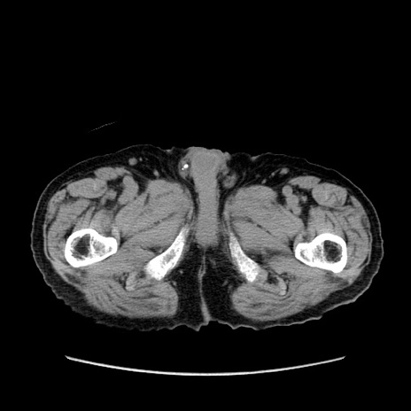 【症例】80歳代男性 【主訴】左側腹部痛、嘔吐 【現病歴】本日早朝より左腹部に痛みあり。昼頃嘔吐認めたため、救急要請。 【既往歴】直腸癌(Mile手術)、胆摘 【身体所見】意識清明、BT 35.9℃、BP 221/93mmHg、SpO2 97%(RA) 、腹部:左ストーマ周囲に限局性の腹部膨隆あり。 膨隆部自発痛・圧痛あり・軟。 【データ】WBC 7700、CRP 0.09