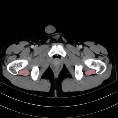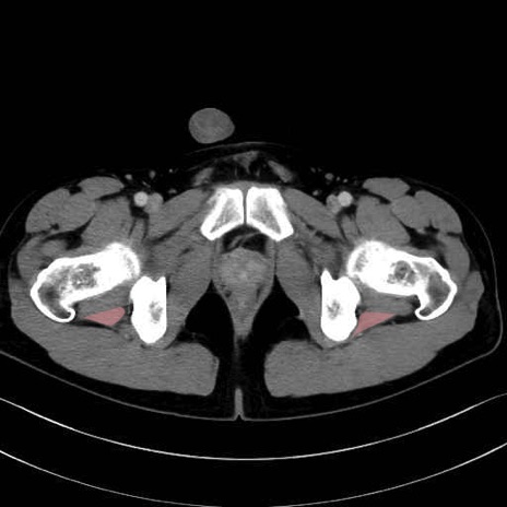 大腿方形筋(Quadratus femoris muscle)のCT画像の解剖