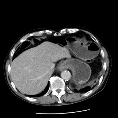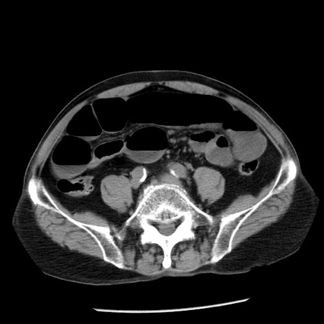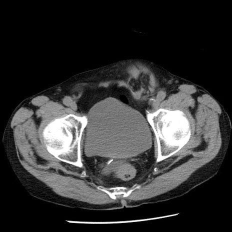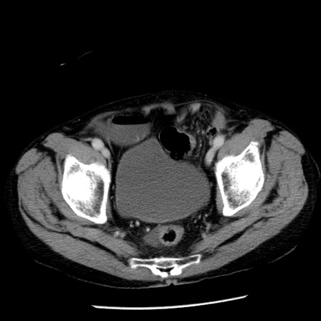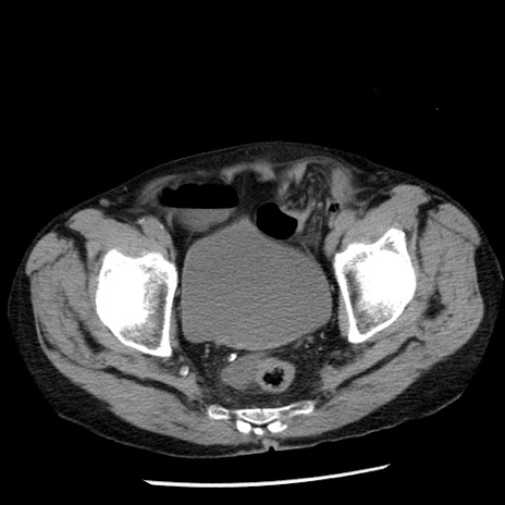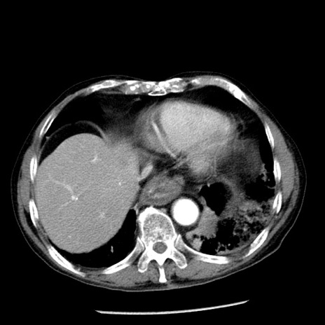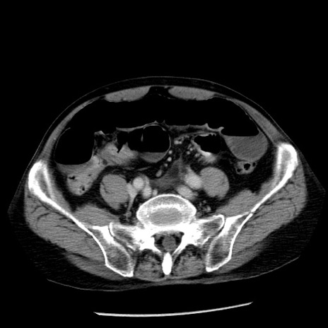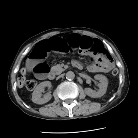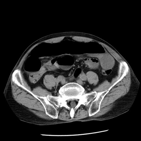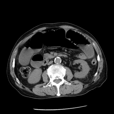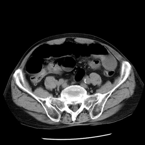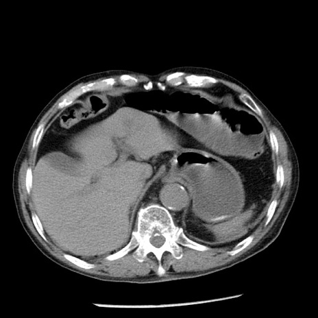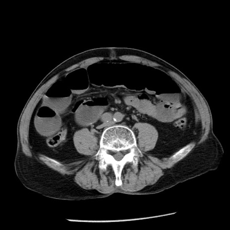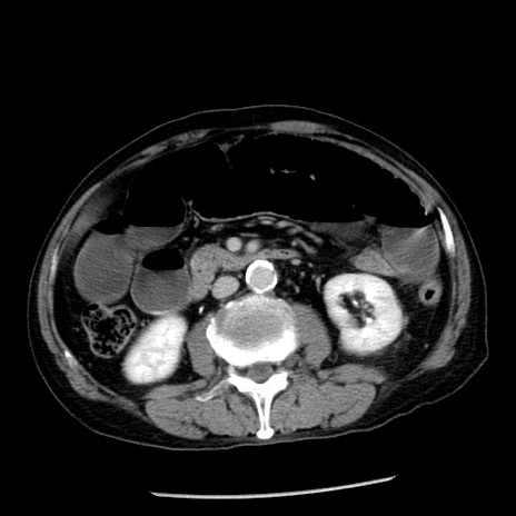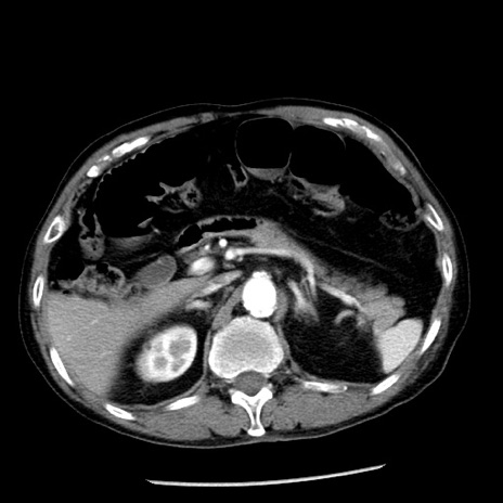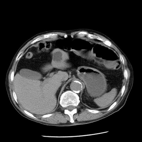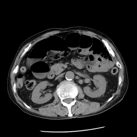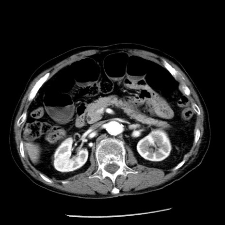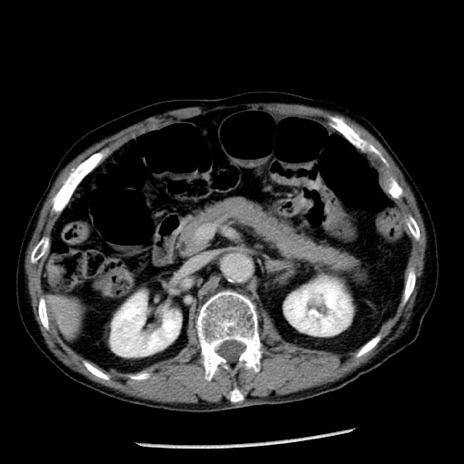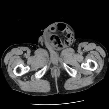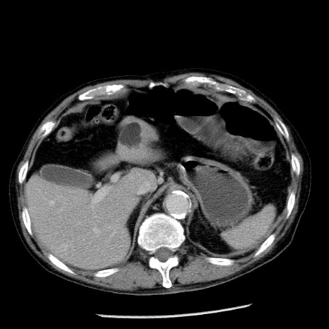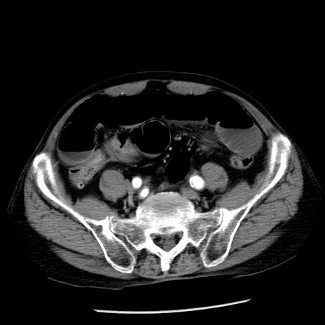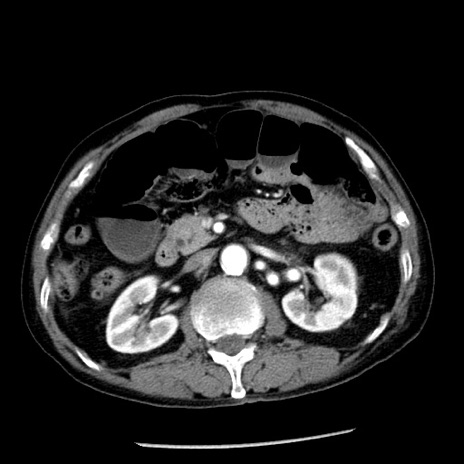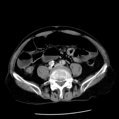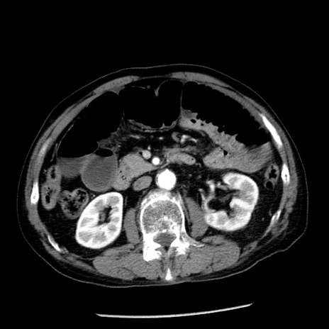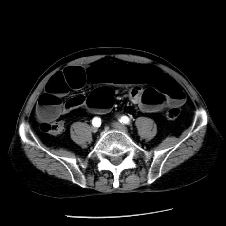 【症例】80歳代男性 【主訴】嘔吐 【現病歴】昨晩2回嘔吐あり、今朝になっても嘔吐あり。来院。 【既往歴】胃潰瘍 【身体所見】意識清明、BT 37.6℃、BP 166/95mmHg、HR 100bpm、SpO2 97%、腹部:平坦・軟、腸蠕動音聴取良好、圧痛なし。 【データ】WBC 21900、CRP 1.46