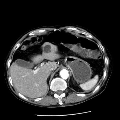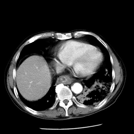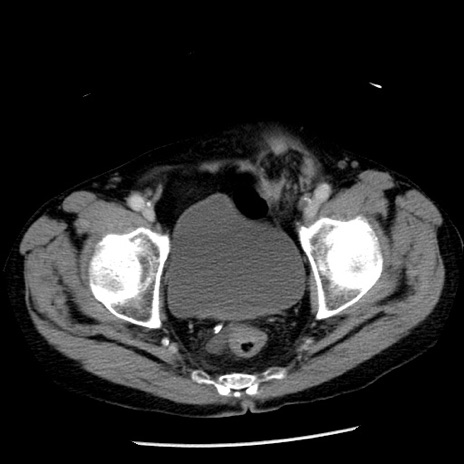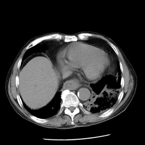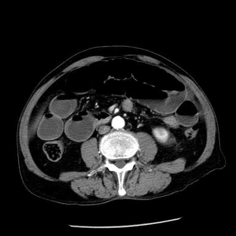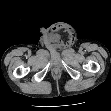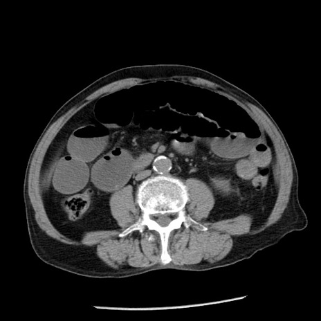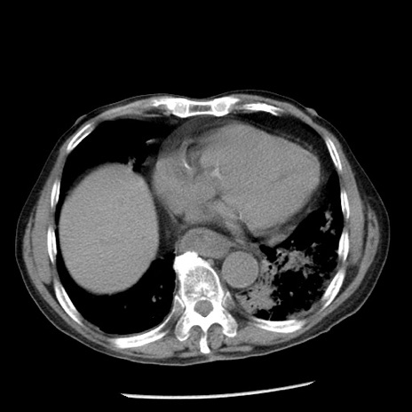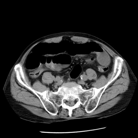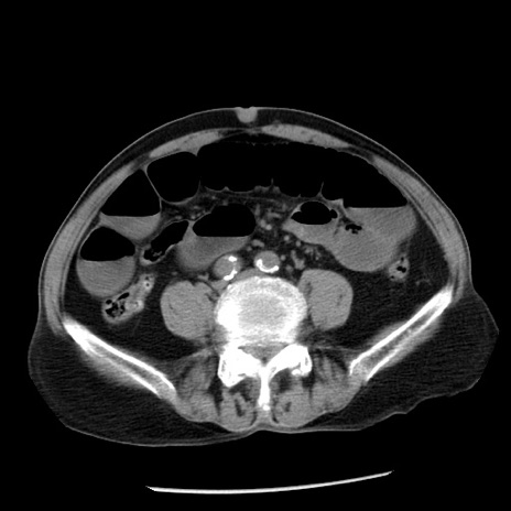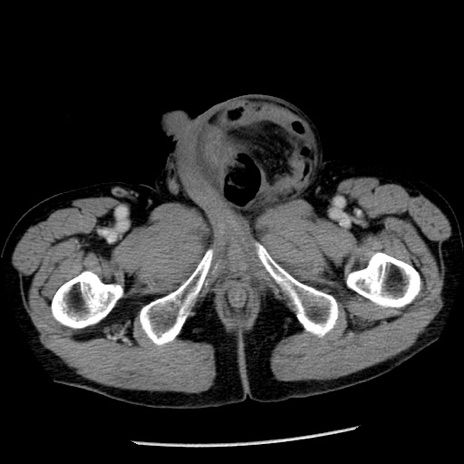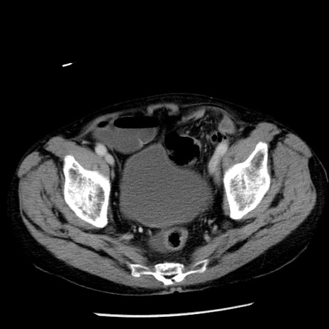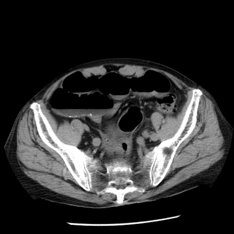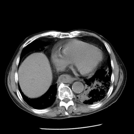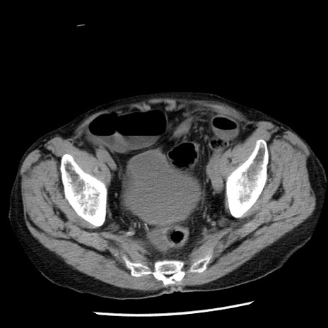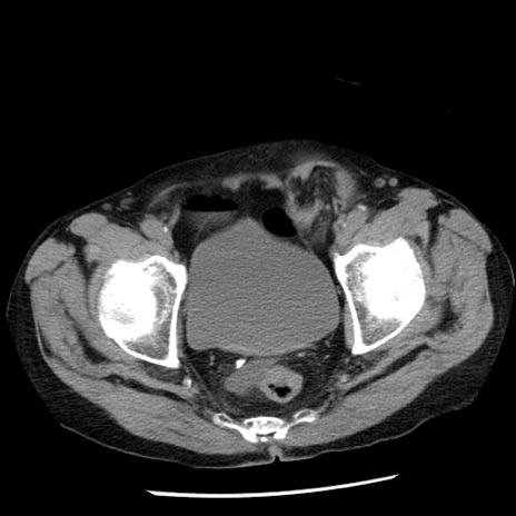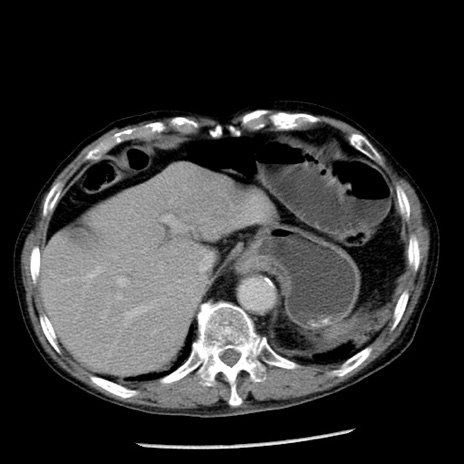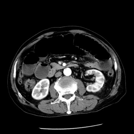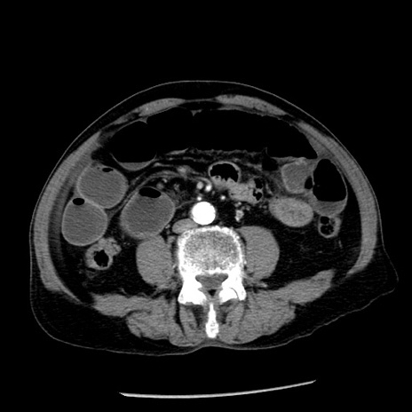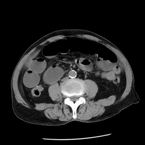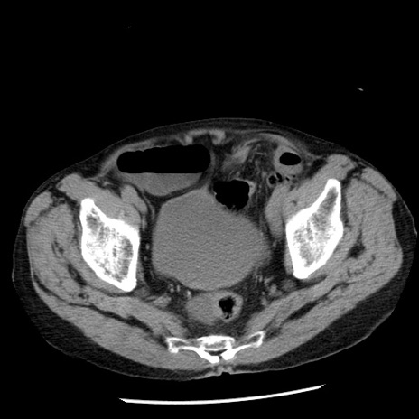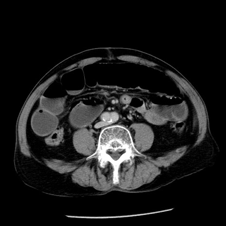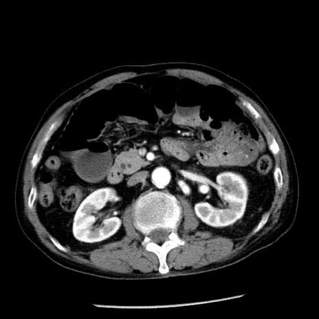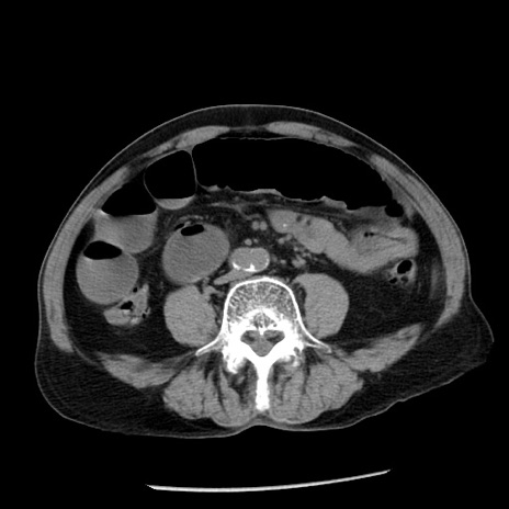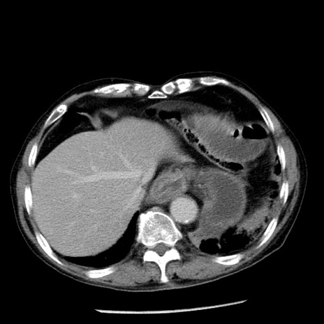 【症例】80歳代男性 【主訴】嘔吐 【現病歴】昨晩2回嘔吐あり、今朝になっても嘔吐あり。来院。 【既往歴】胃潰瘍 【身体所見】意識清明、BT 37.6℃、BP 166/95mmHg、HR 100bpm、SpO2 97%、腹部:平坦・軟、腸蠕動音聴取良好、圧痛なし。 【データ】WBC 21900、CRP 1.46