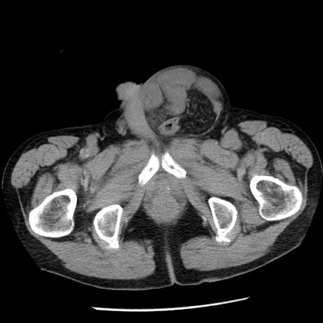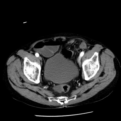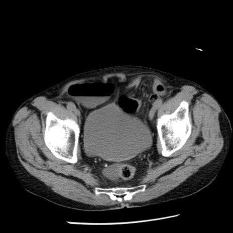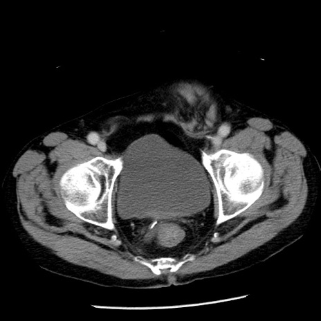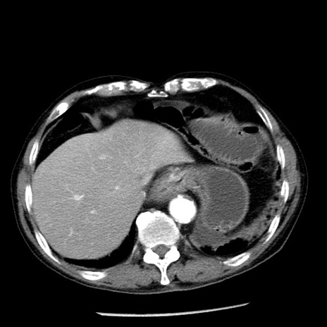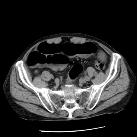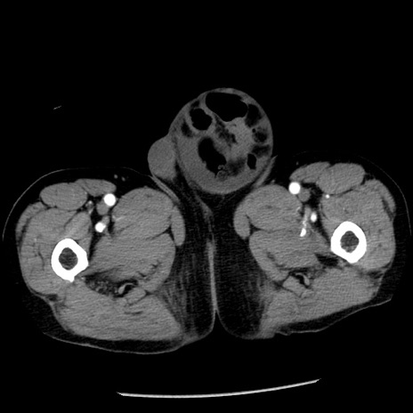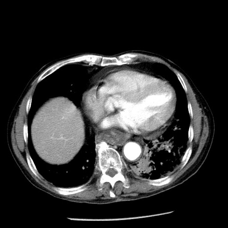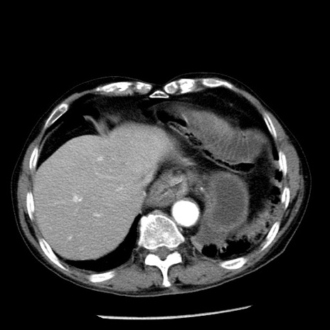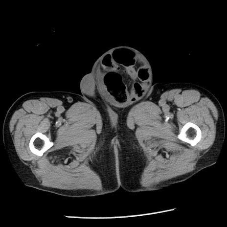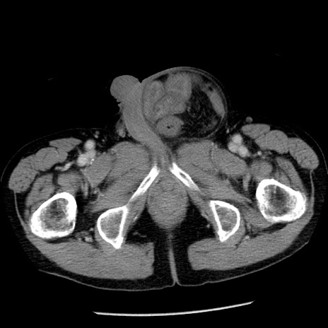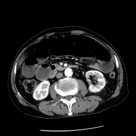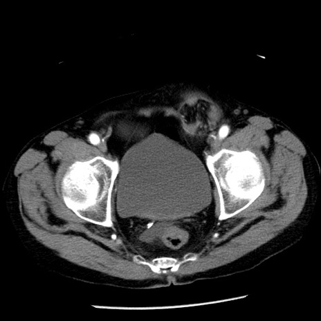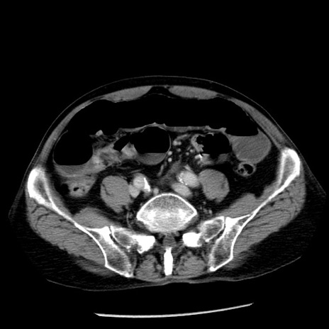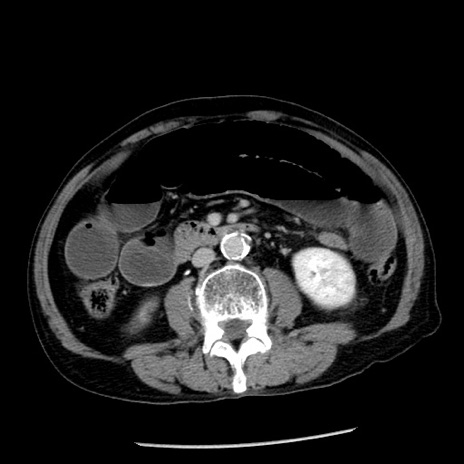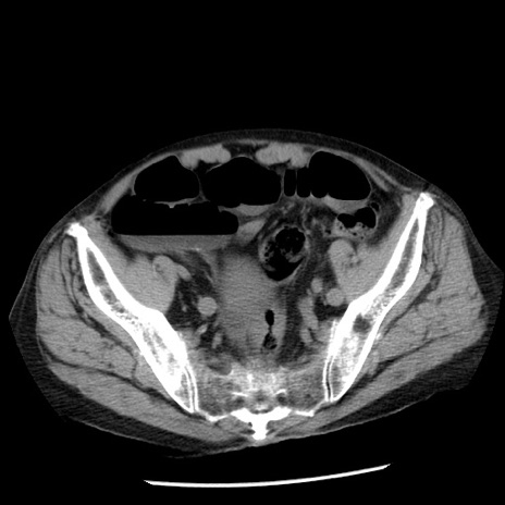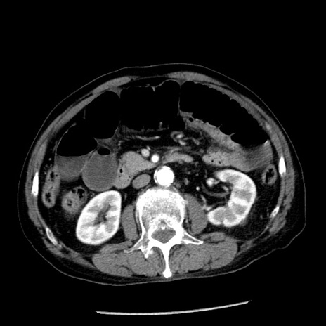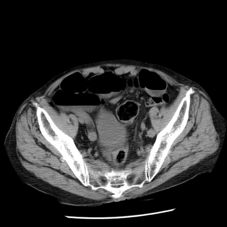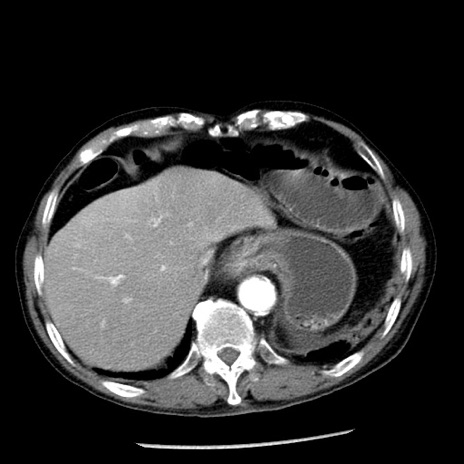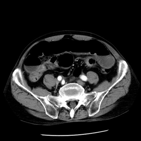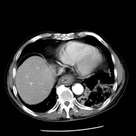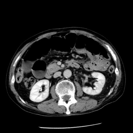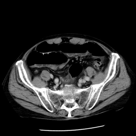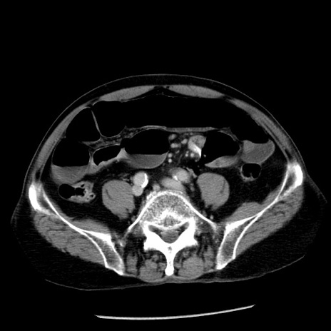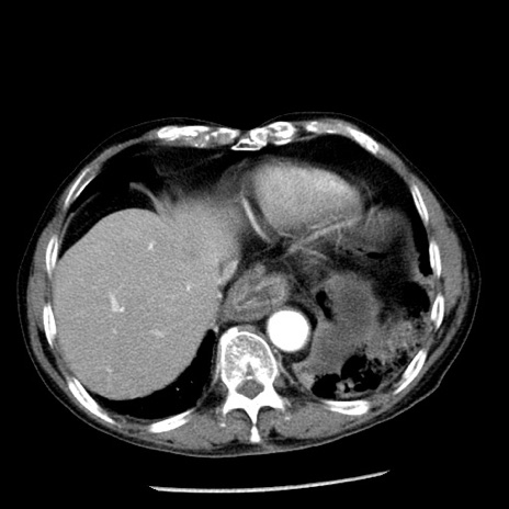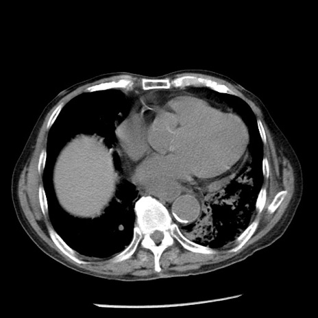 【症例】80歳代男性 【主訴】嘔吐 【現病歴】昨晩2回嘔吐あり、今朝になっても嘔吐あり。来院。 【既往歴】胃潰瘍 【身体所見】意識清明、BT 37.6℃、BP 166/95mmHg、HR 100bpm、SpO2 97%、腹部:平坦・軟、腸蠕動音聴取良好、圧痛なし。 【データ】WBC 21900、CRP 1.46