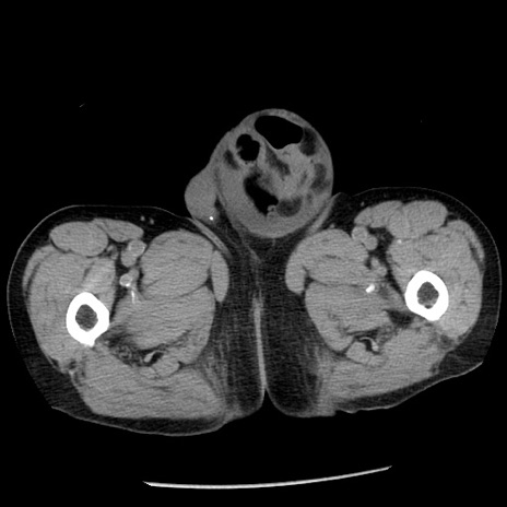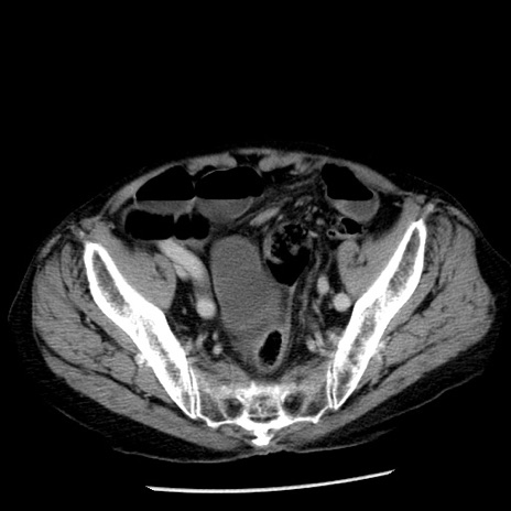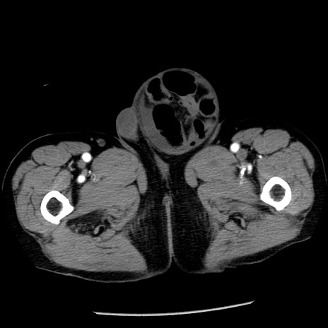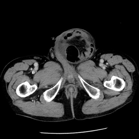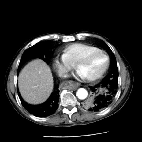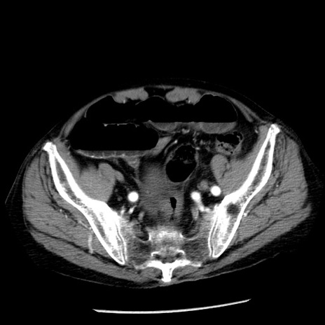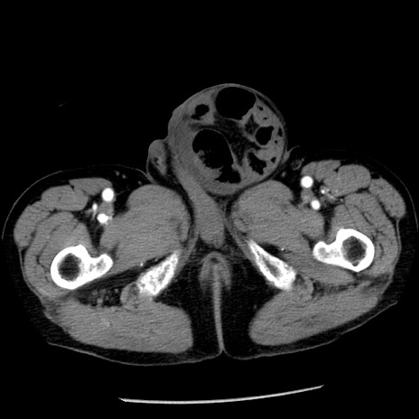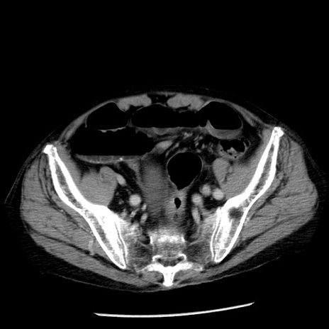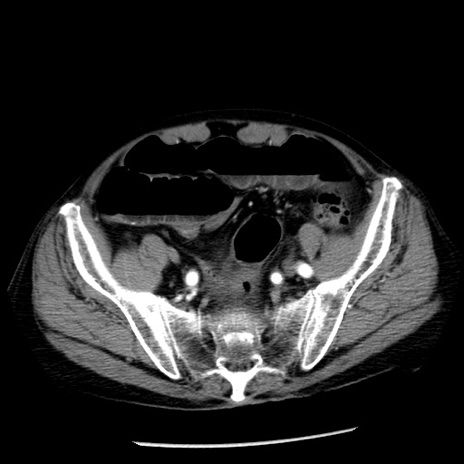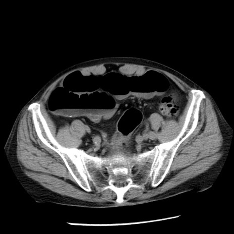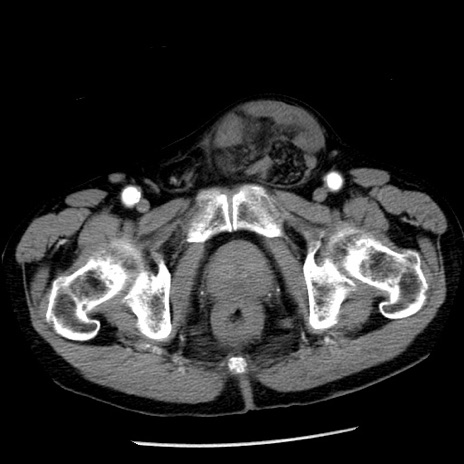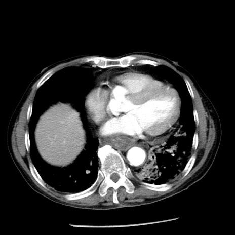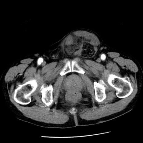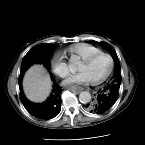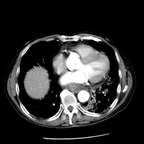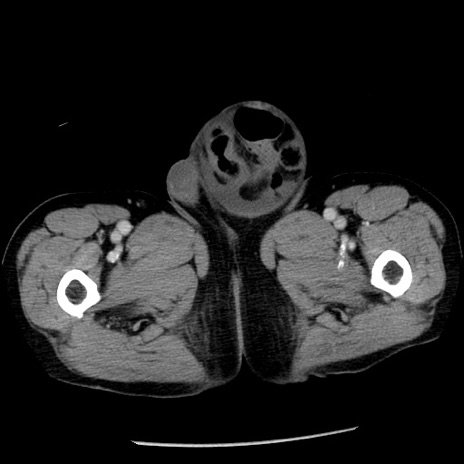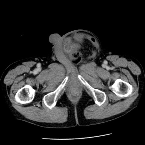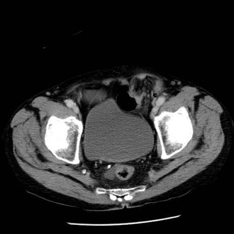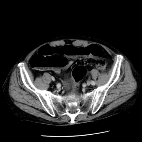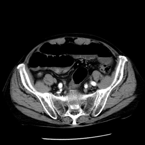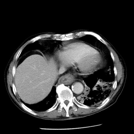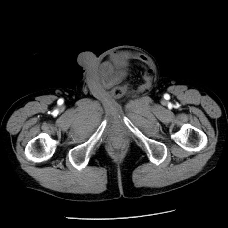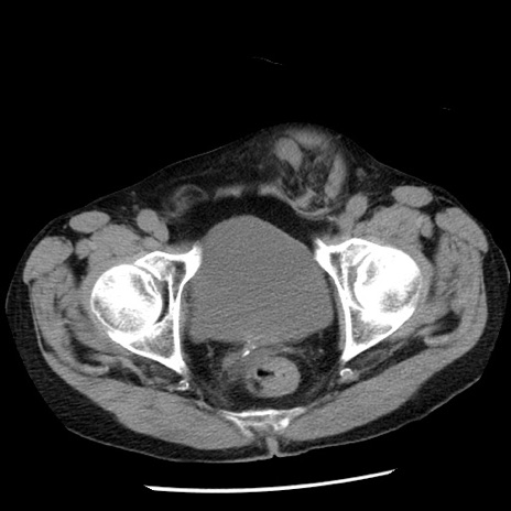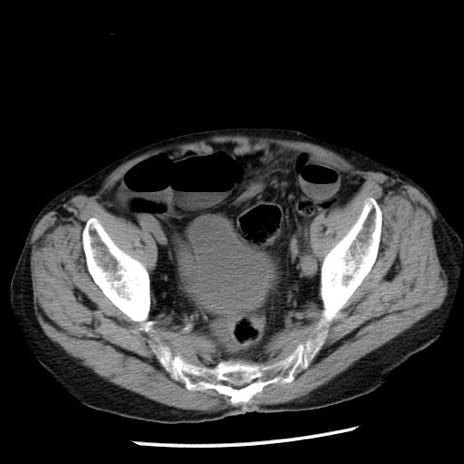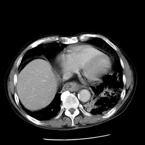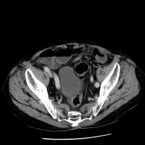 【症例】80歳代男性 【主訴】嘔吐 【現病歴】昨晩2回嘔吐あり、今朝になっても嘔吐あり。来院。 【既往歴】胃潰瘍 【身体所見】意識清明、BT 37.6℃、BP 166/95mmHg、HR 100bpm、SpO2 97%、腹部:平坦・軟、腸蠕動音聴取良好、圧痛なし。 【データ】WBC 21900、CRP 1.46