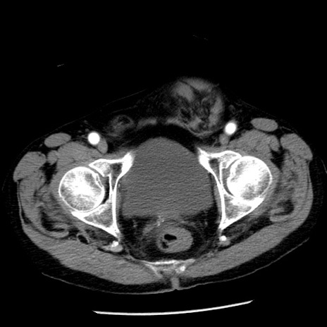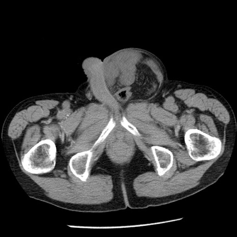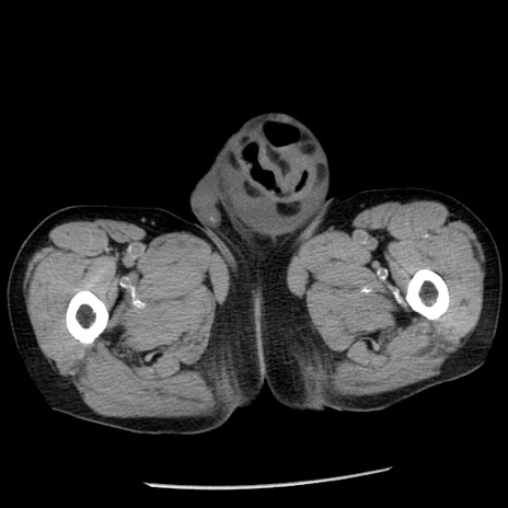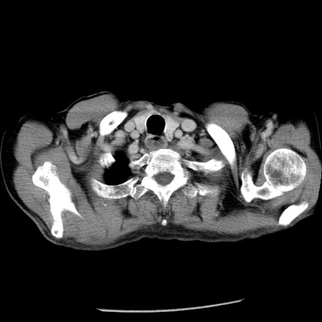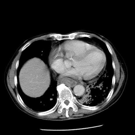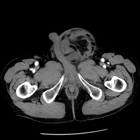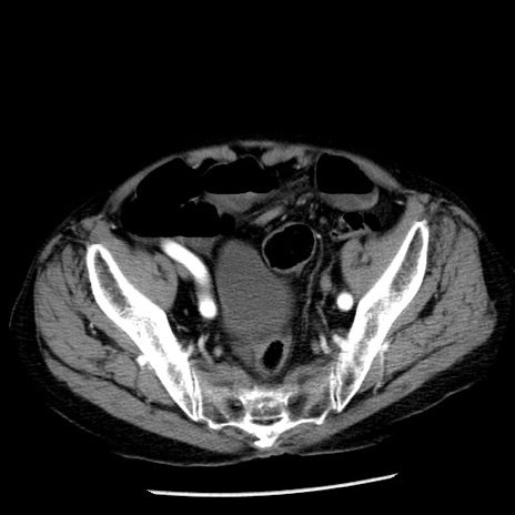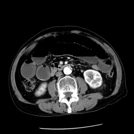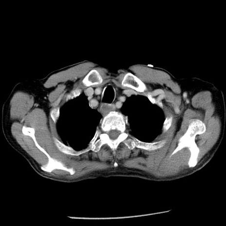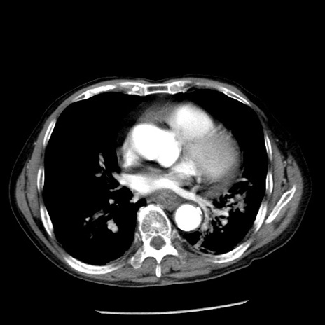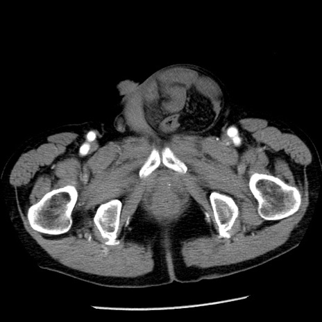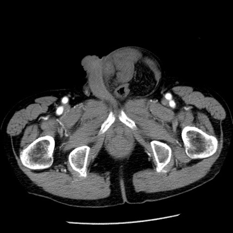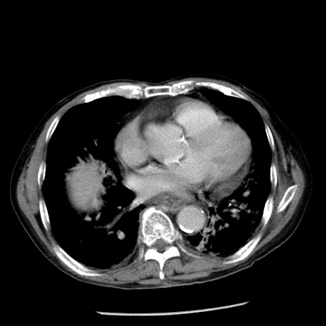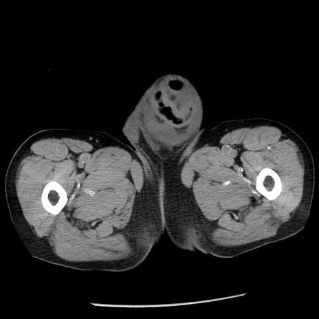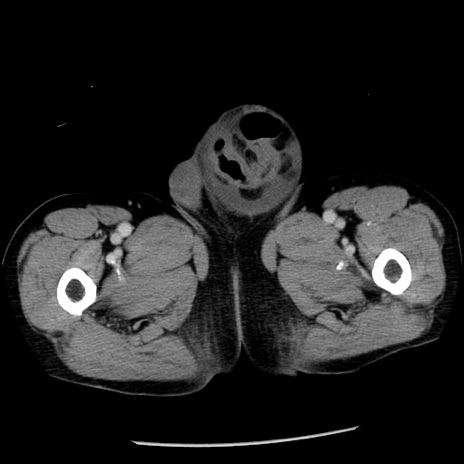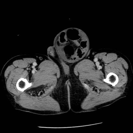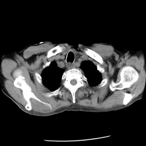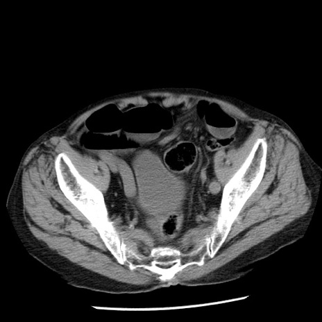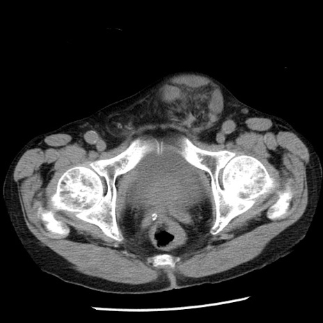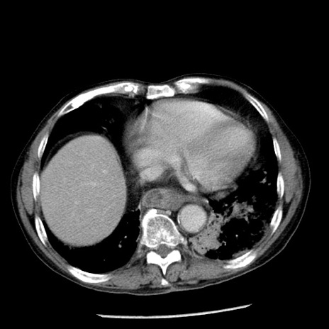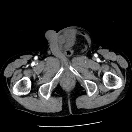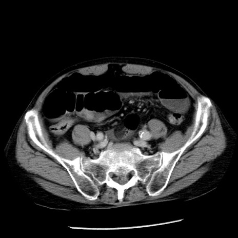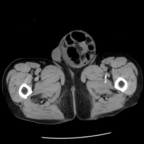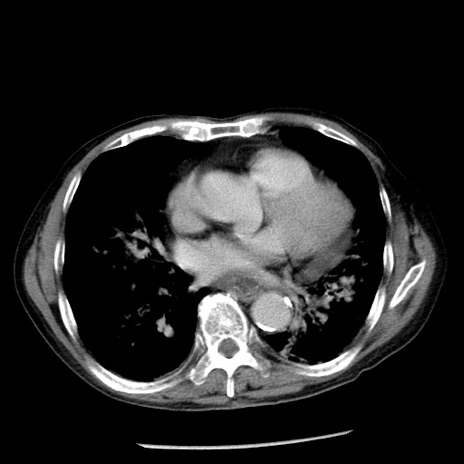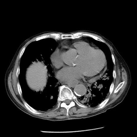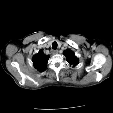 【症例】80歳代男性 【主訴】嘔吐 【現病歴】昨晩2回嘔吐あり、今朝になっても嘔吐あり。来院。 【既往歴】胃潰瘍 【身体所見】意識清明、BT 37.6℃、BP 166/95mmHg、HR 100bpm、SpO2 97%、腹部:平坦・軟、腸蠕動音聴取良好、圧痛なし。 【データ】WBC 21900、CRP 1.46