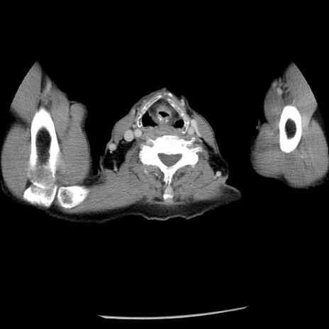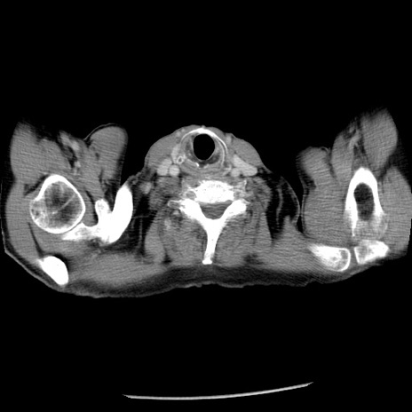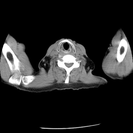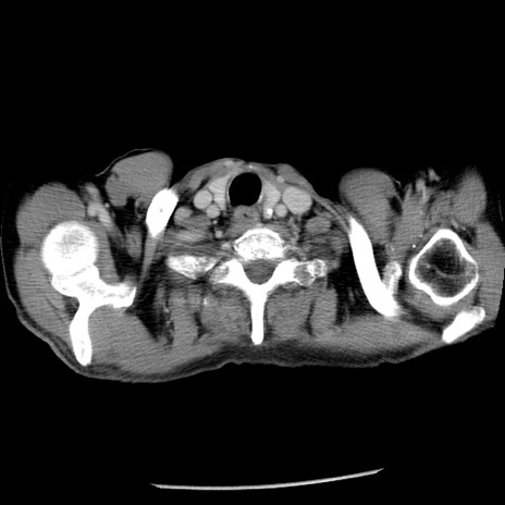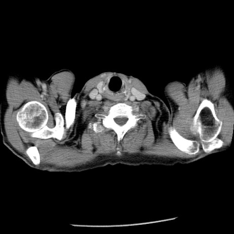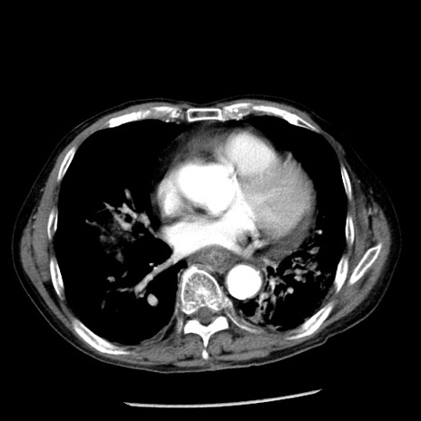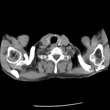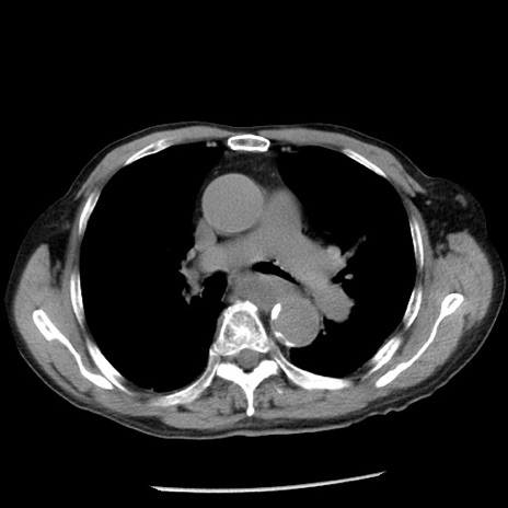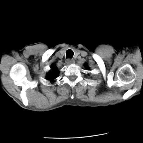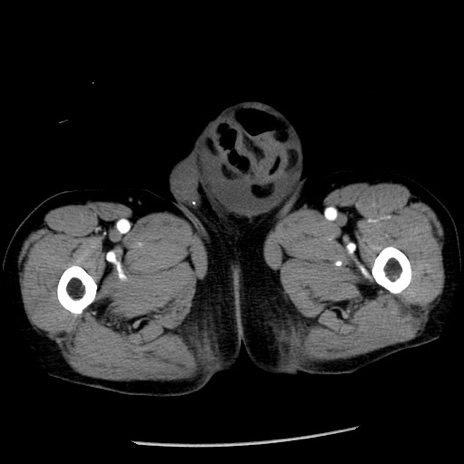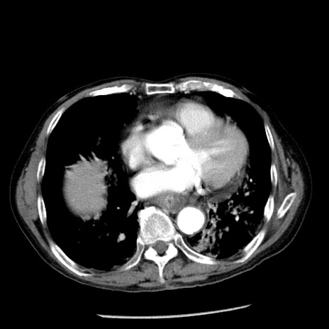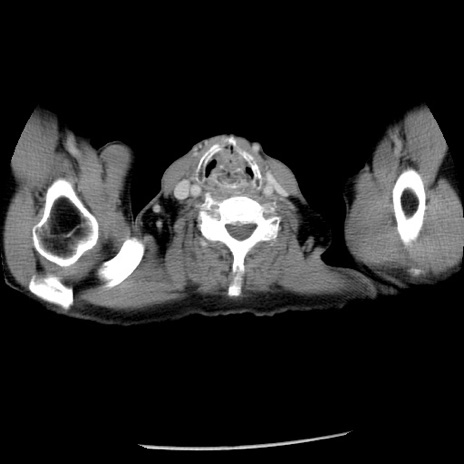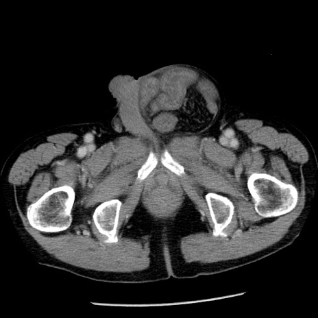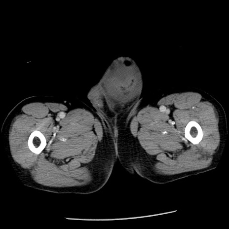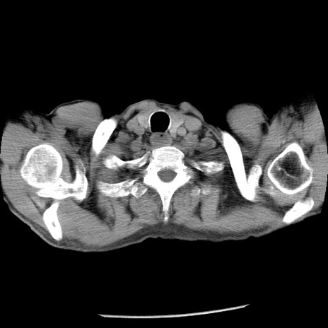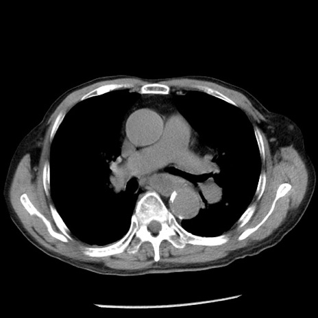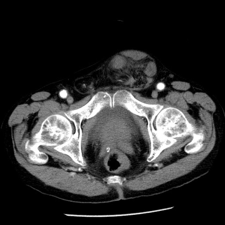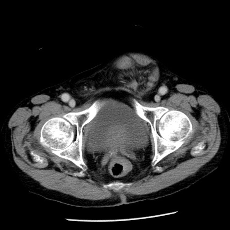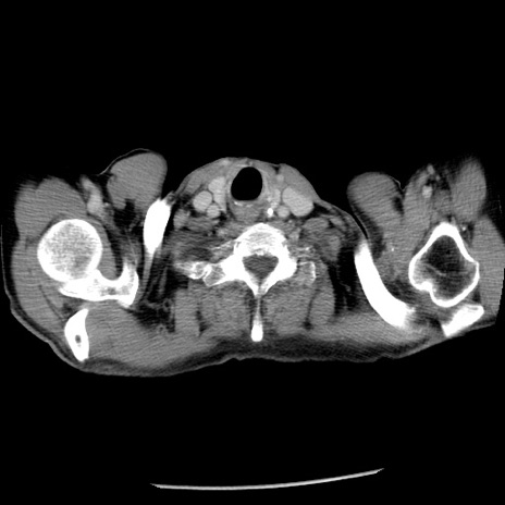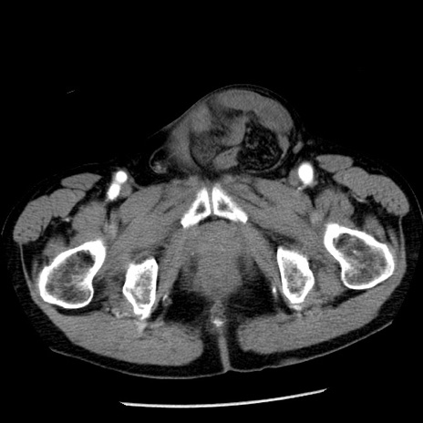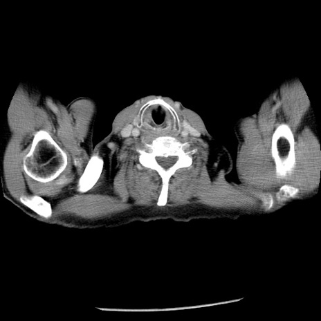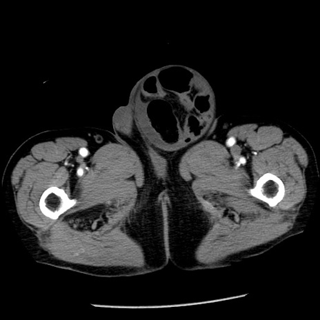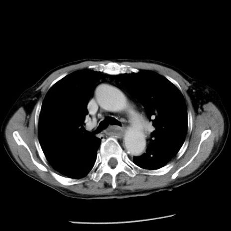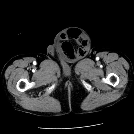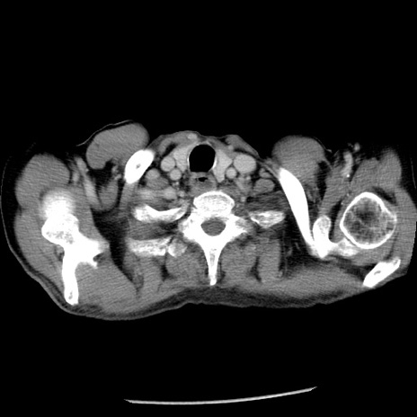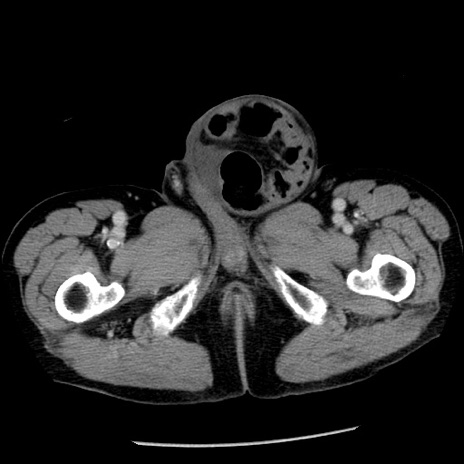 【症例】80歳代男性 【主訴】嘔吐 【現病歴】昨晩2回嘔吐あり、今朝になっても嘔吐あり。来院。 【既往歴】胃潰瘍 【身体所見】意識清明、BT 37.6℃、BP 166/95mmHg、HR 100bpm、SpO2 97%、腹部:平坦・軟、腸蠕動音聴取良好、圧痛なし。 【データ】WBC 21900、CRP 1.46