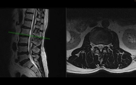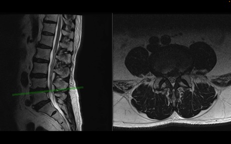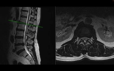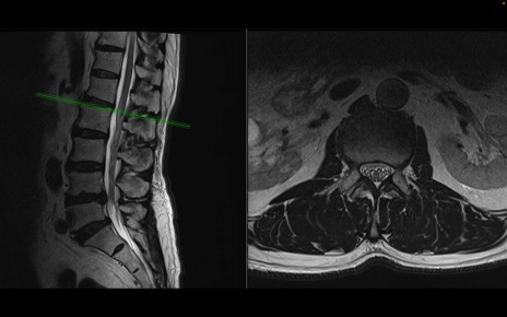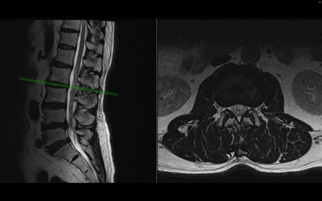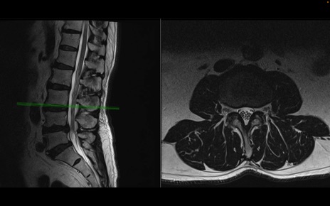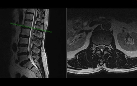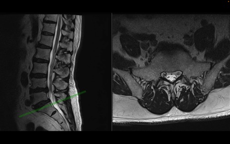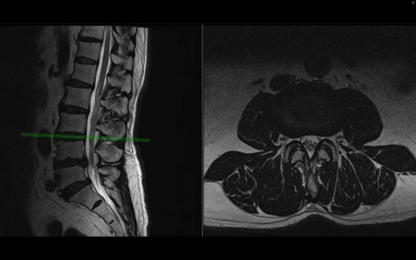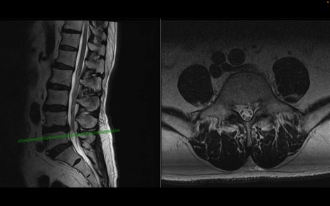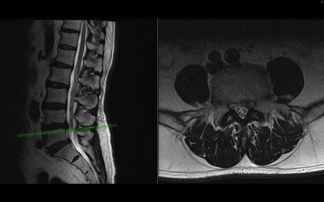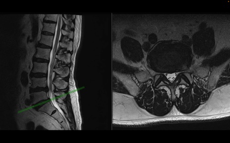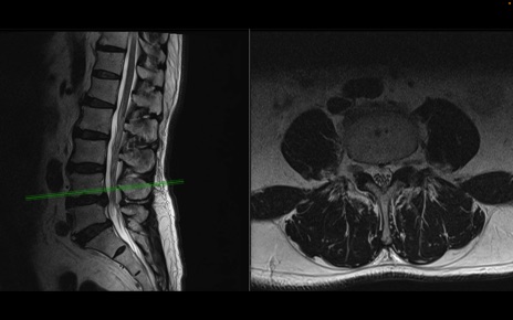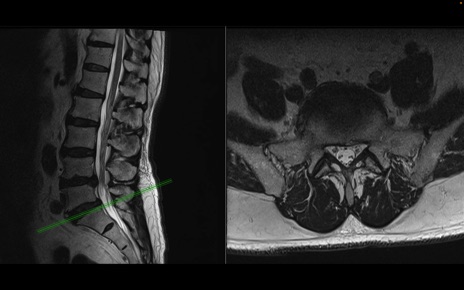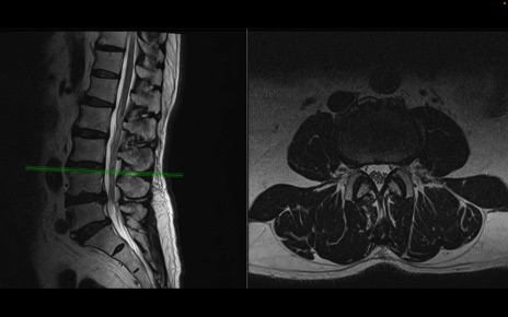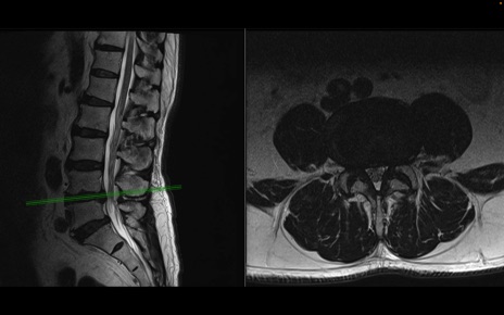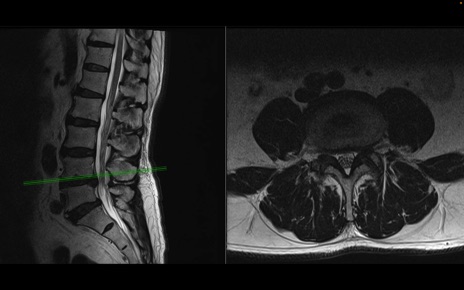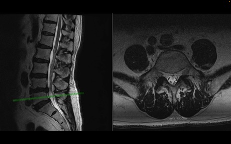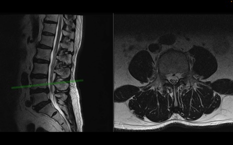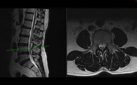 【整形】TIPS症例2 腰椎MRI 横断像と矢状断像