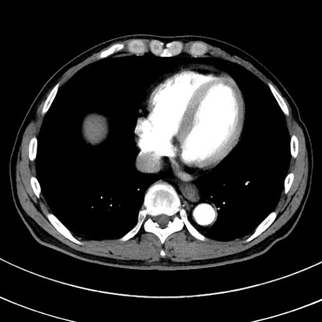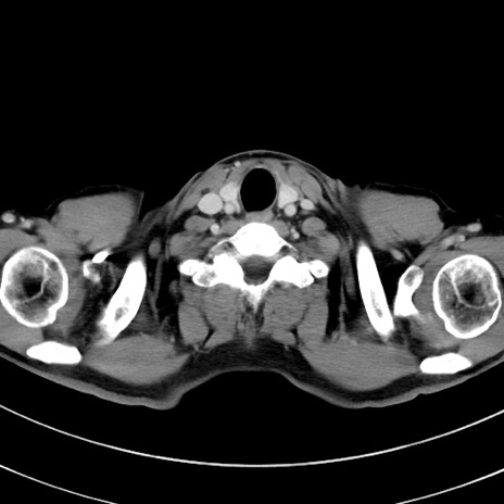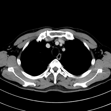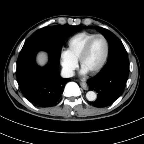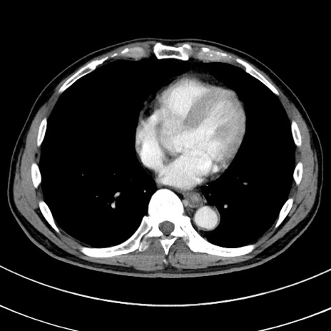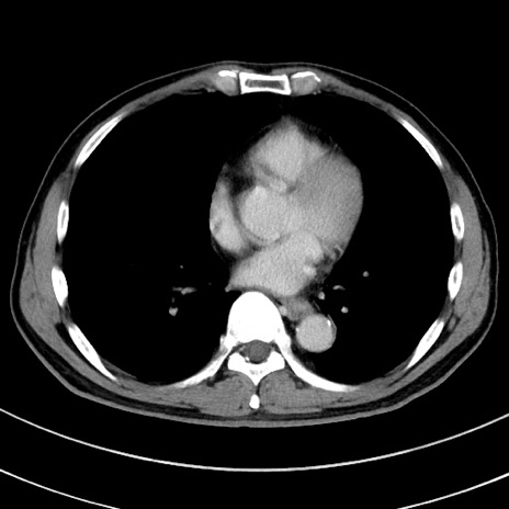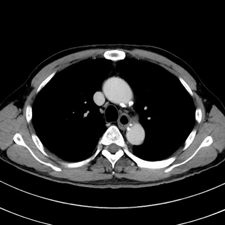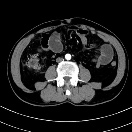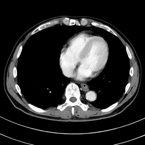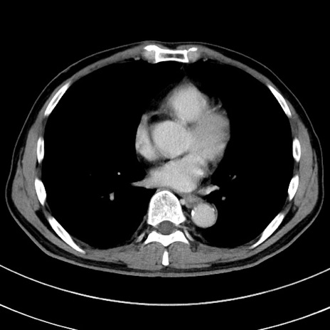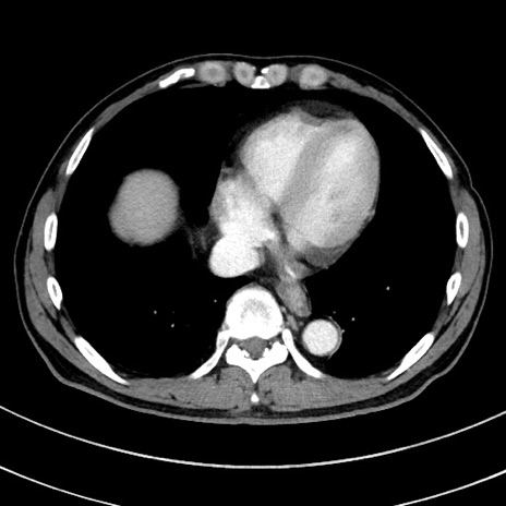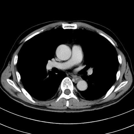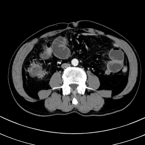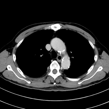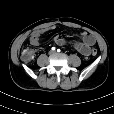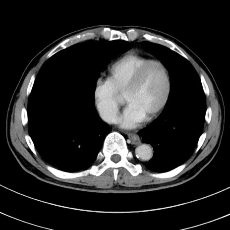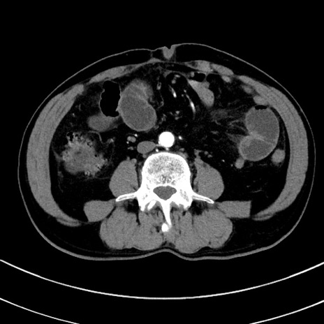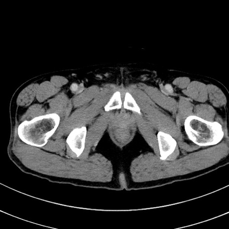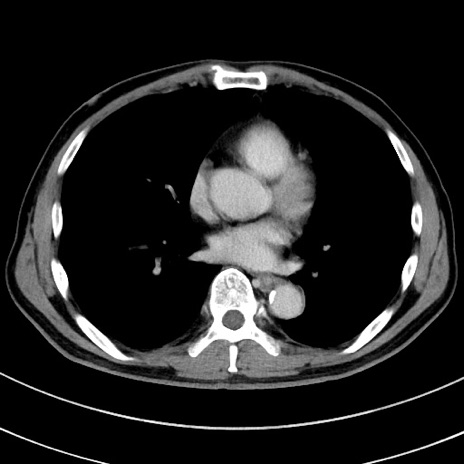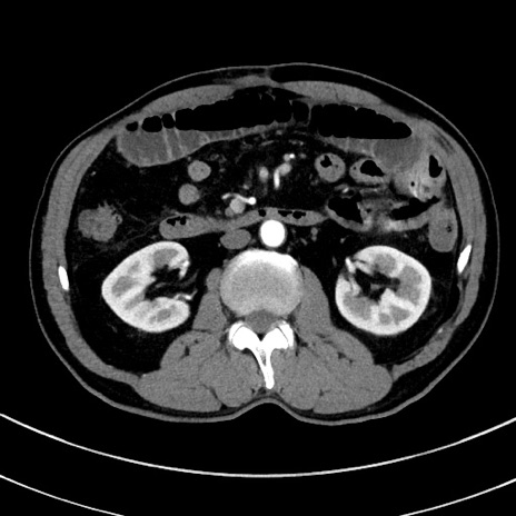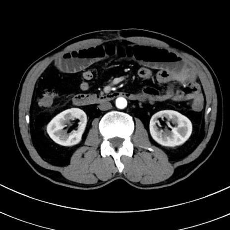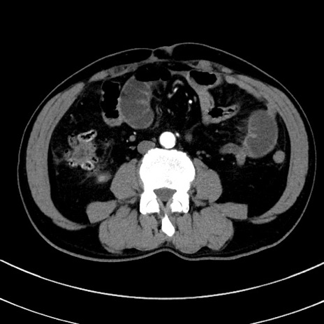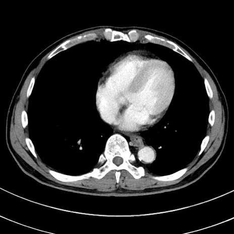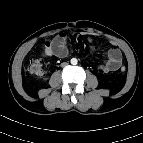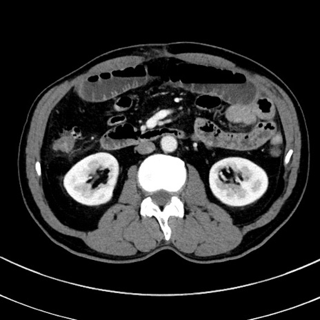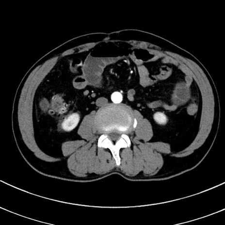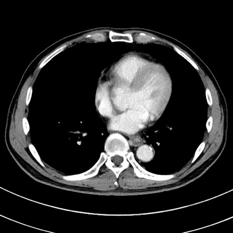 【症例】 60歳代男性 【主訴】 黒色吐物 【現病歴】 4日前から嘔気自覚、2日前の朝食後にも嘔気あり、自分で手で嘔吐反射起こし嘔吐したところ血が混ざっていたため受診。 【既往歴】 5年前汎発性腹膜炎を伴う急性虫垂炎で手術、高血圧、前立腺肥大症、高脂血症 【身体所見】 腹部正中に手術癩痕あり 腹部平坦・軟圧痛なし膨満感あり 【データ】WBC 8400、CRP 4.54
