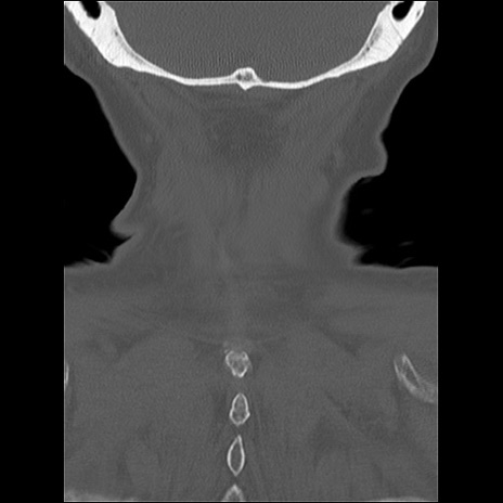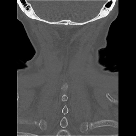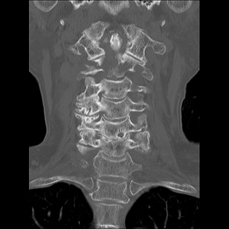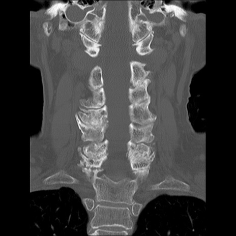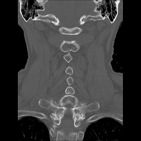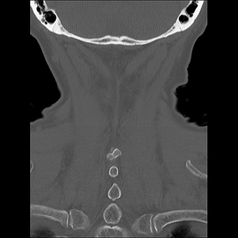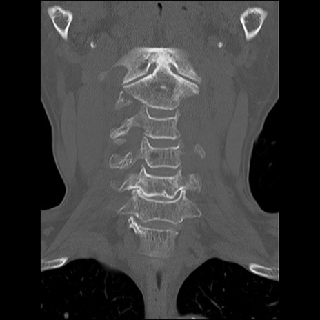 【症例】80歳代女性 【主訴】頸部痛 【現病歴】昨日家の階段を2段くらい上がったところで転倒して受傷。 【既往歴】糖尿病、高血圧 【身体所見】神経学的異常なし。