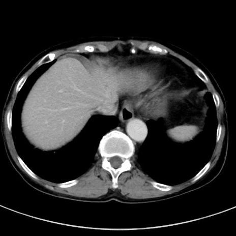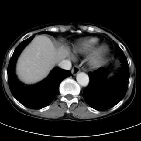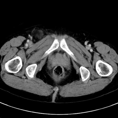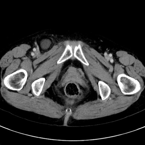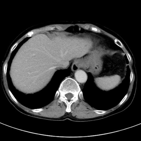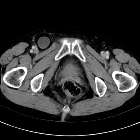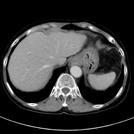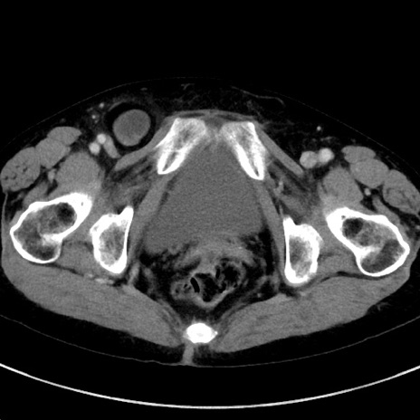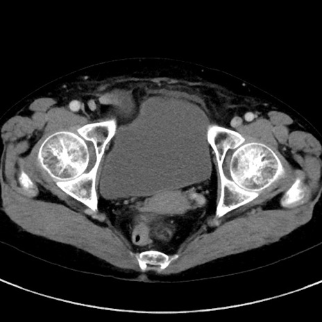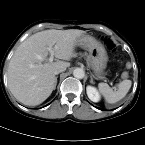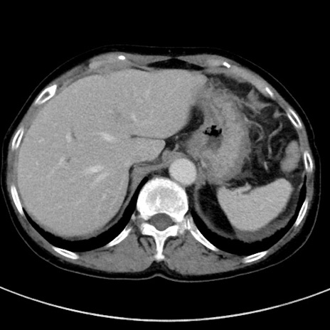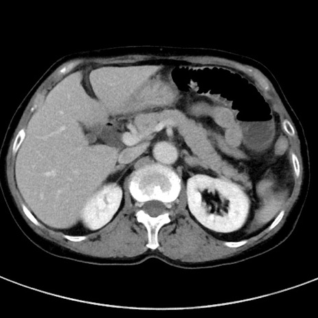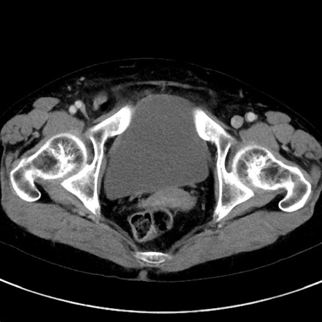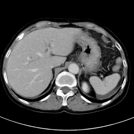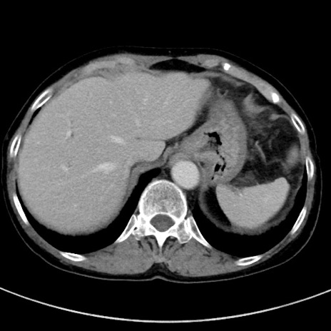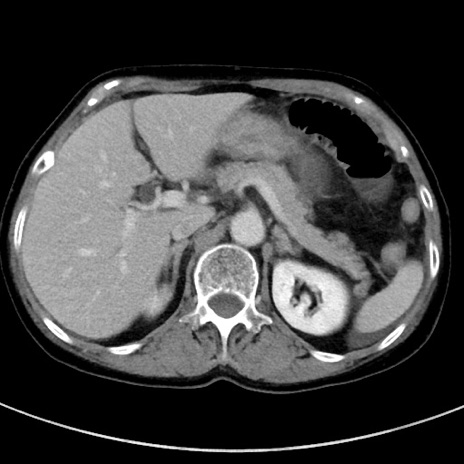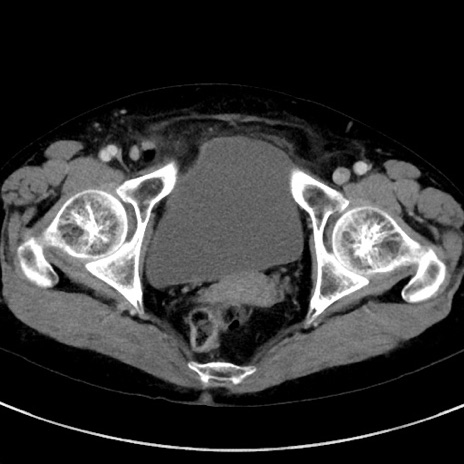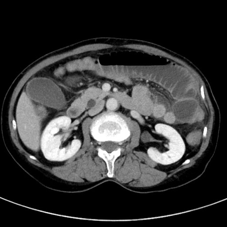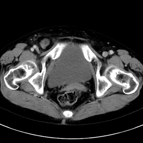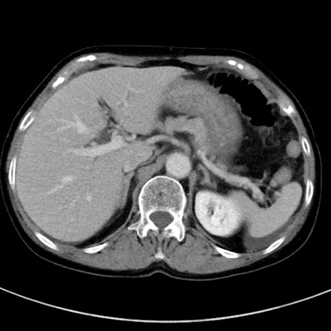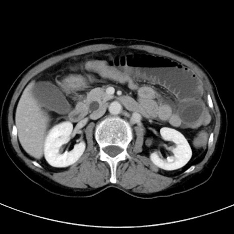 【症例】70歳代女性 【主訴】下腹部痛・嘔吐 【現病歴】2日前より腹痛あり。昨日嘔吐あり。症状改善しないため来院。 【既往歴】胃GISTに対して胃部分切除後。 【身体所見】BT 37.1℃、BP 128/77mmHg、腹部:平坦・軟、下腹部に圧痛あり。 【データ】WBC 10200、CRP 0.31