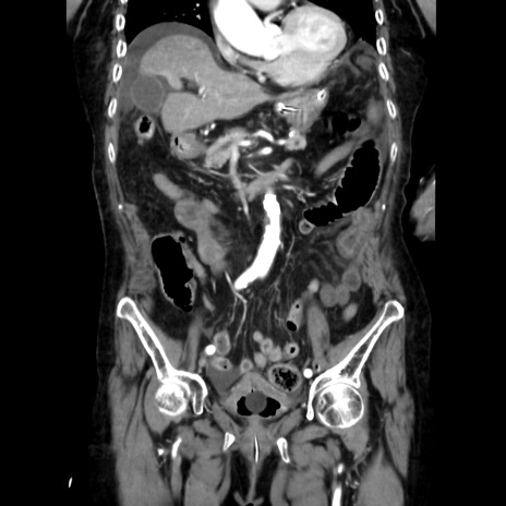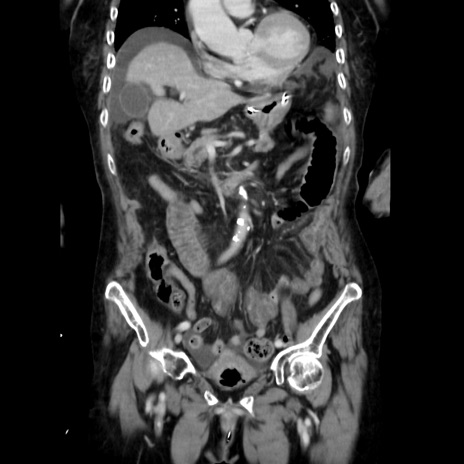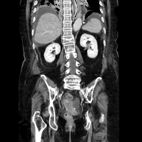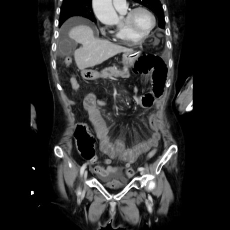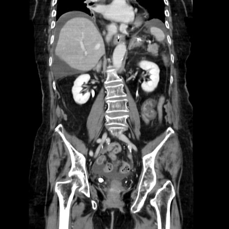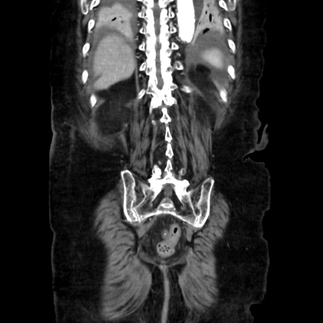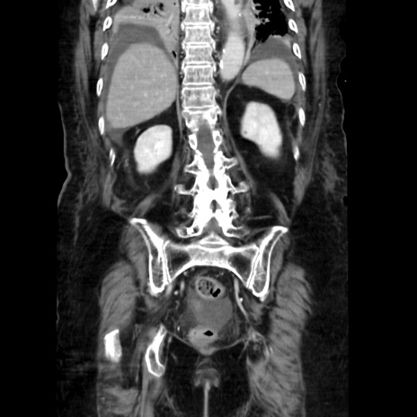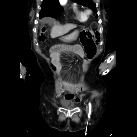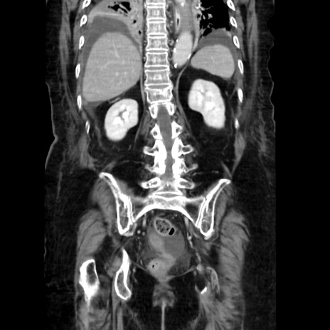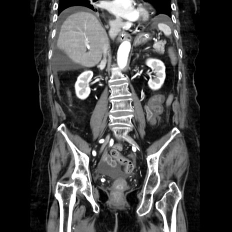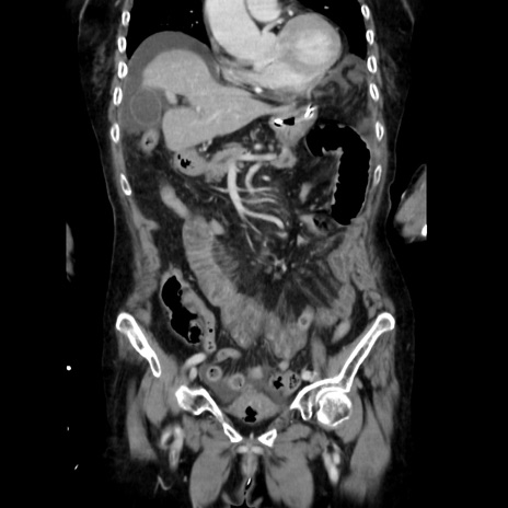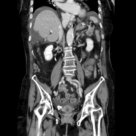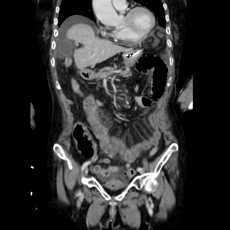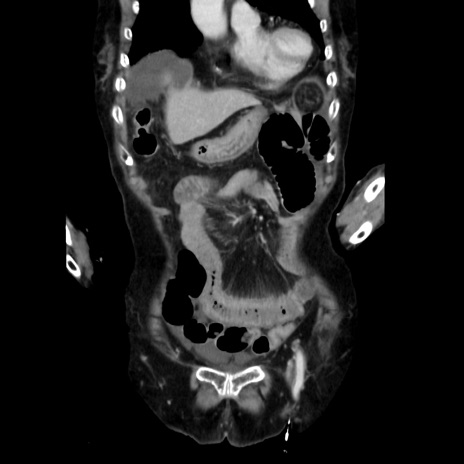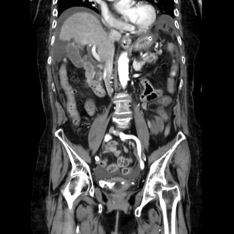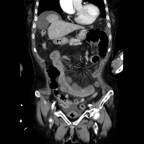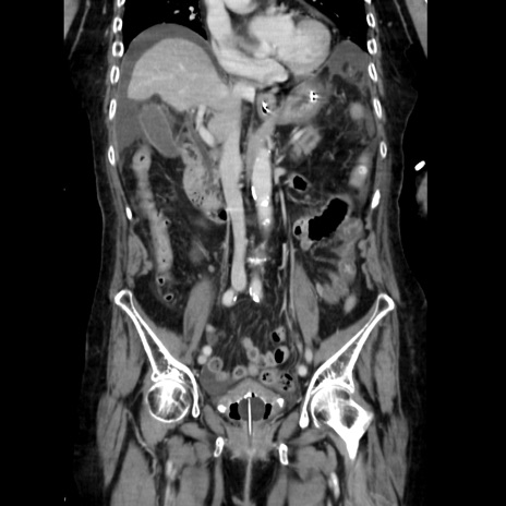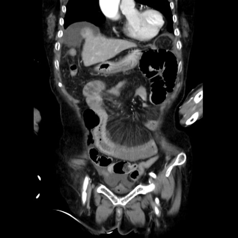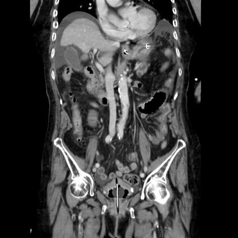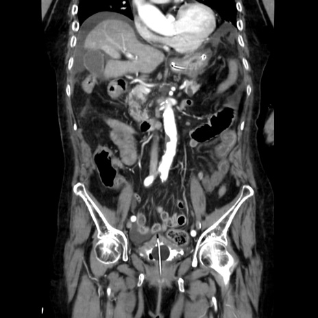 【症例】90歳代女性 【主訴】腹痛・嘔吐 【現病歴】 食欲低下、嘔吐があり昨日他院受診。肺炎と診断され入院となる。入院後より腹部全体に圧痛あり。胃管留置され経過みていたが、症状持続するため、当院転院となる。 【既往歴】胸椎圧迫骨折、胆石症 【身体所見】腹部:中央に激痛あり、圧痛あり、反跳痛不明 【データ】WBC 17100、CRP 18.82