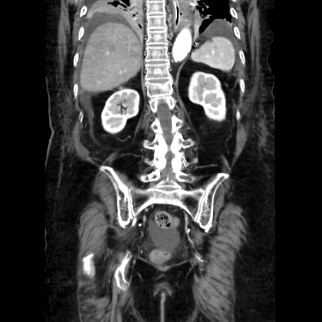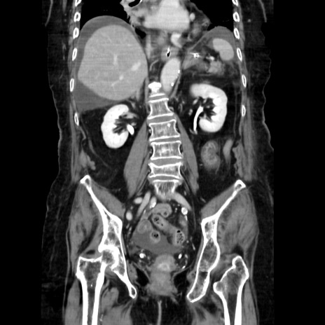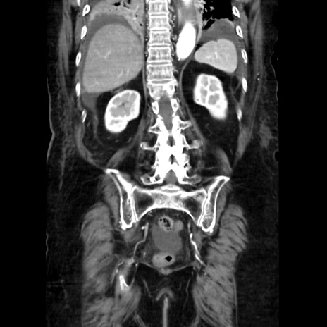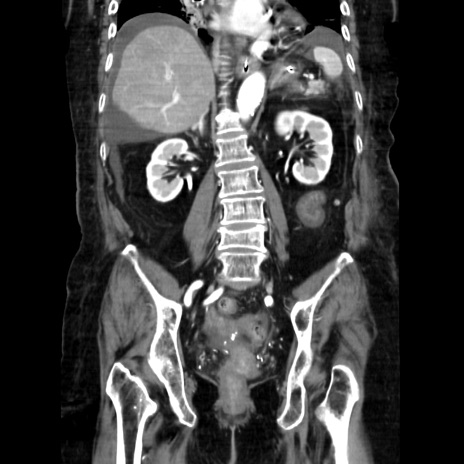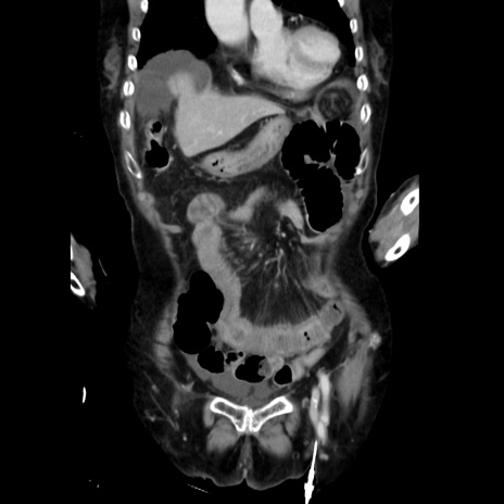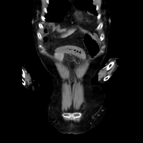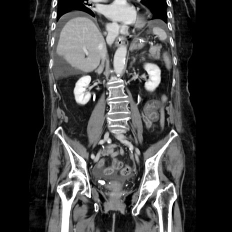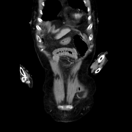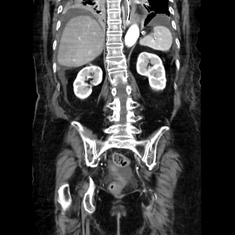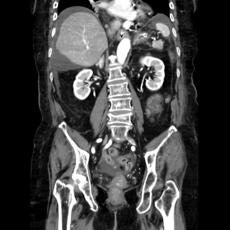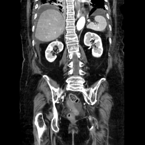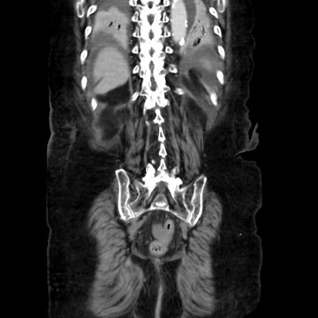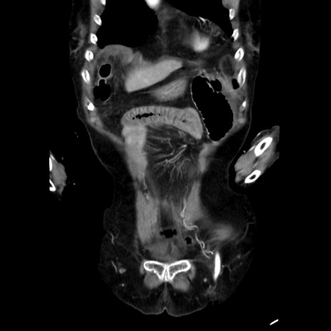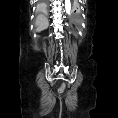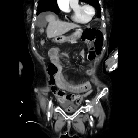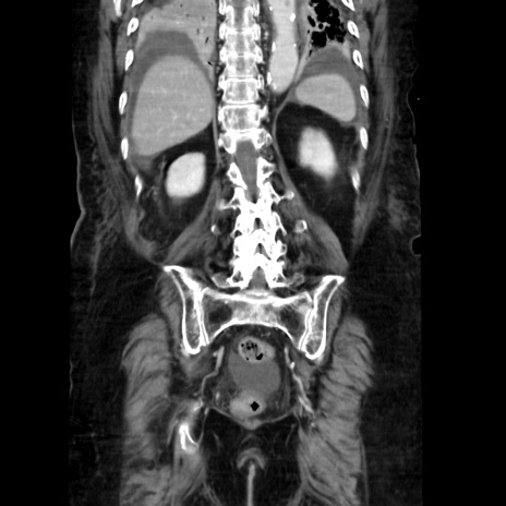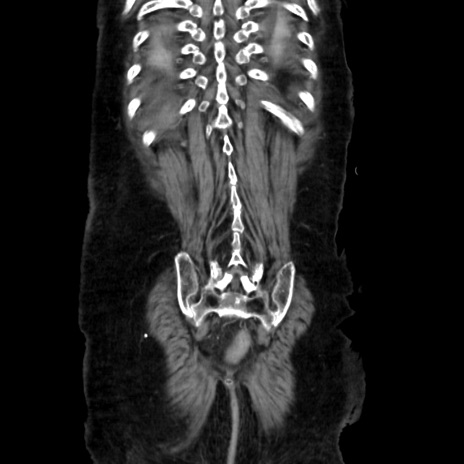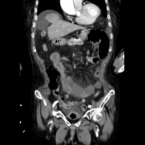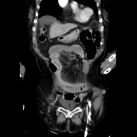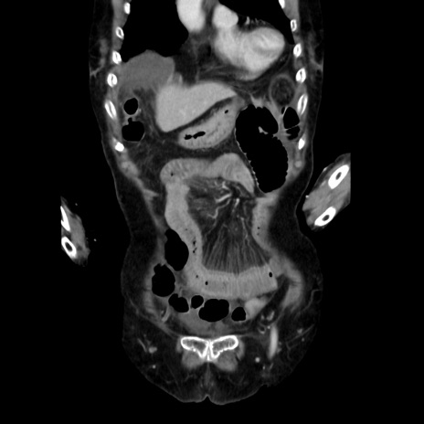 【症例】90歳代女性 【主訴】腹痛・嘔吐 【現病歴】 食欲低下、嘔吐があり昨日他院受診。肺炎と診断され入院となる。入院後より腹部全体に圧痛あり。胃管留置され経過みていたが、症状持続するため、当院転院となる。 【既往歴】胸椎圧迫骨折、胆石症 【身体所見】腹部:中央に激痛あり、圧痛あり、反跳痛不明 【データ】WBC 17100、CRP 18.82