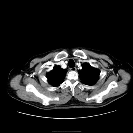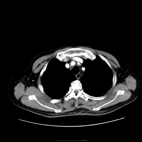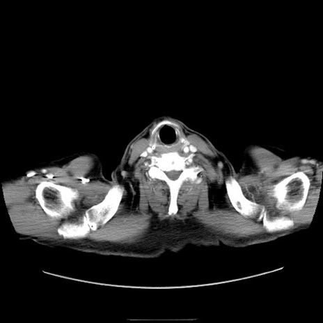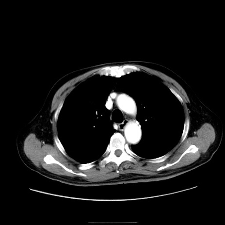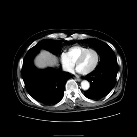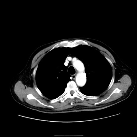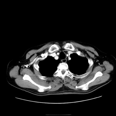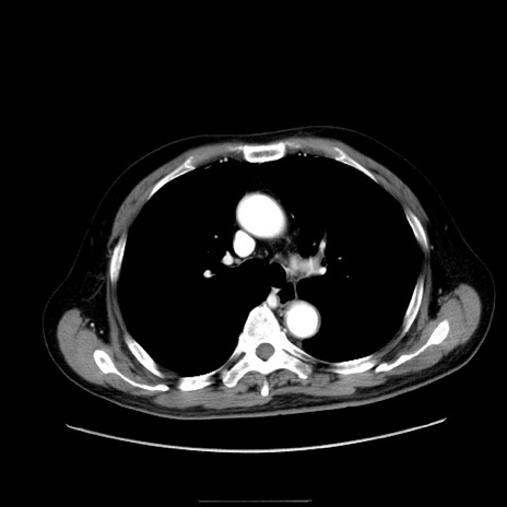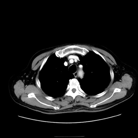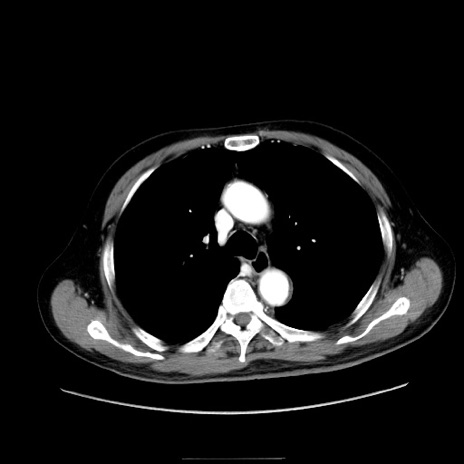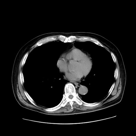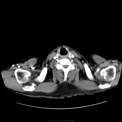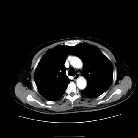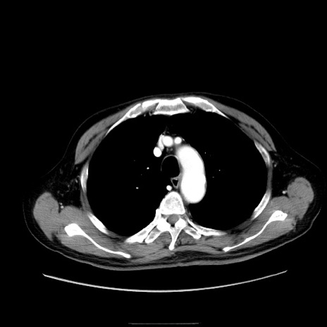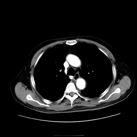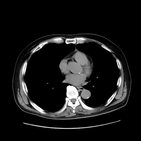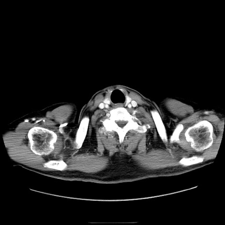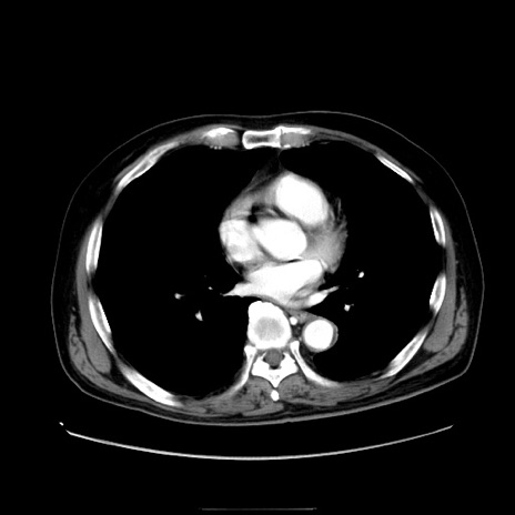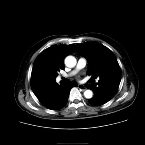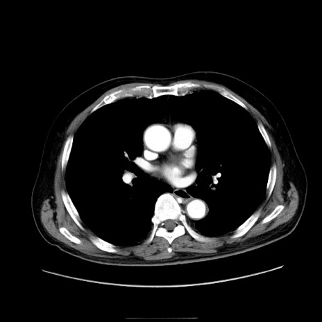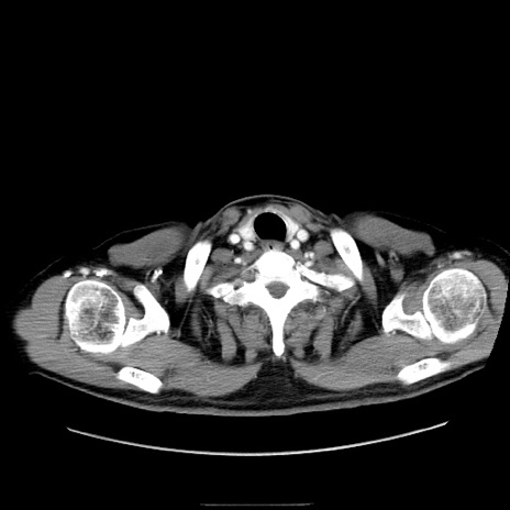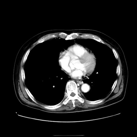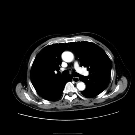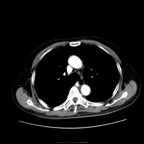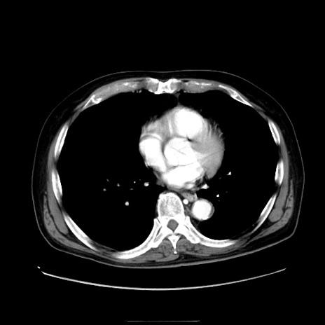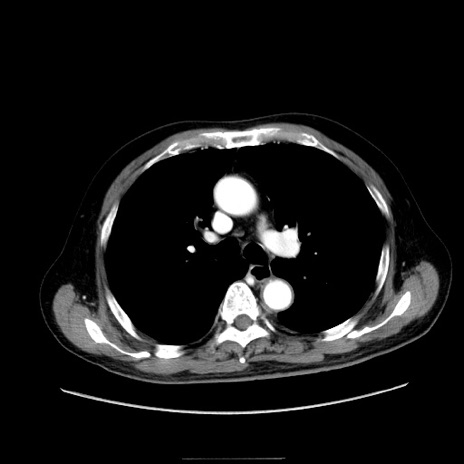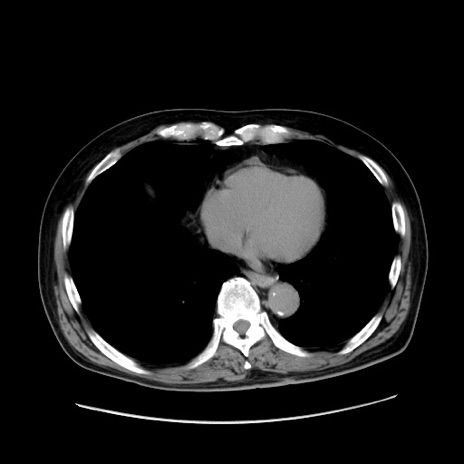 【症例】80歳代男性 【主訴】臍周囲痛 【現病歴】約6時間前から臍下部痛が出現。次第に腹部膨隆・背部痛も生じてきたため来院。背部痛の場所は変化しない。 【既往歴】腎盂腎炎 【身体所見】意識清明、BT 36.3℃、BP 131/87mmHg、P 87bpm、SpO2 100%(RA)、臍周囲自発痛・圧痛あり、反跳痛なし、自発痛部位に一致して板状硬あり、腹部膨隆、腸雑音減弱、CVA tenderness両側陰性。 【データ】WBC 19600、CRP 0.33
