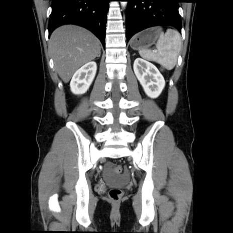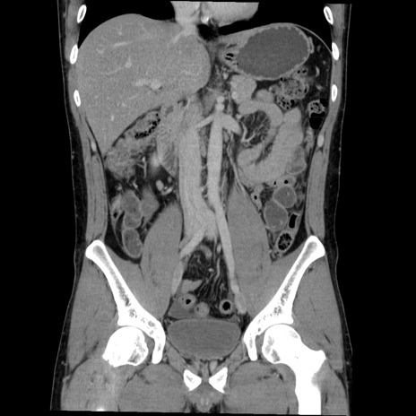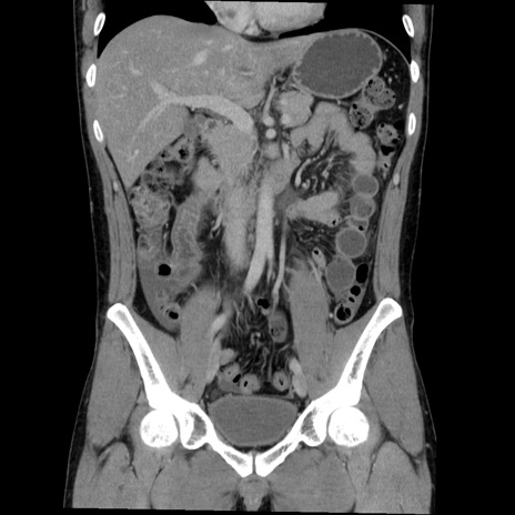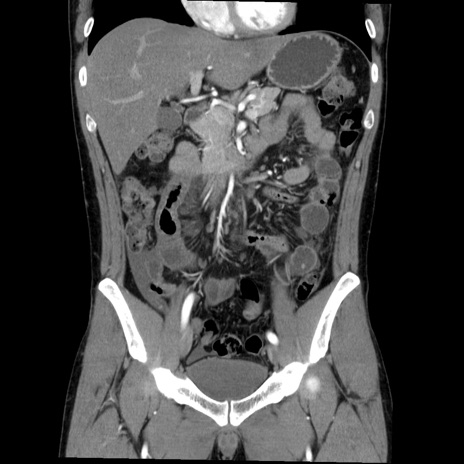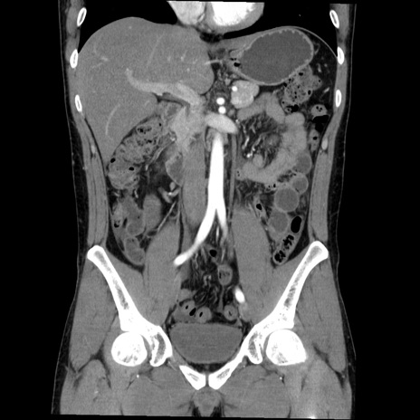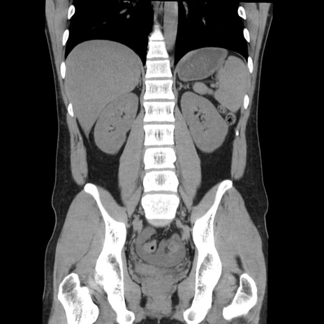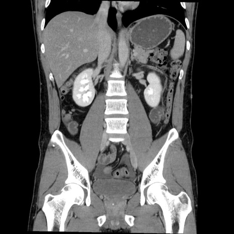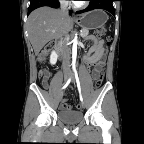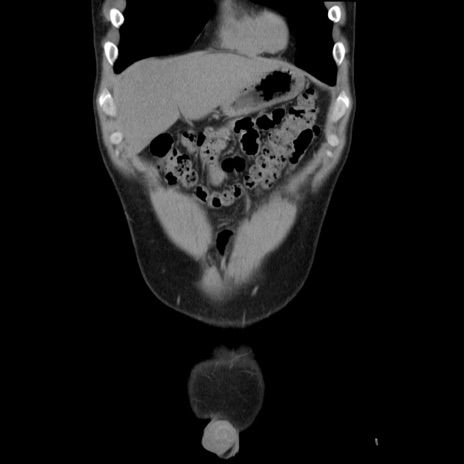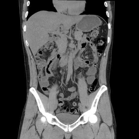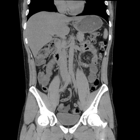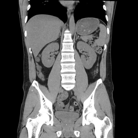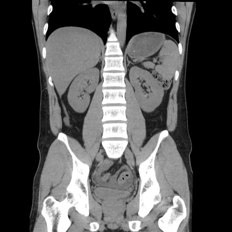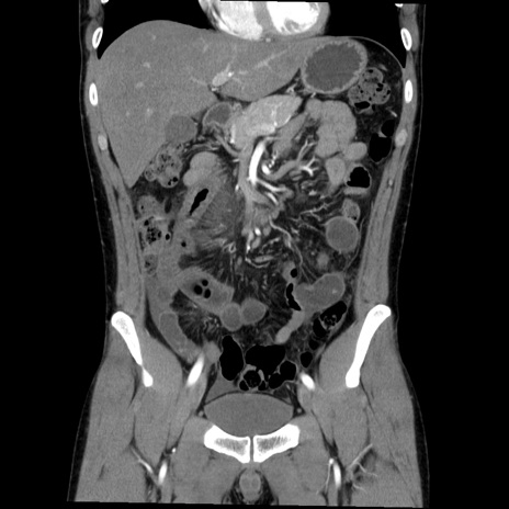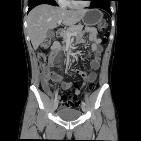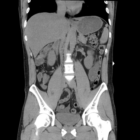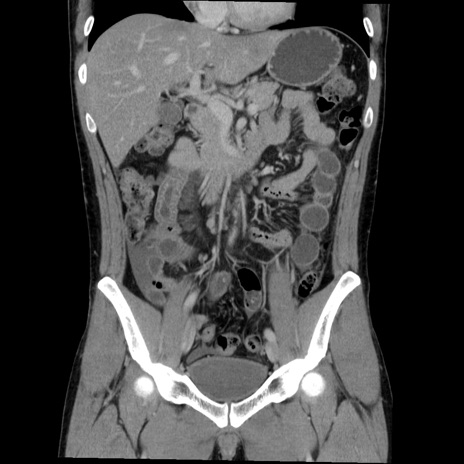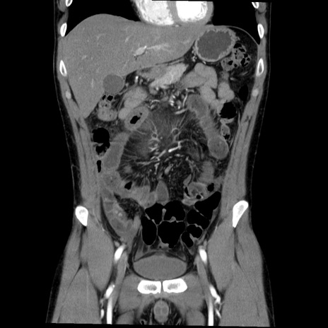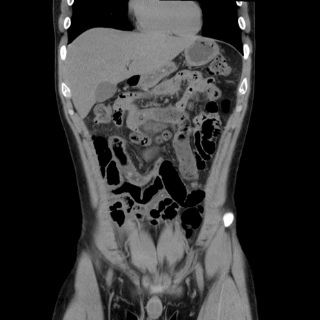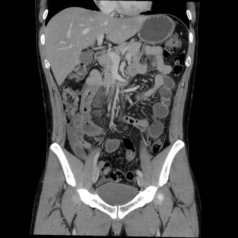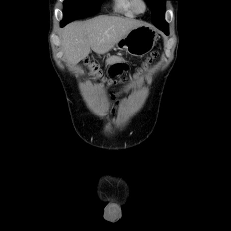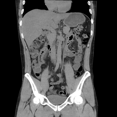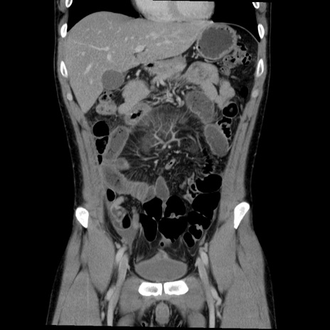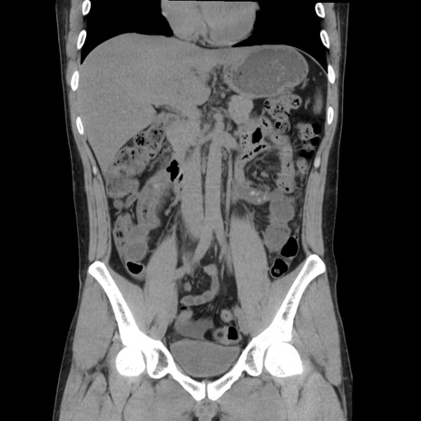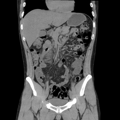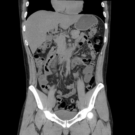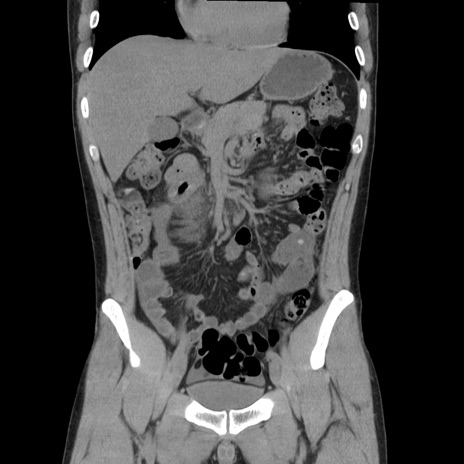 【症例】20歳代 男性 【主訴】心窩部痛 【現病歴】今朝より上腹部痛あり。一旦軽快していたが再度出現したため救急要請。昨日夕に白身の魚を含む刺身を食べた。 【既往歴】なし 【身体所見】BP 136/89mmHg、HR 74/min、BT 37.0℃、腹部:膨満、軟、心窩部に圧痛あり。反跳痛なし、筋性防御なし、腸雑音やや亢進あり。 【データ】WBC 17700、CRP 0.48