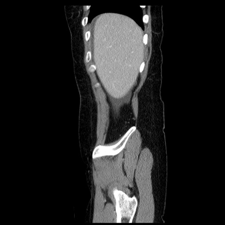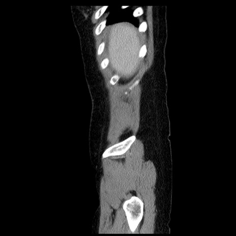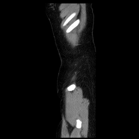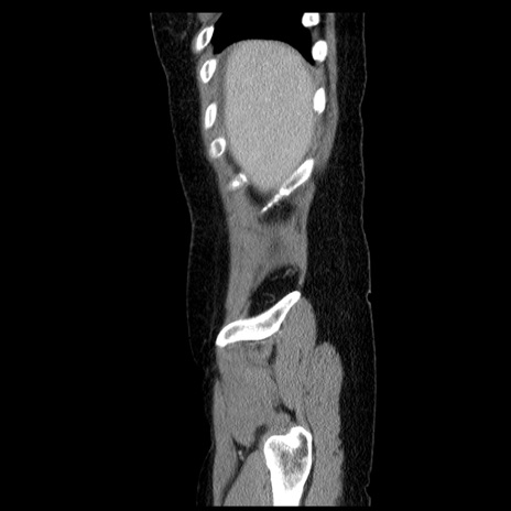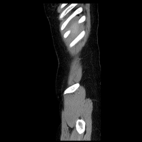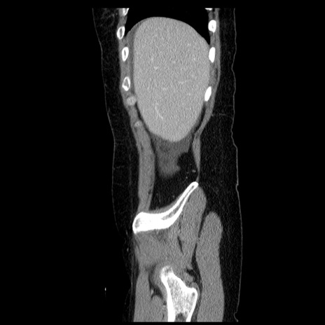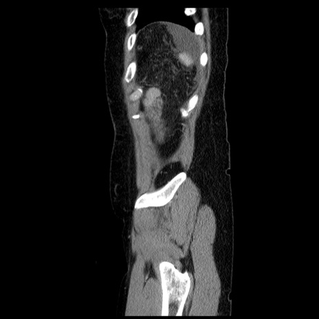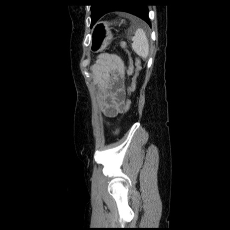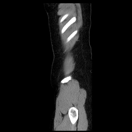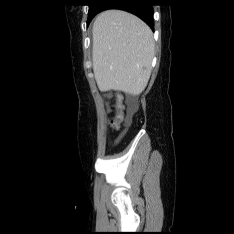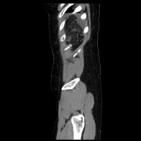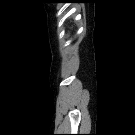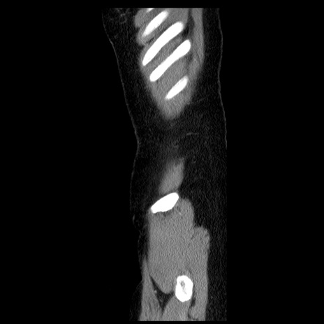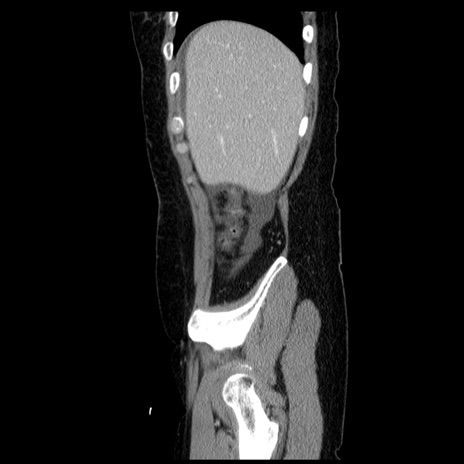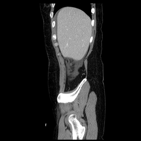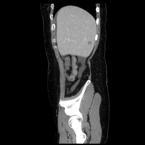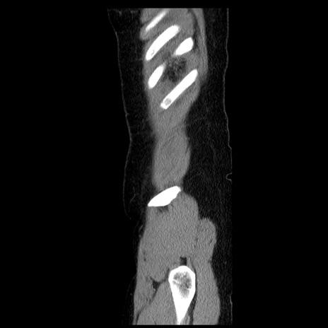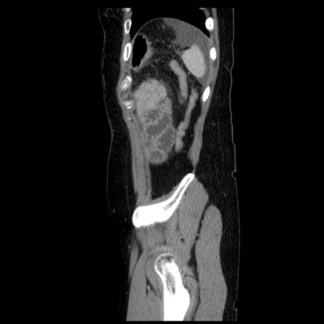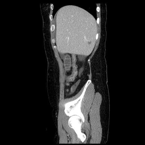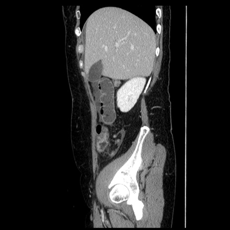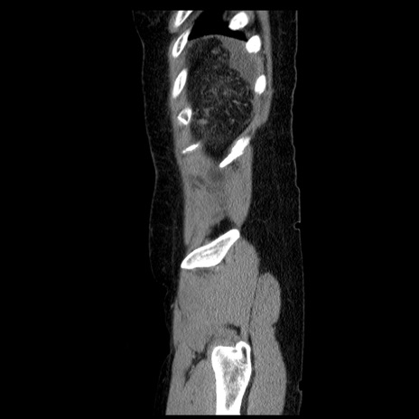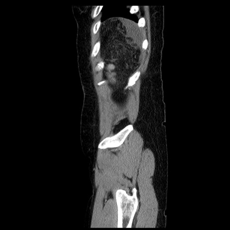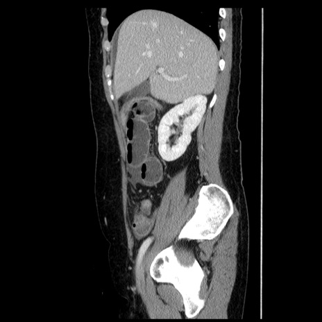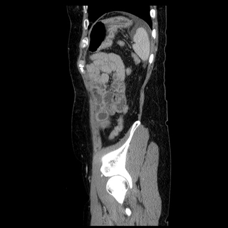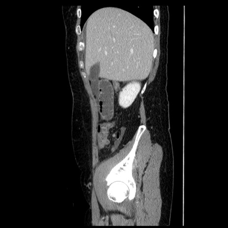 【症例】50歳代女性 【主訴】下腹部痛 【現病歴】本日朝より下痢2回あり。 昼食を食べた後、嘔吐3回、下腹部痛認め、症状軽快せず、当院救急搬送。 最終食事:本日昼(生ものなし)。 昨日の夜、刺身を食ぺたとのこと。周囲に同様の症状の者なし。普段、排便は毎日あるとのこと。 【既往歴】卵巣癌術後(8年前に当院で卵巣摘出) 【身体所見】 意識清明、腹部:平坦、腸蠕動音→、やや硬、下腹部自発痛・圧痛あり、反跳痛あり、筋性防御なし。 【データ】WBC 16000、CRP 0.01