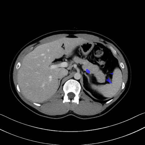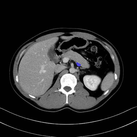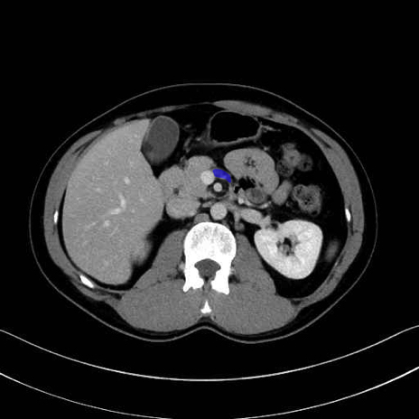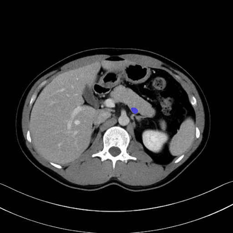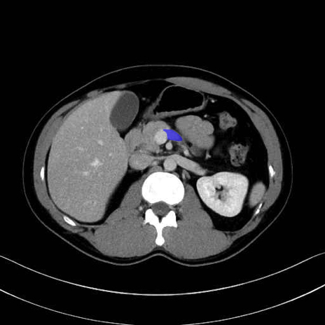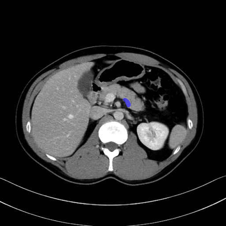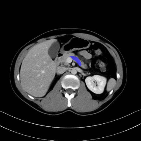 ■走行:膵体尾部の後面溝を右走し、膵頸部の後方で上腸間膜静脈(SMV)と合流して門脈を形成。