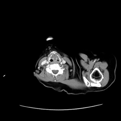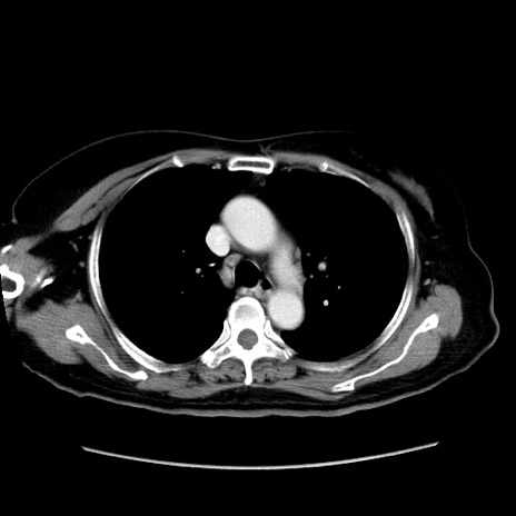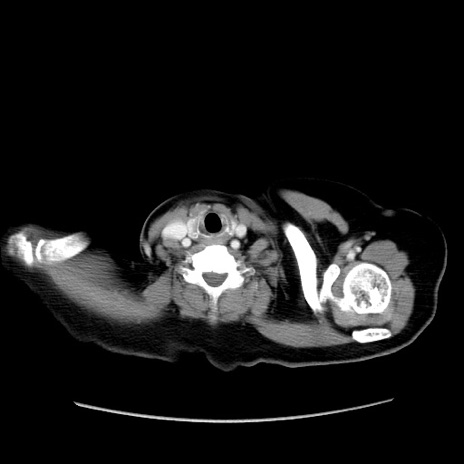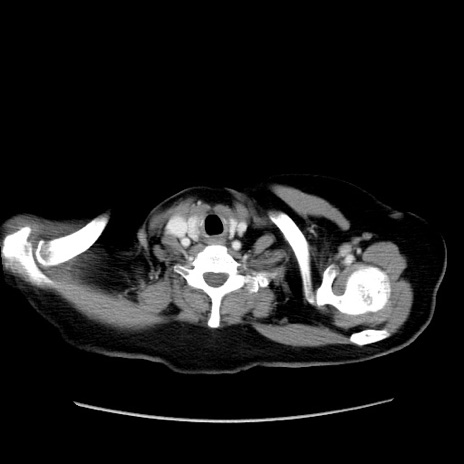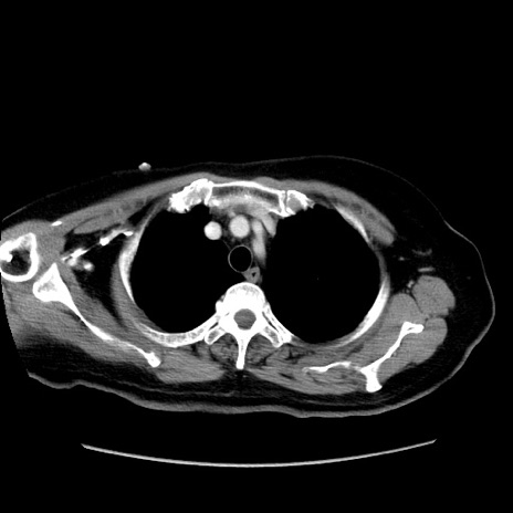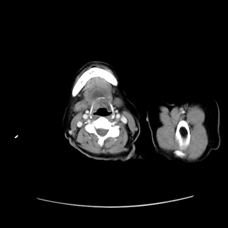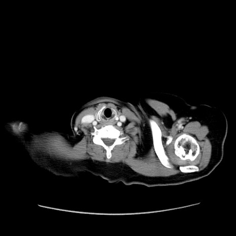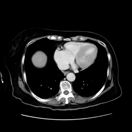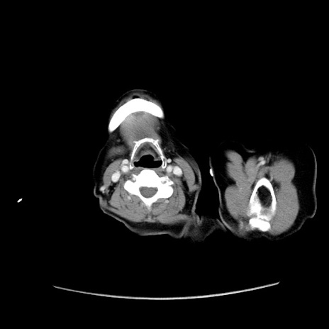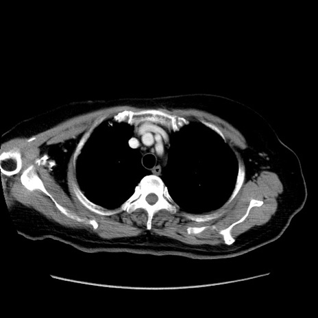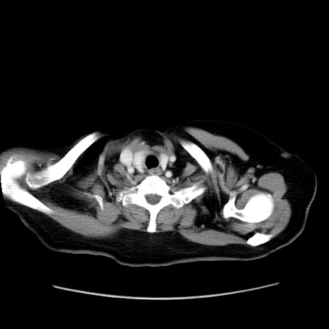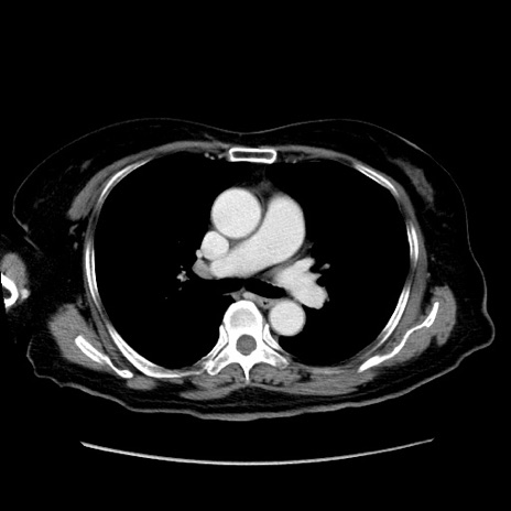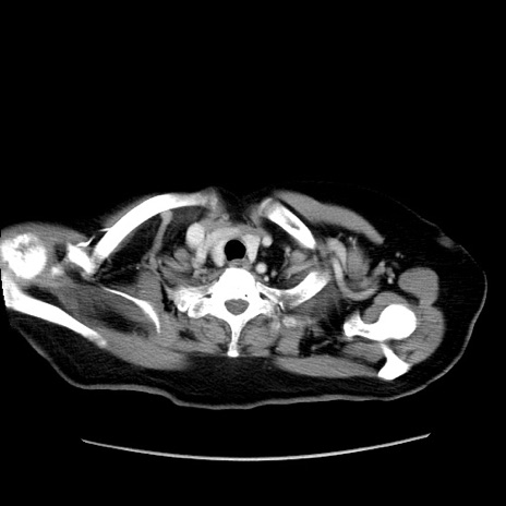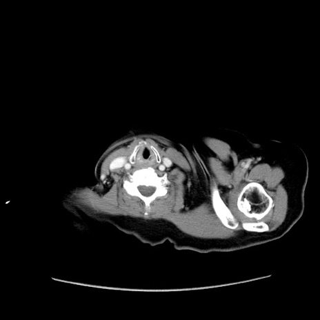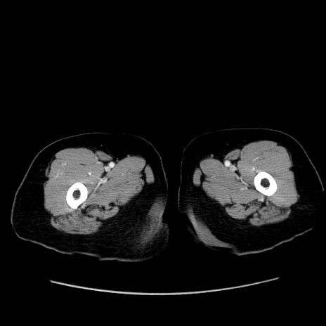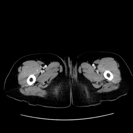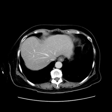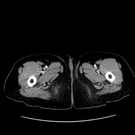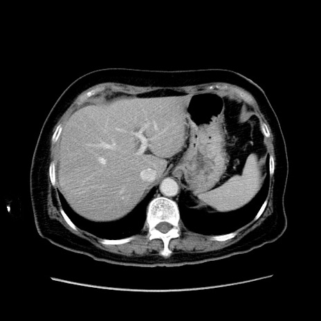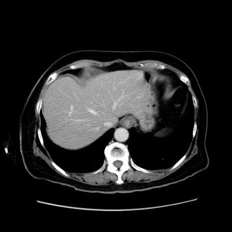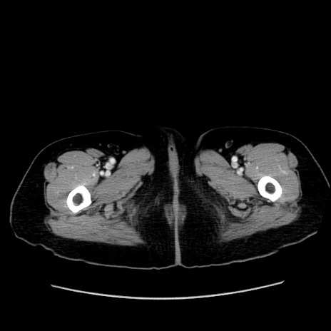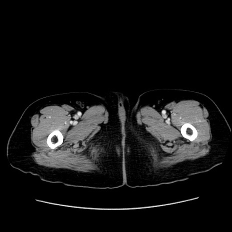 【症例】80歳代女性 【主訴】下腹部痛 【現病歴】約8時間前より下腹部痛の出現あり、救急外来受診。 【既往歴】両側付属器切除 【身体所見】意識清明、下腹部正中に手術痕あり、その部位に一致して圧痛と反跳痛あり。腸蠕動音は亢進。 【データ】WBC 9300、CRP 0.15