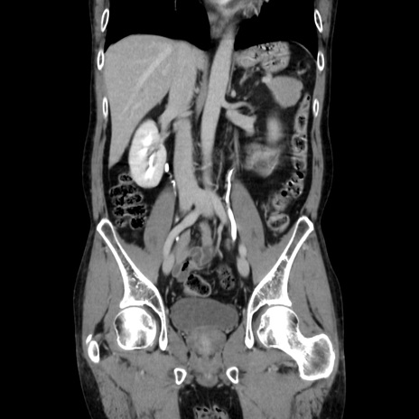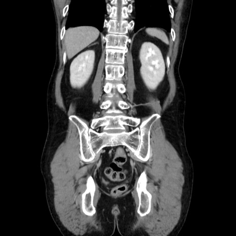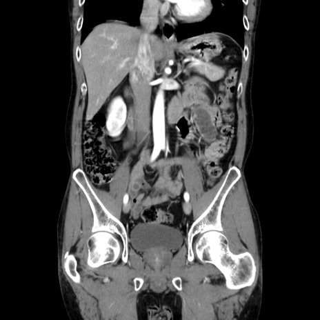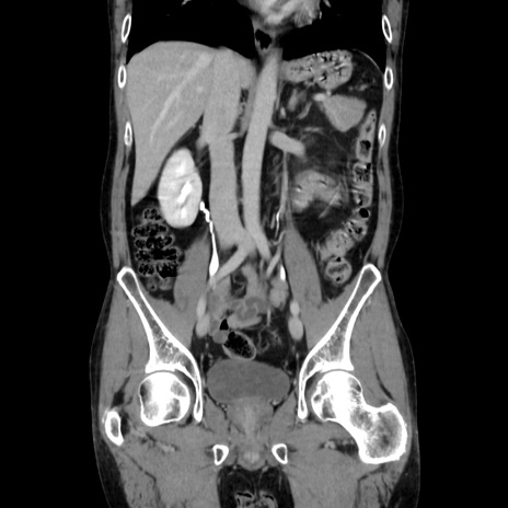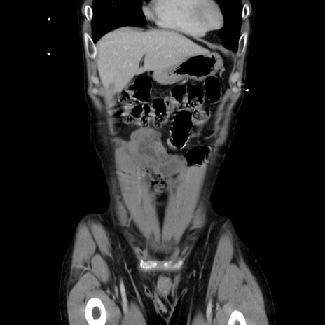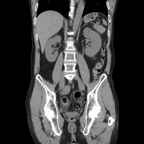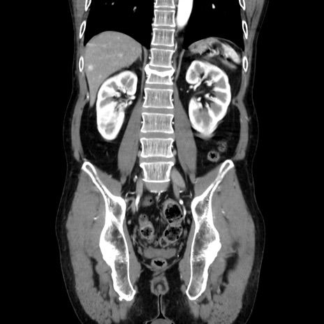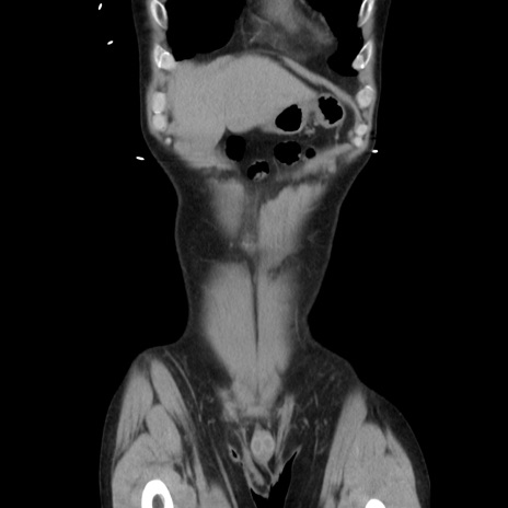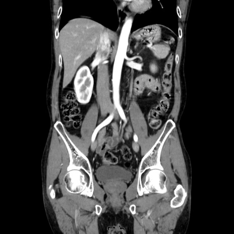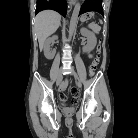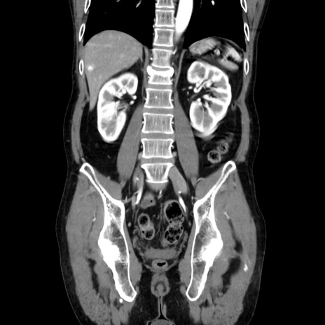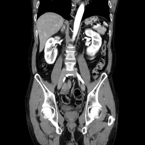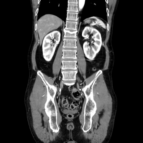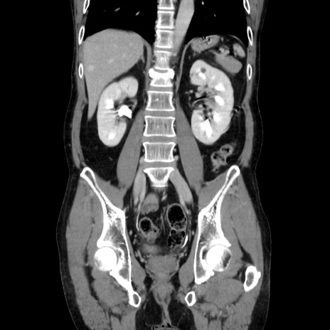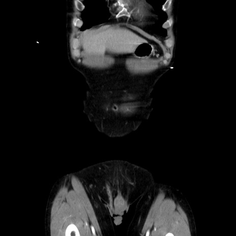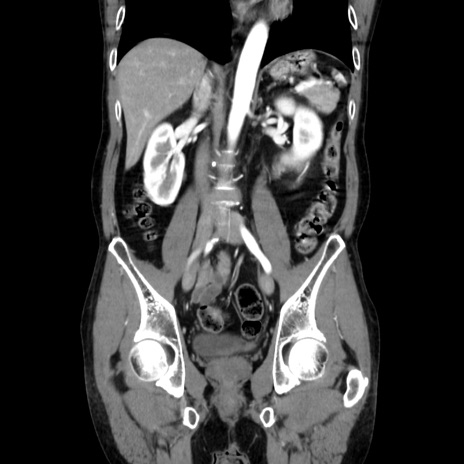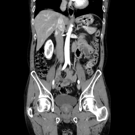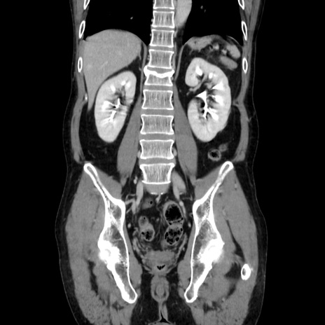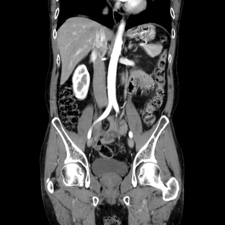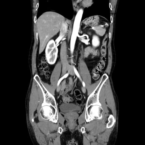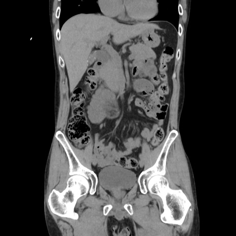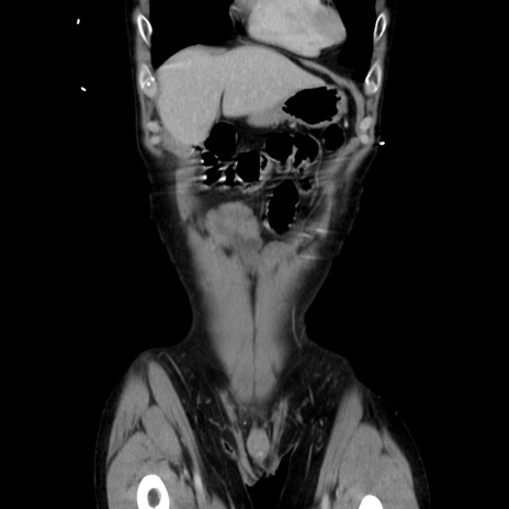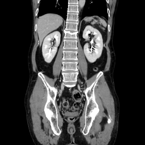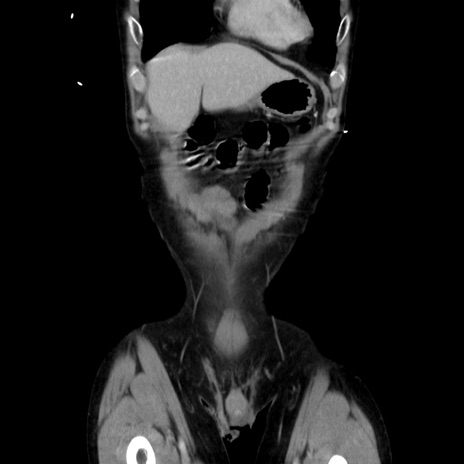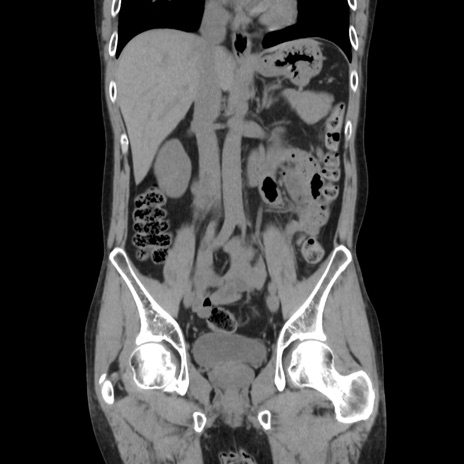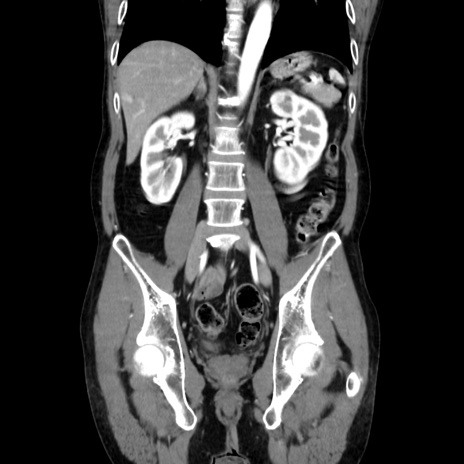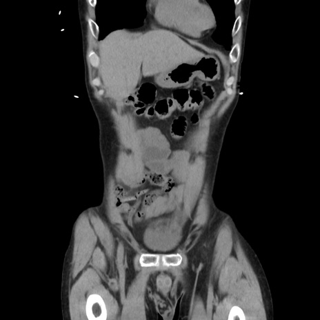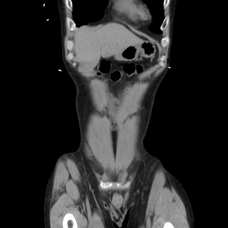 【症例】40歳代 男性 【主訴】腹痛 【現病歴】4時間ほど前に電車に乗車中に臍部上より腹痛出現。徐々に増悪し起立困難となり、救急外来受診。生ものは数日食べていない。今朝お雑煮を食べた。 【既往歴】なし 【身体所見】BT 36.8℃、BP 117/84mmHg、HR 91/min、SpO2 97%、苦悶様、腹部:臍上部広範囲圧痛あり、反跳痛± 【データ】WBC 8100、CRP 0.03