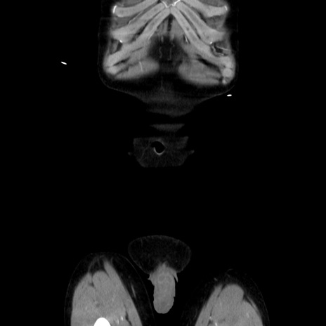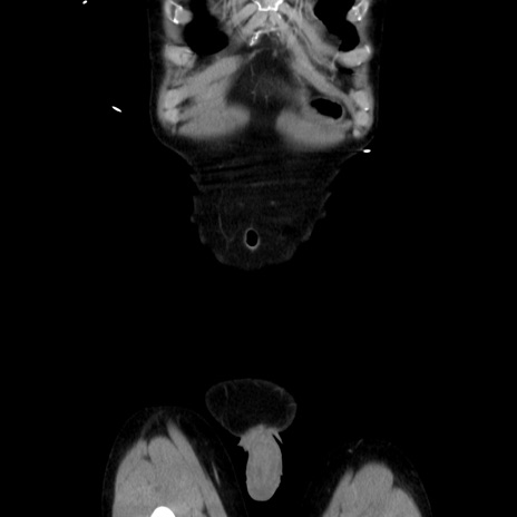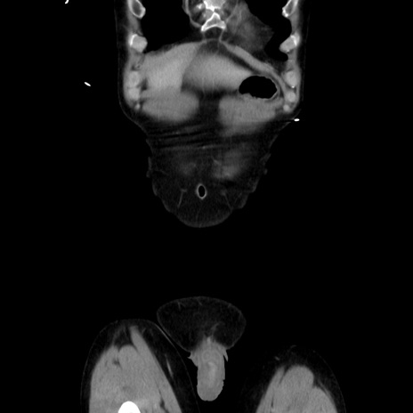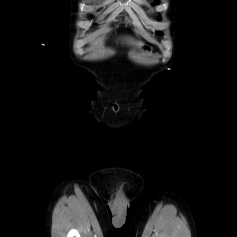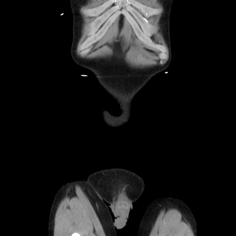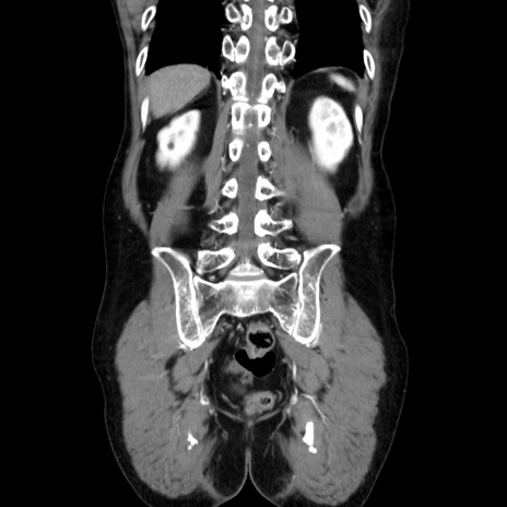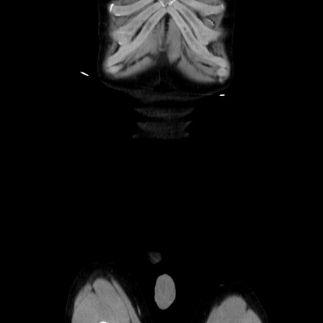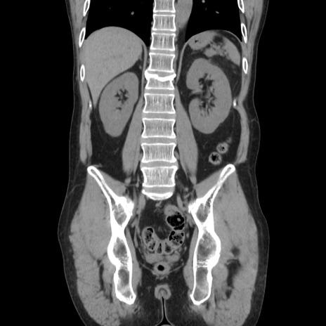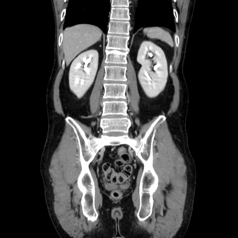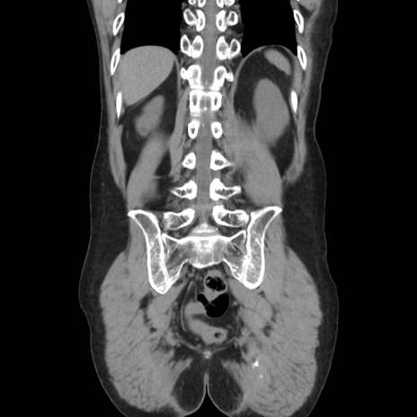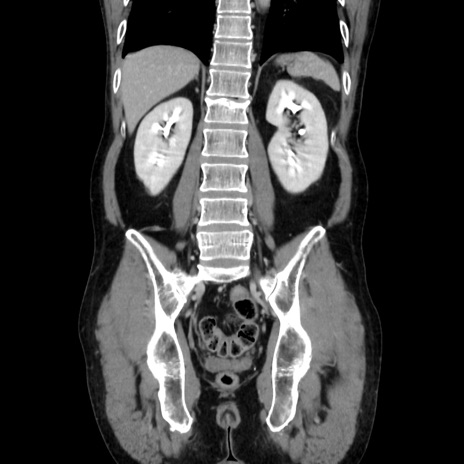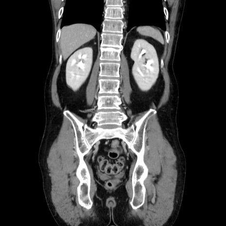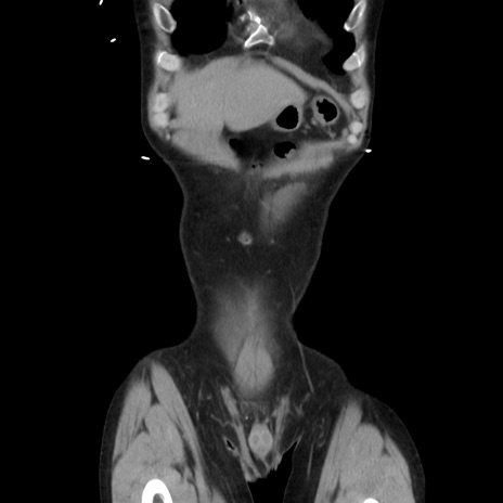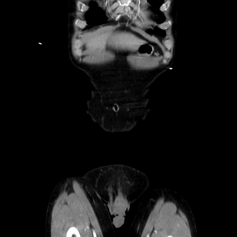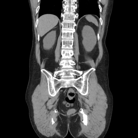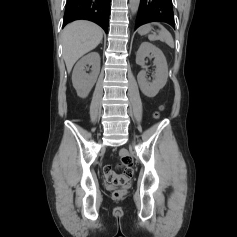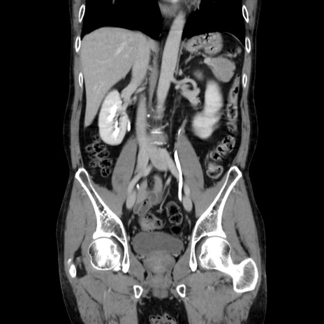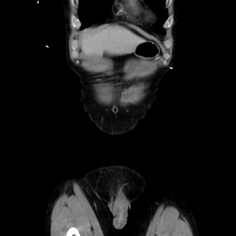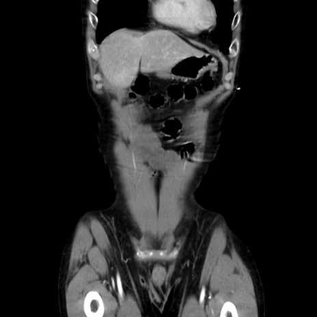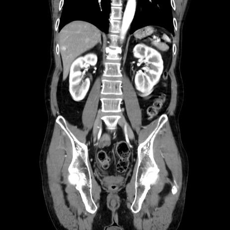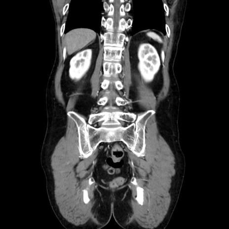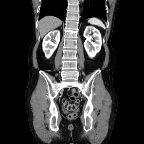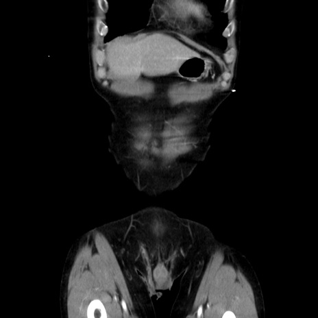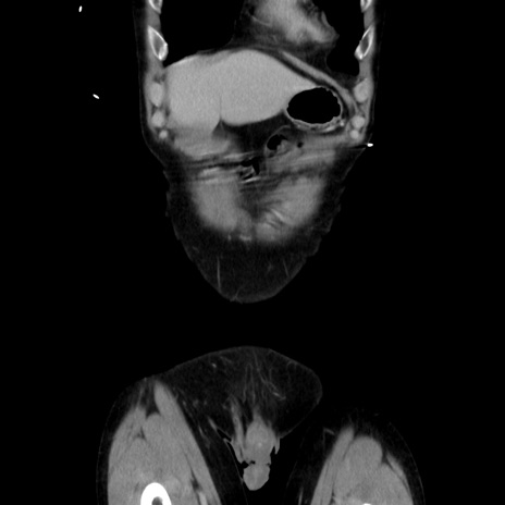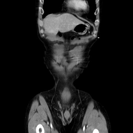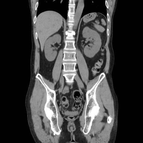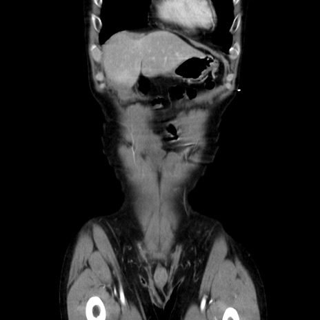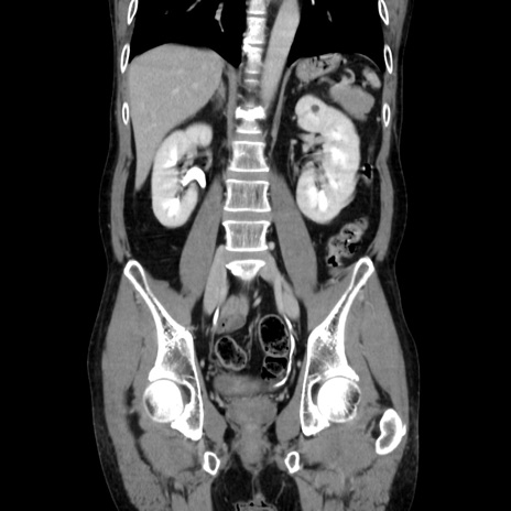 【症例】40歳代 男性 【主訴】腹痛 【現病歴】4時間ほど前に電車に乗車中に臍部上より腹痛出現。徐々に増悪し起立困難となり、救急外来受診。生ものは数日食べていない。今朝お雑煮を食べた。 【既往歴】なし 【身体所見】BT 36.8℃、BP 117/84mmHg、HR 91/min、SpO2 97%、苦悶様、腹部:臍上部広範囲圧痛あり、反跳痛± 【データ】WBC 8100、CRP 0.03