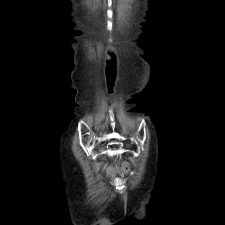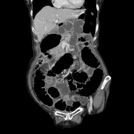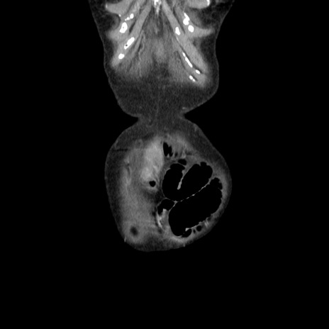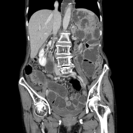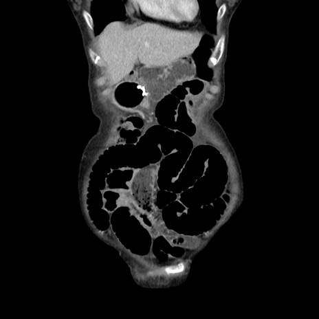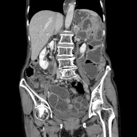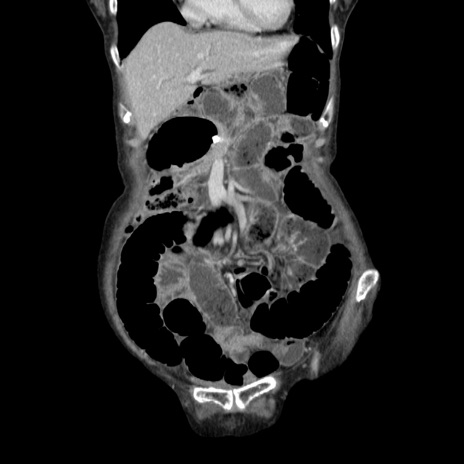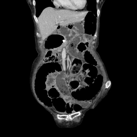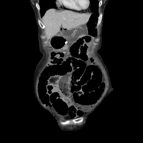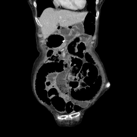 【症例】80歳代女性 【主訴】胸のつかえ感 【現病歴】約9時間前に食後から胸のつかえた感じあり、嘔吐あり、来院。 【既往歴】胃癌(全摘)、胆摘、虫垂炎 【身体所見】心窩部に圧痛あり、反跳痛なし。 【データ】WBC 5700、CRP 0.05