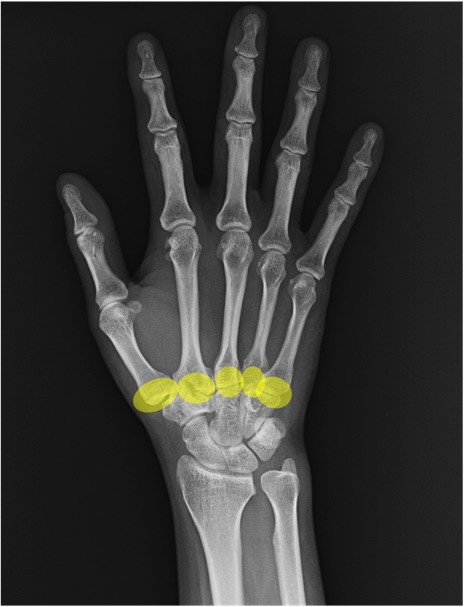 CM関節(carpometacarpal joint)の手関節レントゲン画像における正常解剖