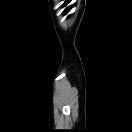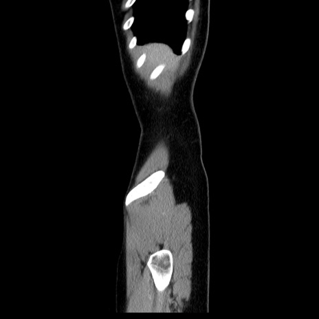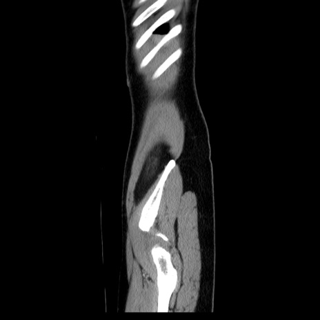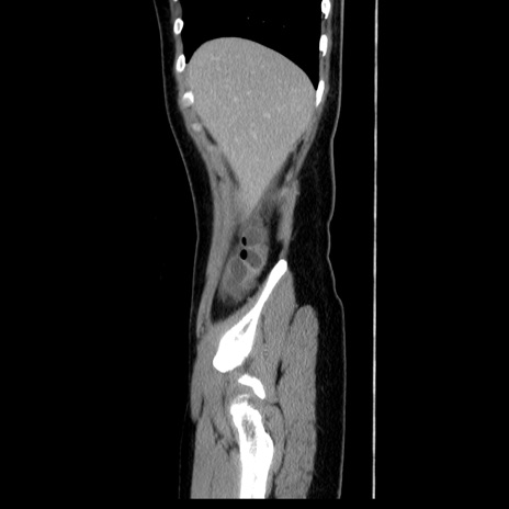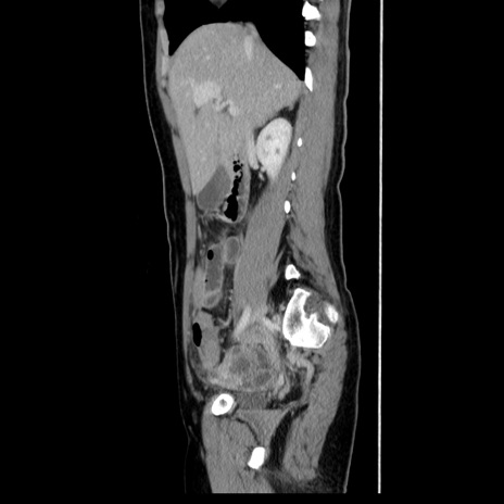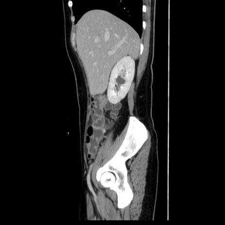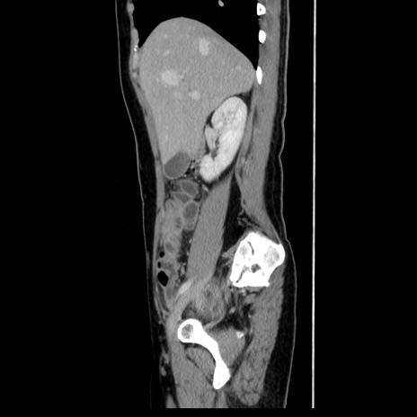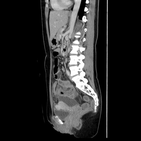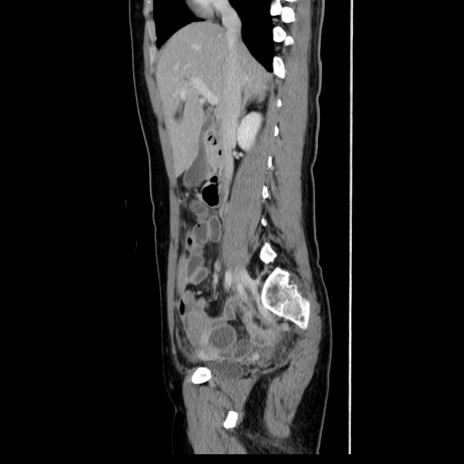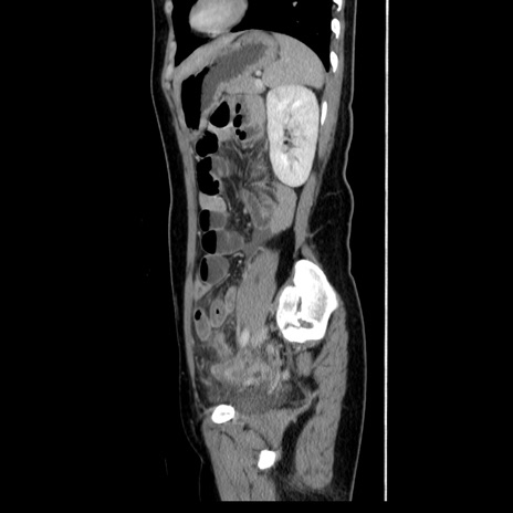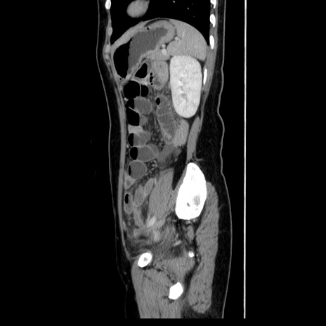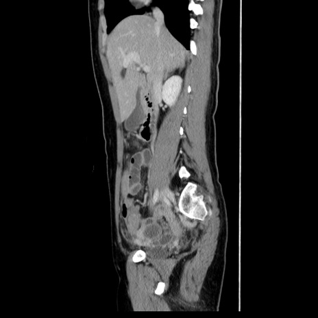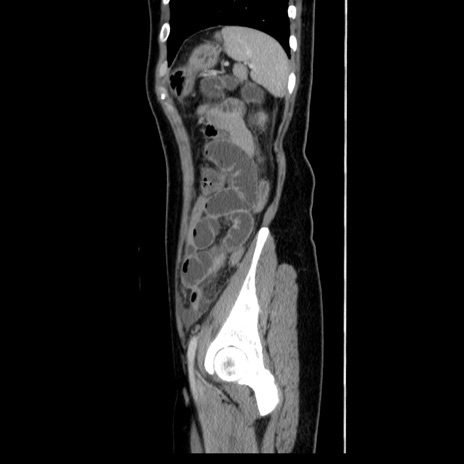 【身体所見】部:平坦・軟、左上下腹部に圧痛あり、反跳痛あり。