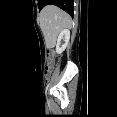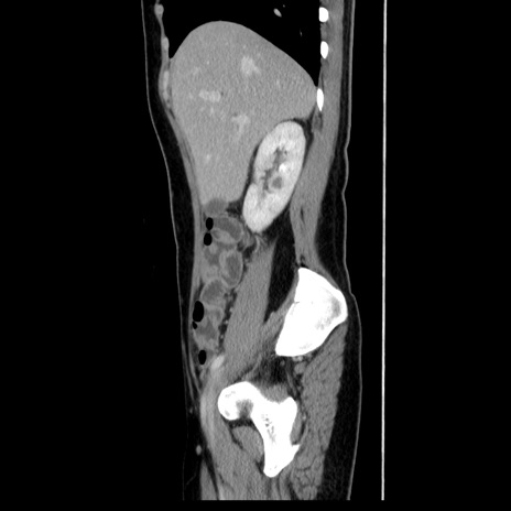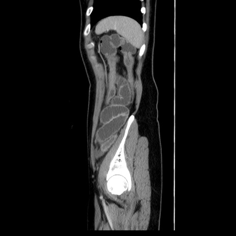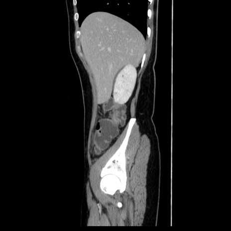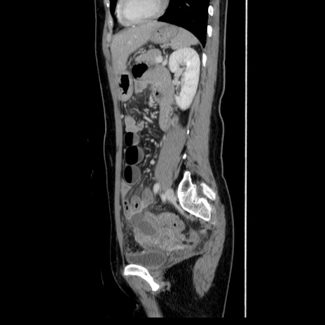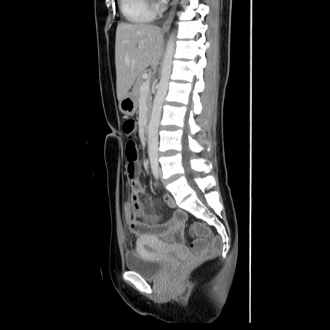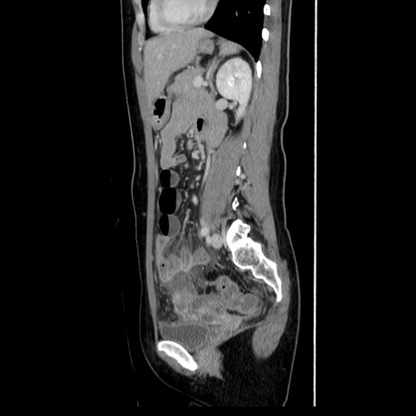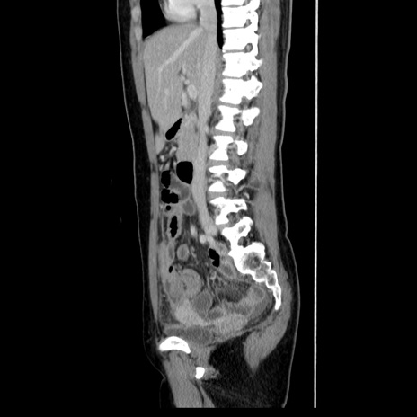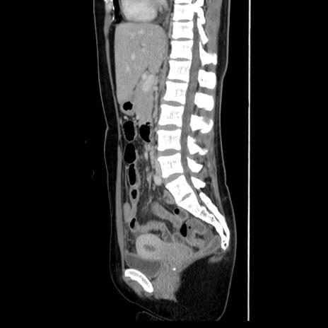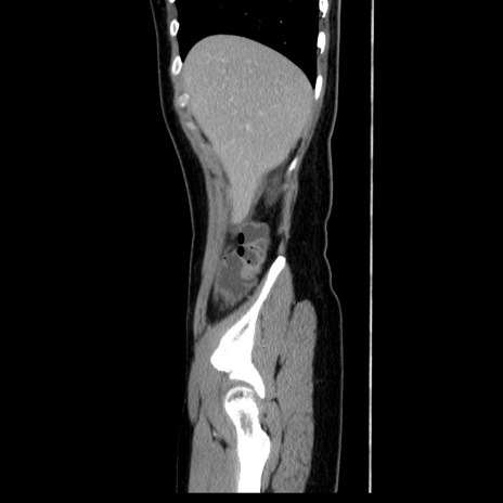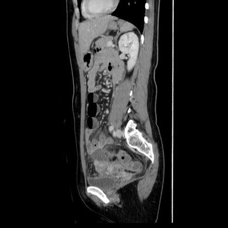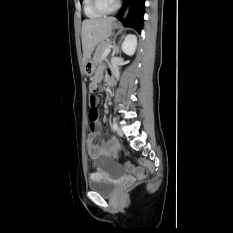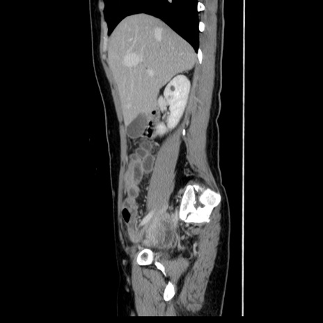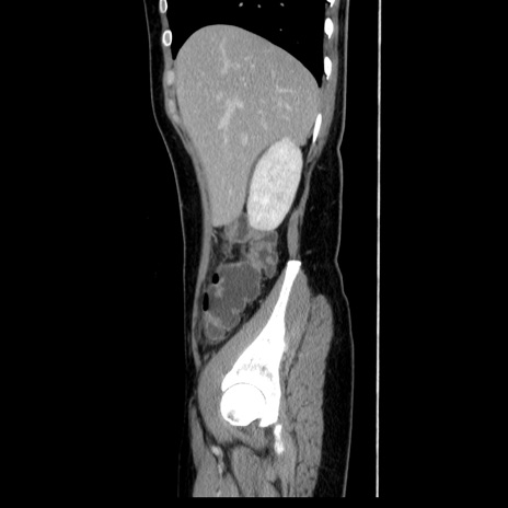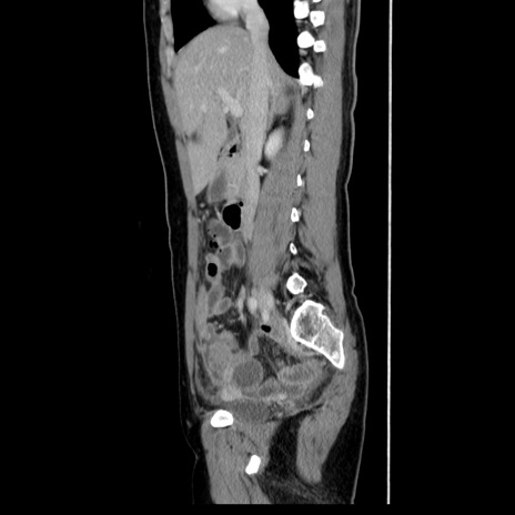 【現病歴】2日目から下腹部痛あり。夜間は痛みで眠れなかった。昨日より上腹部痛と下痢が出現。臥位で痛みは軽快したため、休んでいた。本日になって臥位でも立位でも痛みが強くなってきたため救急要請。