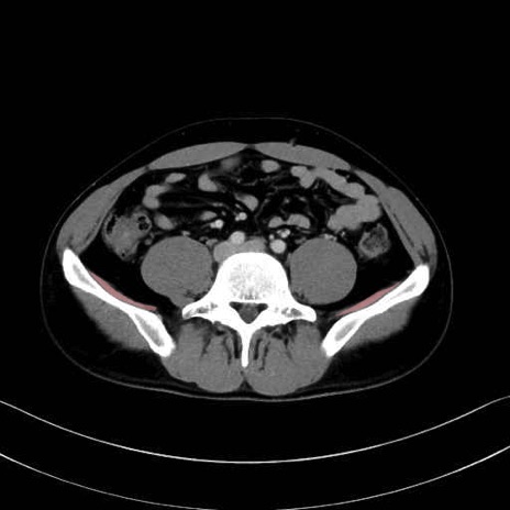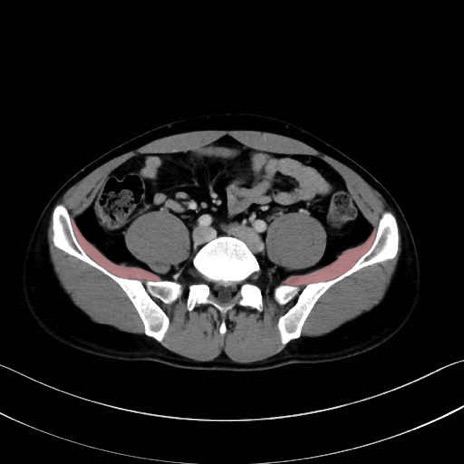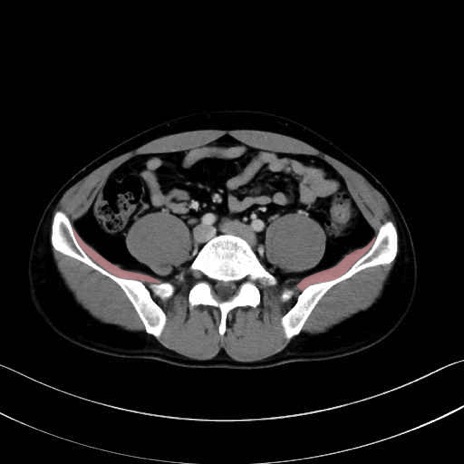 腸骨筋(iliac muscle) のCT画像の解剖