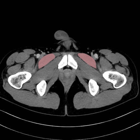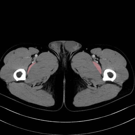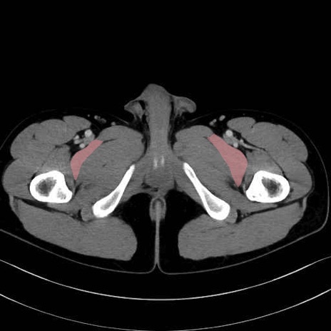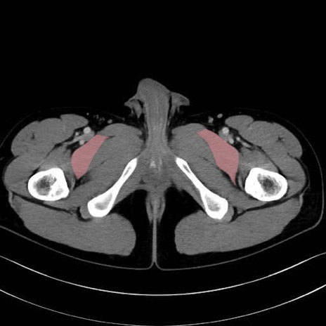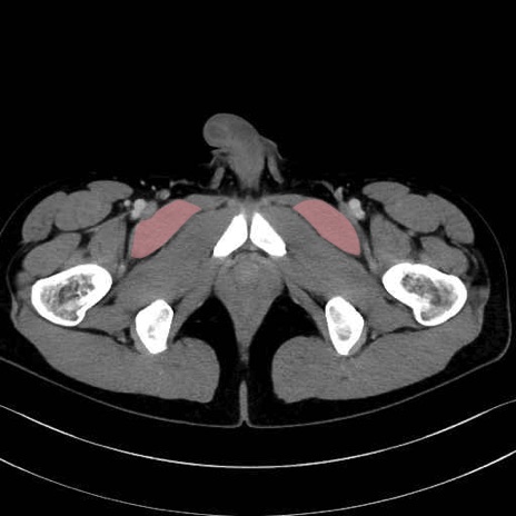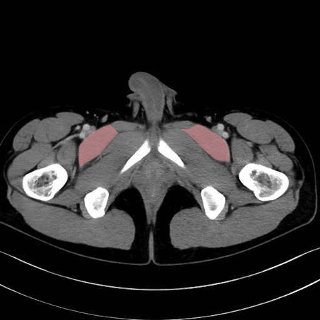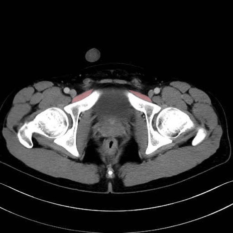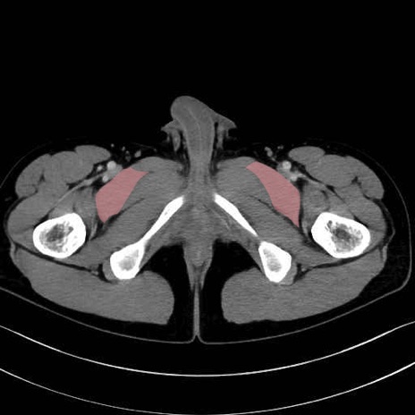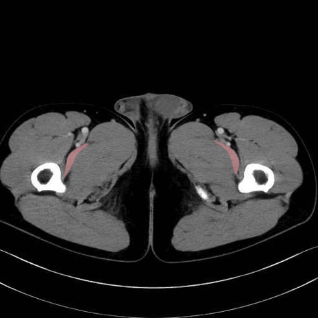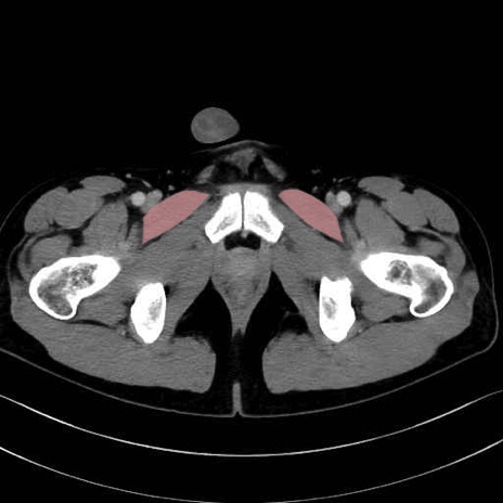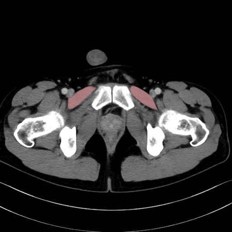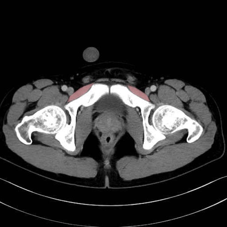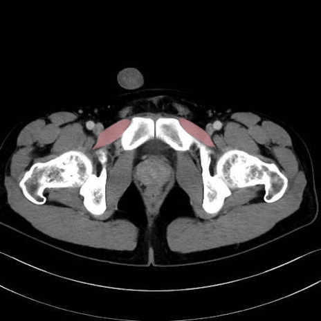 恥骨筋(pubic muscle) のCT画像の解剖