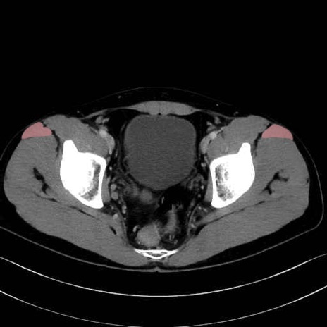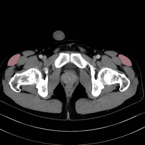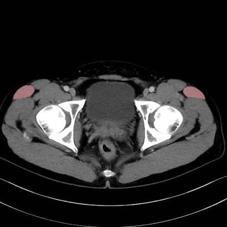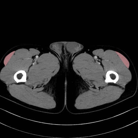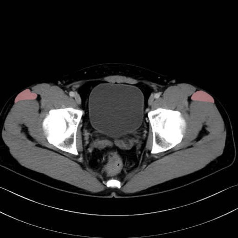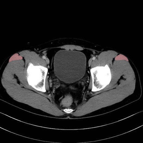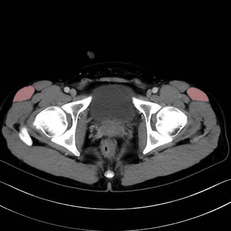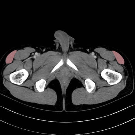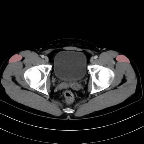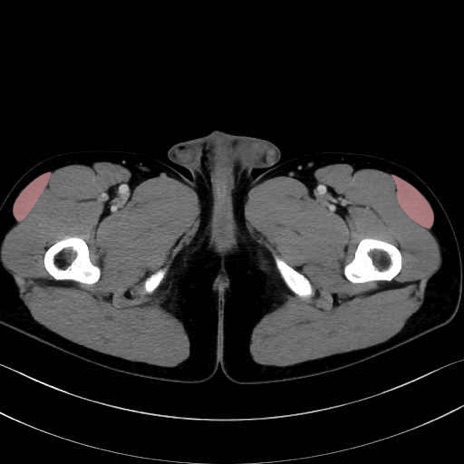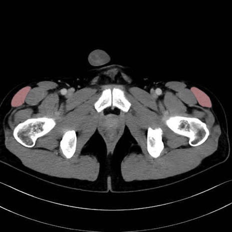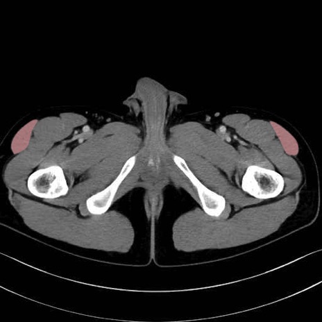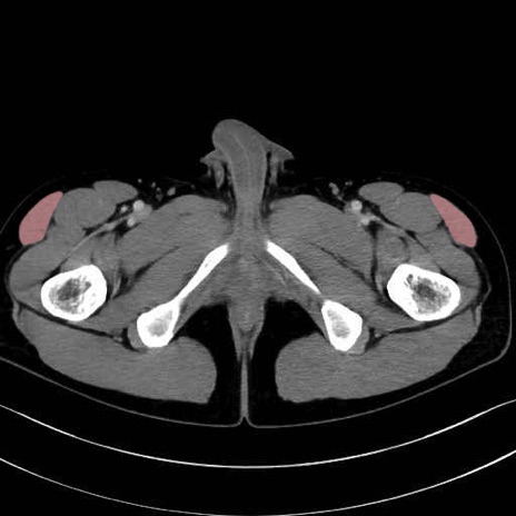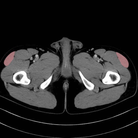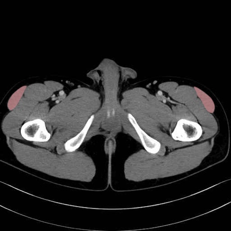 大腿筋膜張筋(tensor fasciae latae) のCT画像の解剖
