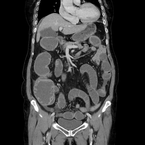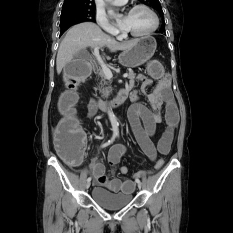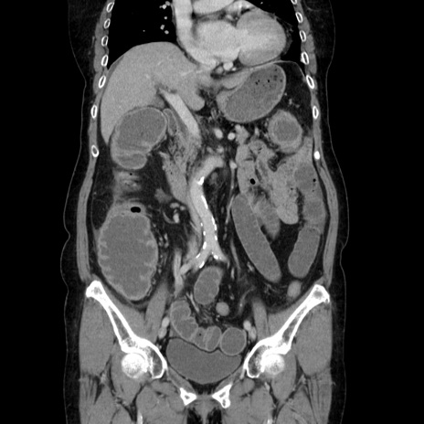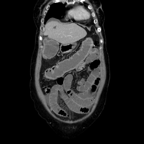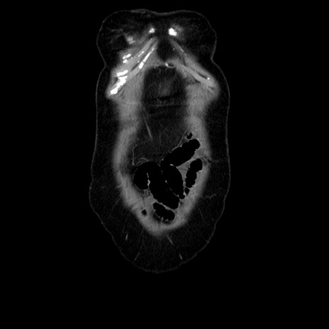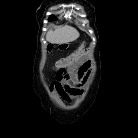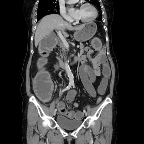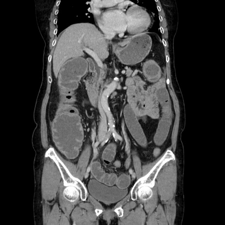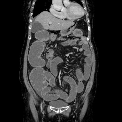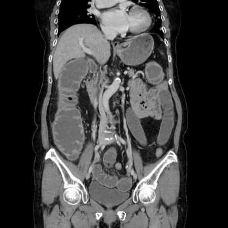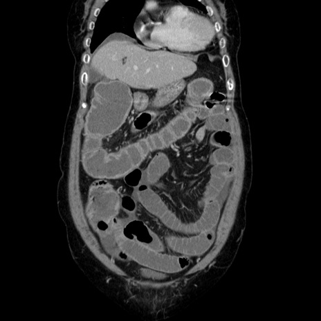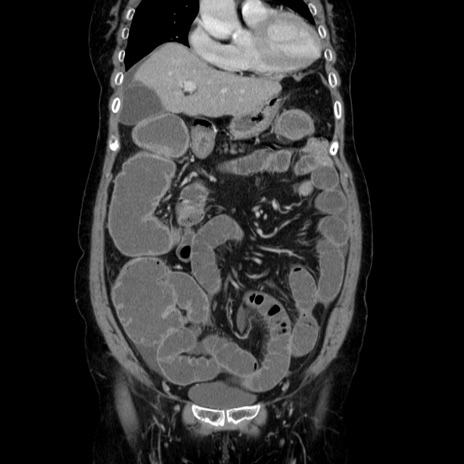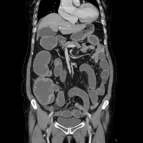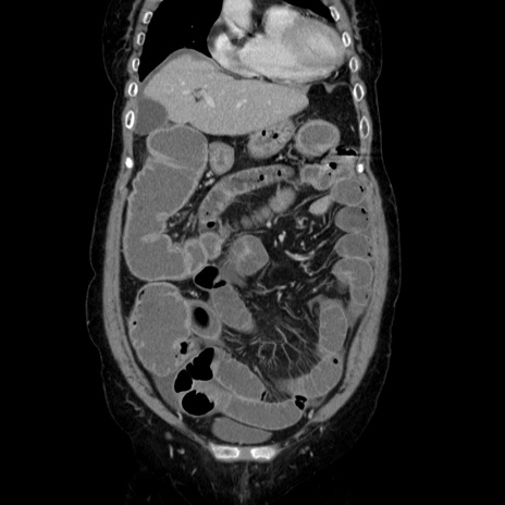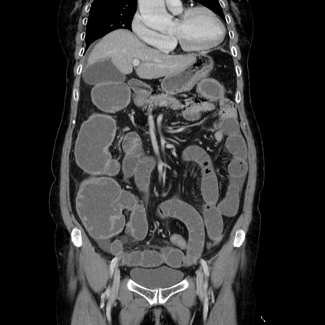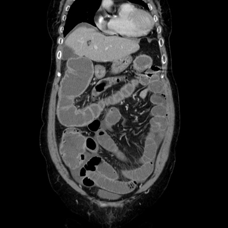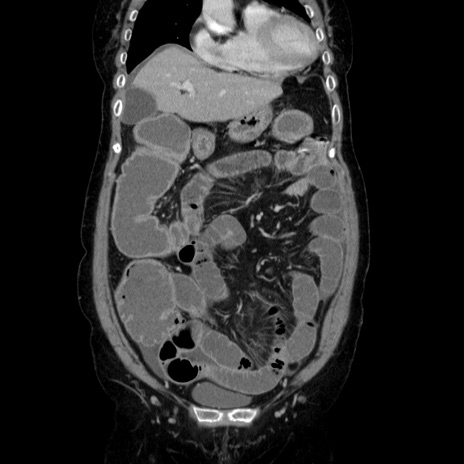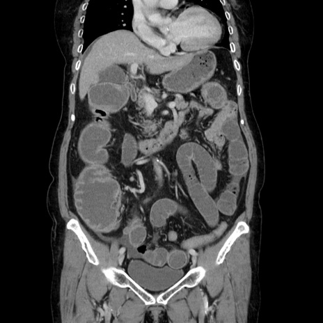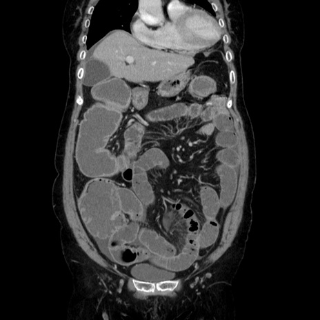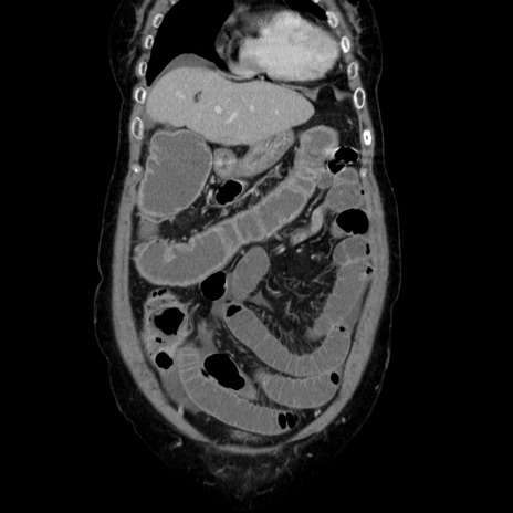 【症例】70歳代女性 【主訴】お腹が張る 【現病歴】1週間くらい前から腹部膨満の自覚あり。昨日夜から増悪したため、本日救急外来受診。 【既往歴】なし 【身体所見】意識清明、BT 36.5℃、BP 165/106mmHg、HR 80bpm、SpO2 98%、腹部:膨満、軟、自発痛・圧痛なし、触診にて不快感あり、腸蠕動音:減弱 【データ】WBC 12600、CRP 1.04