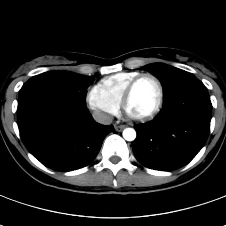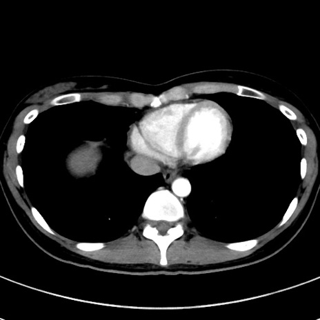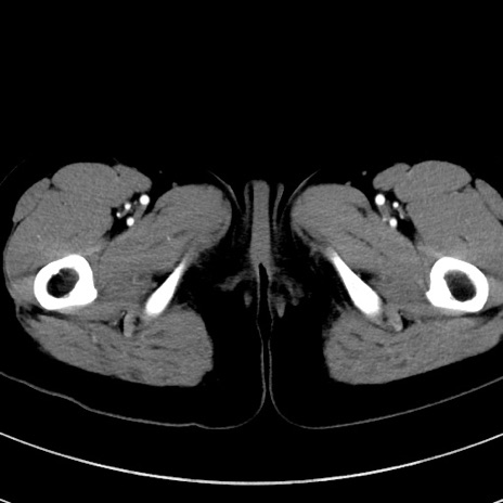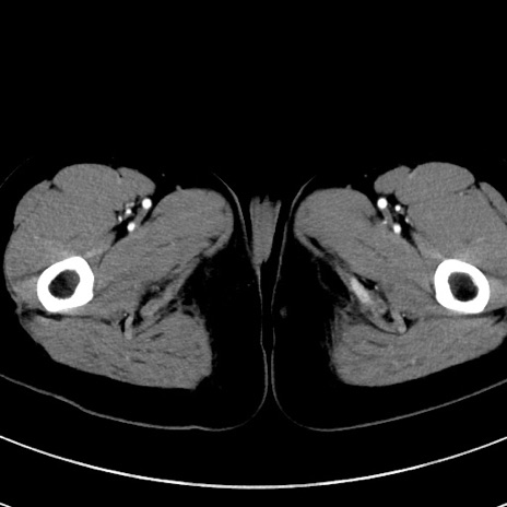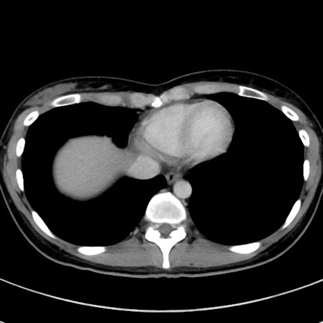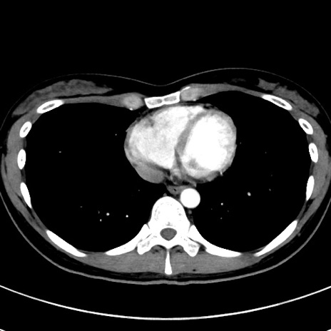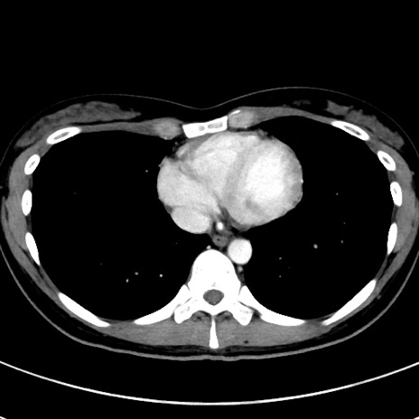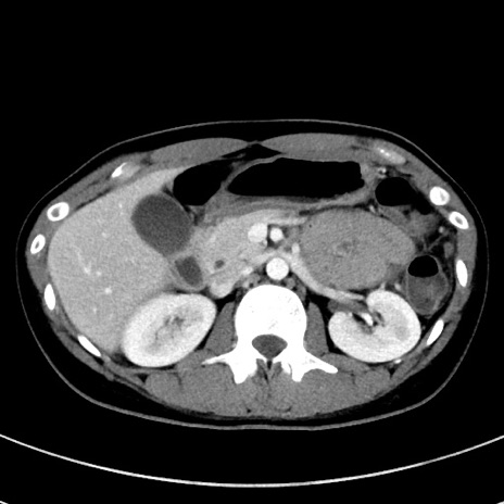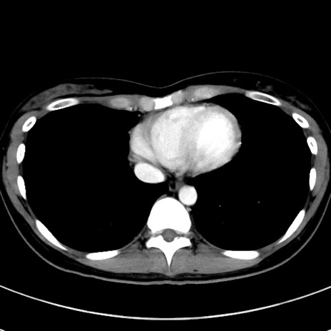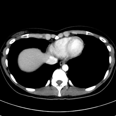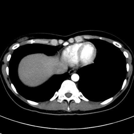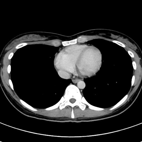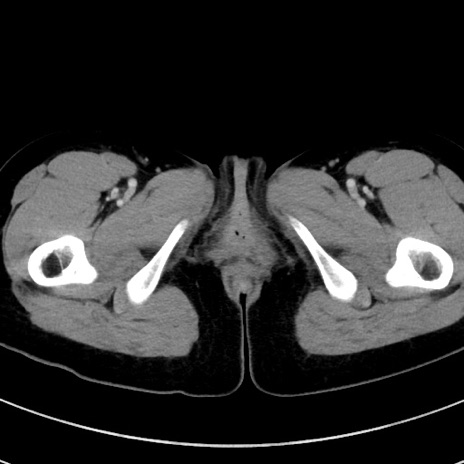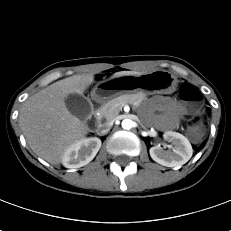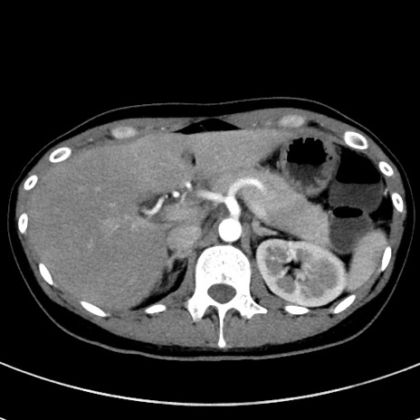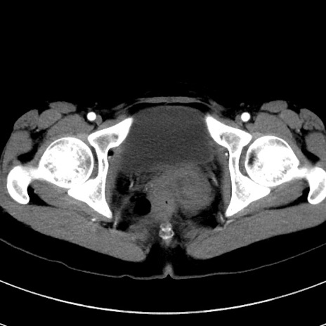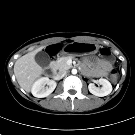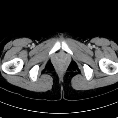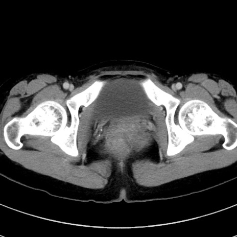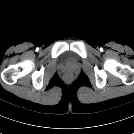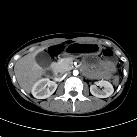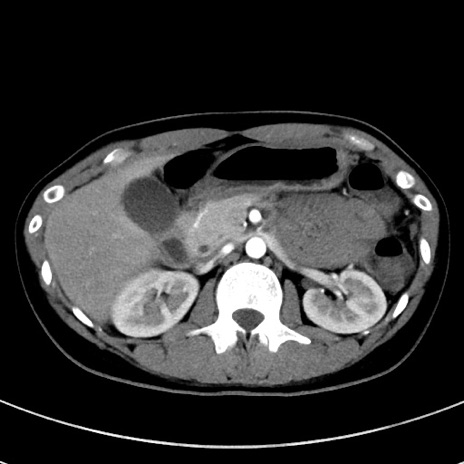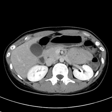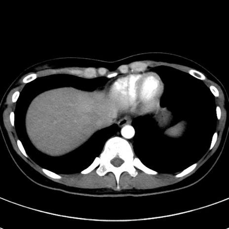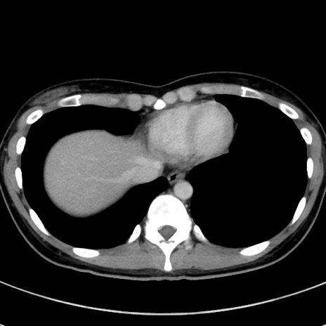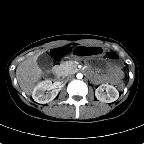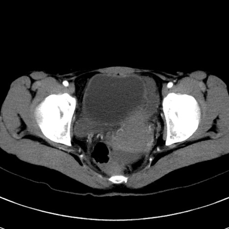 【症例】20歳代女性 【主訴】嘔吐、下腹部痛 【現病歴】昨日夕食後に嘔吐し下腹部痛が出現。本日になっても嘔吐持続し改善しないため来院。 【既往歴】なし。 【身体所見】意識清明、BT 37.2℃、BP 108/67mmHg、腹部:平坦、やや硬、下腹部正中から右にかけて圧痛あり、反跳痛軽度あり、tapping pain(+)。 【データ】WBC 13600、CRP 14.94