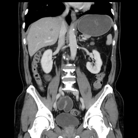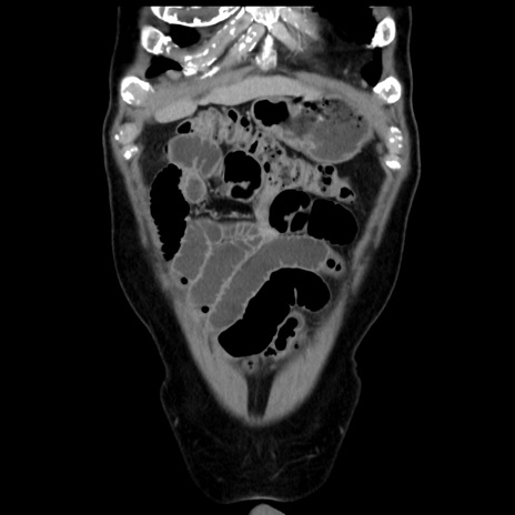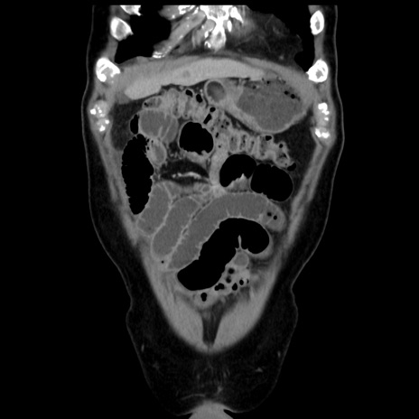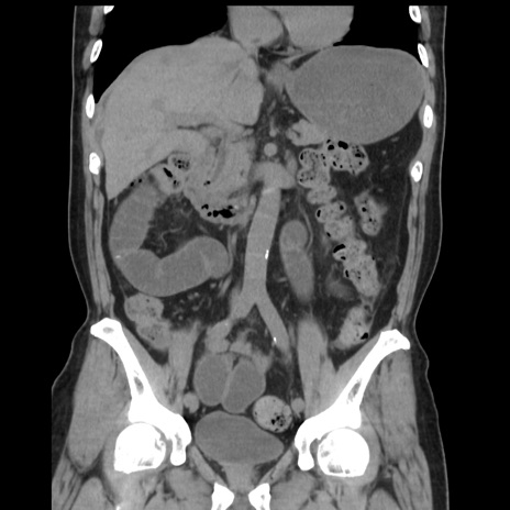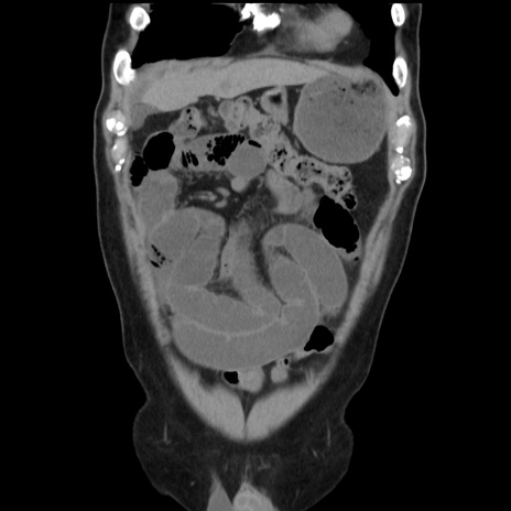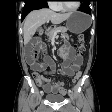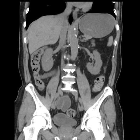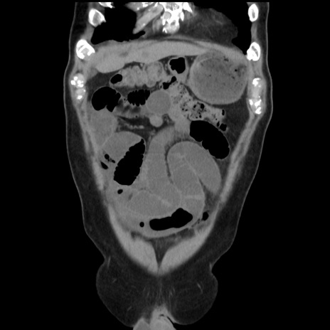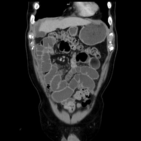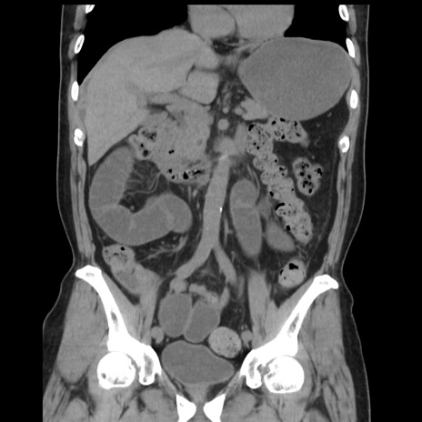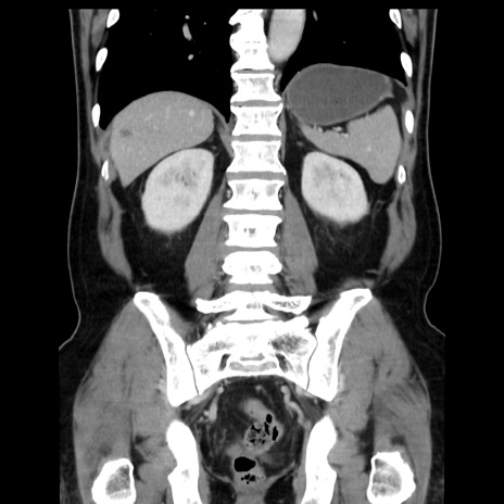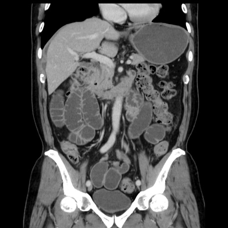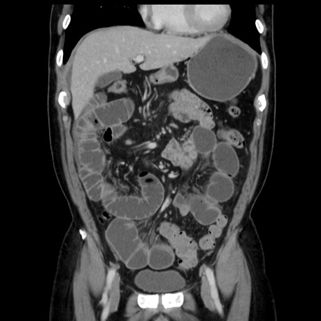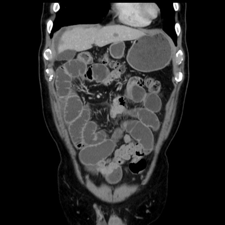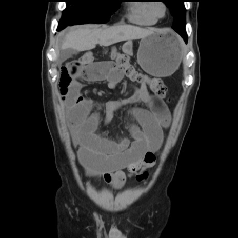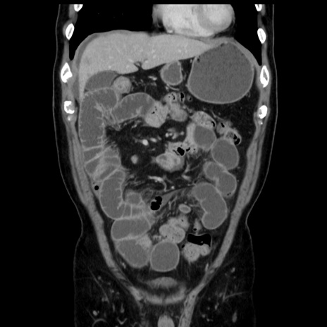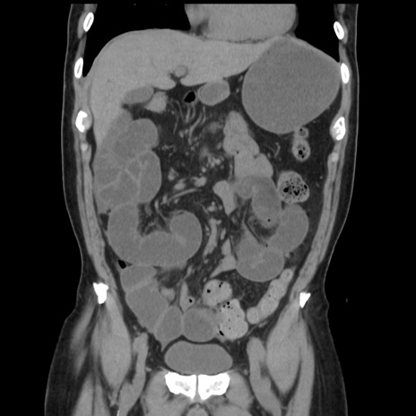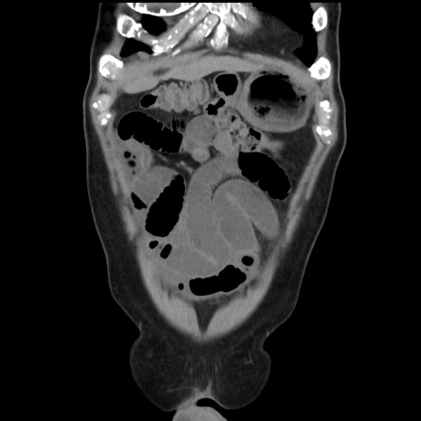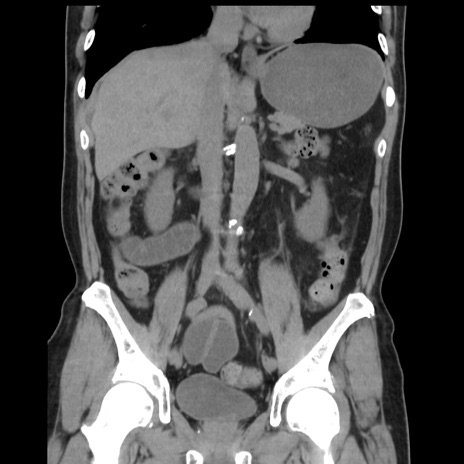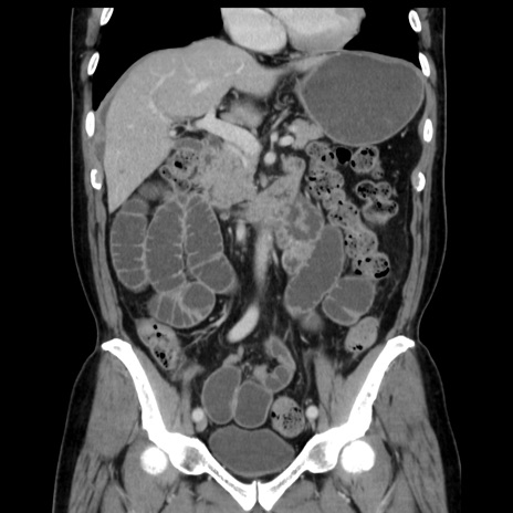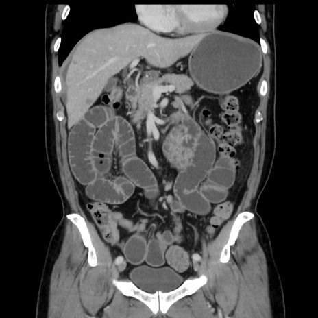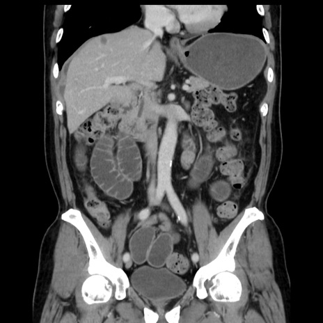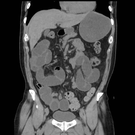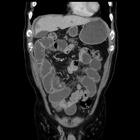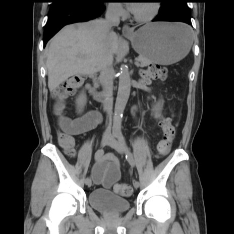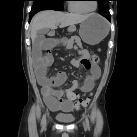 【現病歴】 約1ヶ月前より間欠的に腹痛と嘔吐あり、当院消化器内科を受診したところCTで多発する肝臓のLDAを指摘され、精査中であった。以降は消化器症状は安定していたが、2日前より嘔気と腹痛があり、同日より排便・排ガスが消失した。改善認めず、 本日、救急外来を受診した。