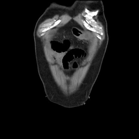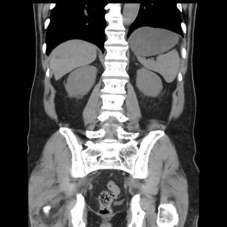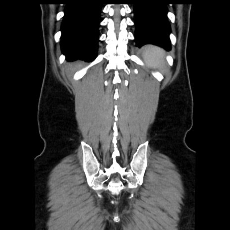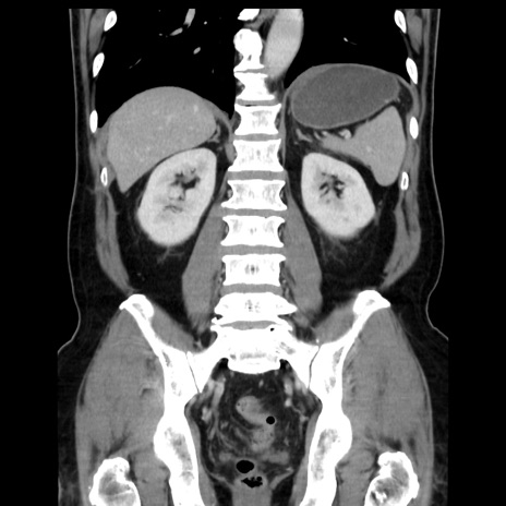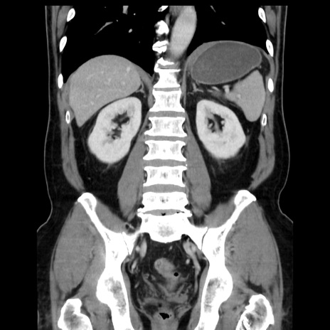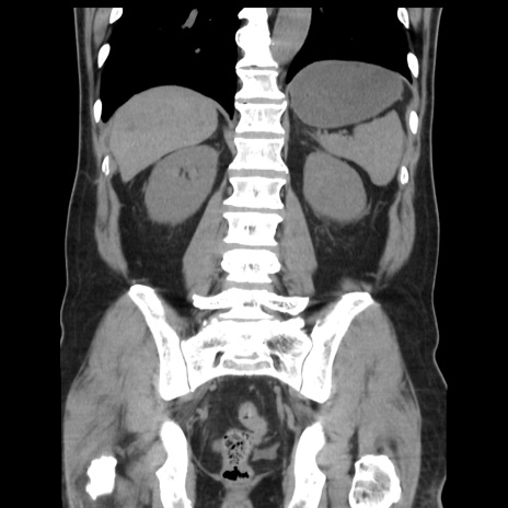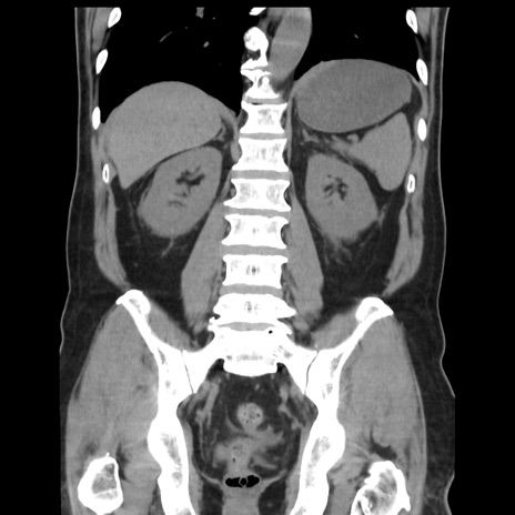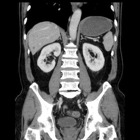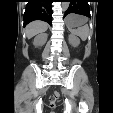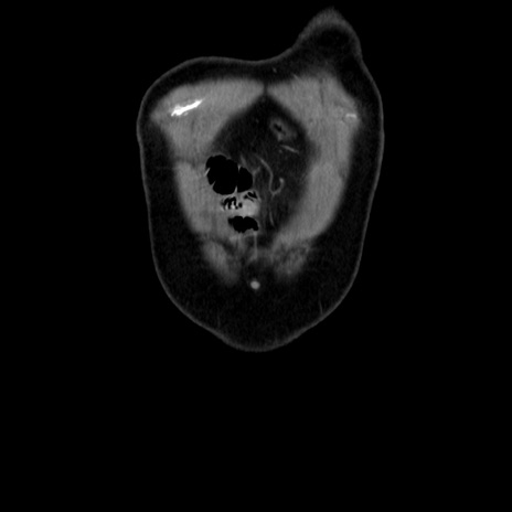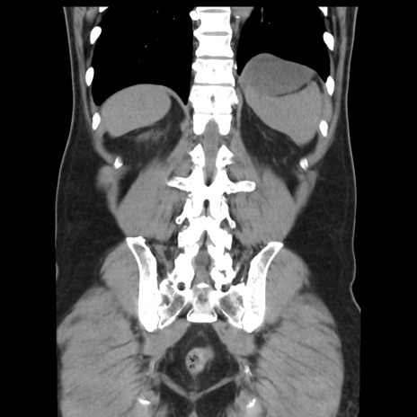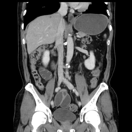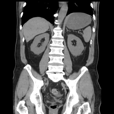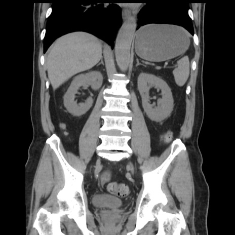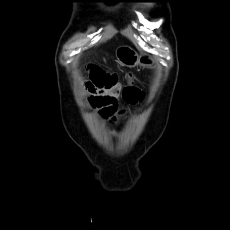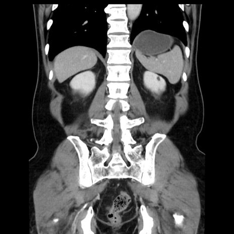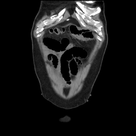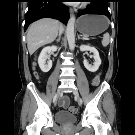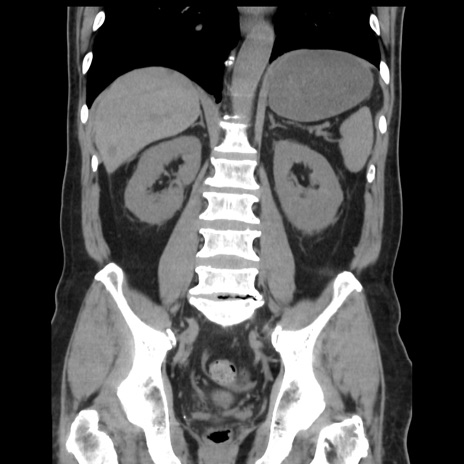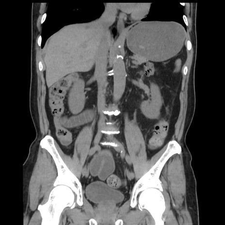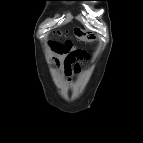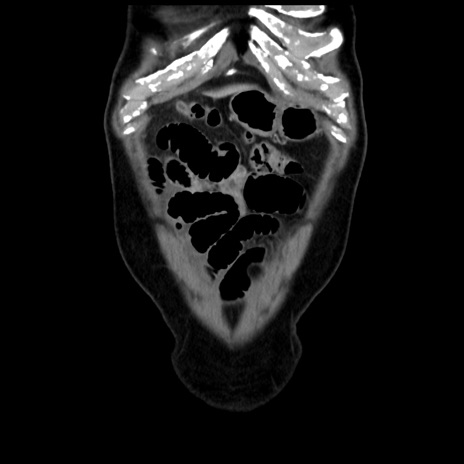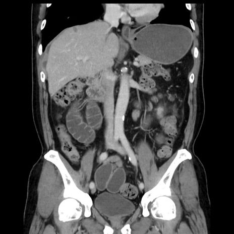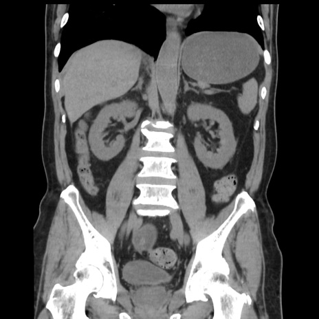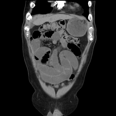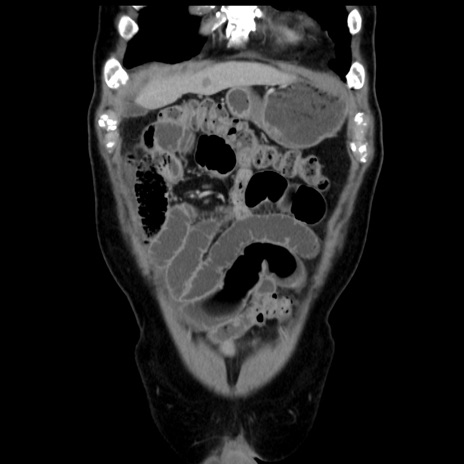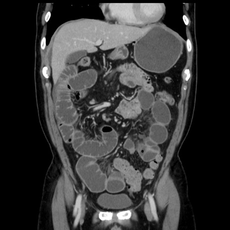 【現病歴】 約1ヶ月前より間欠的に腹痛と嘔吐あり、当院消化器内科を受診したところCTで多発する肝臓のLDAを指摘され、精査中であった。以降は消化器症状は安定していたが、2日前より嘔気と腹痛があり、同日より排便・排ガスが消失した。改善認めず、 本日、救急外来を受診した。