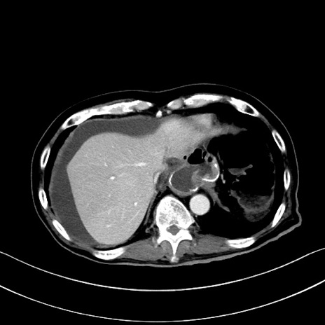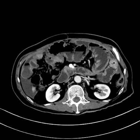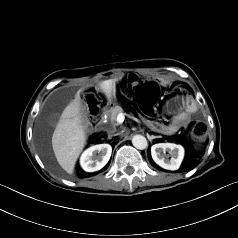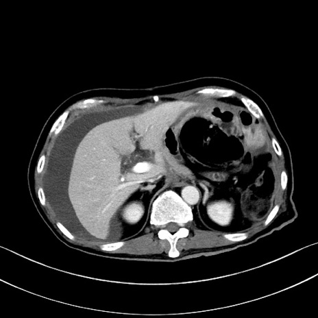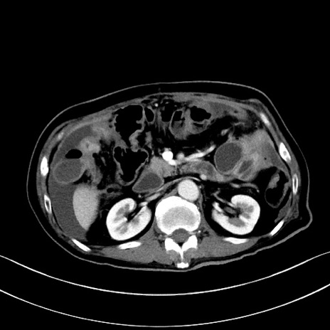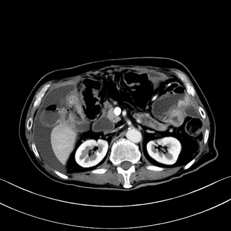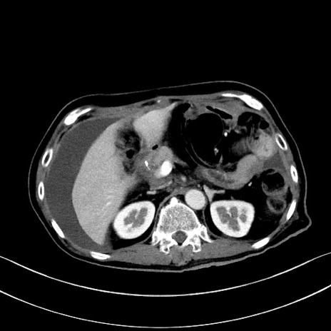 【症例】60歳代男性 【主訴】嘔吐 【現病歴】胃癌にて胃全摘後。食思不振が悪化し、夜中に嘔吐することがある。 【既往歴】胃癌、胃全摘、脾摘、胆摘後 【データ】WBC 5900、CRP 10.56