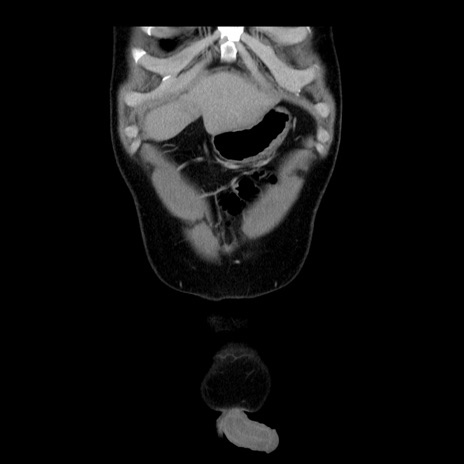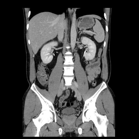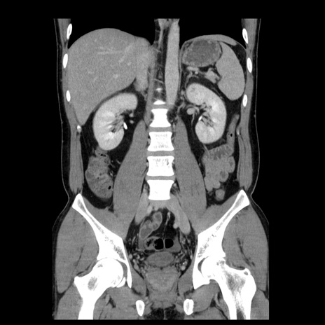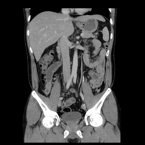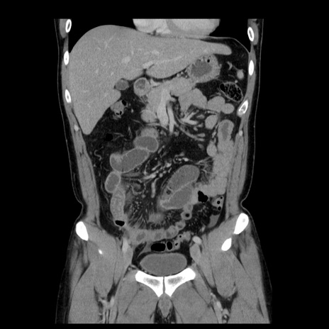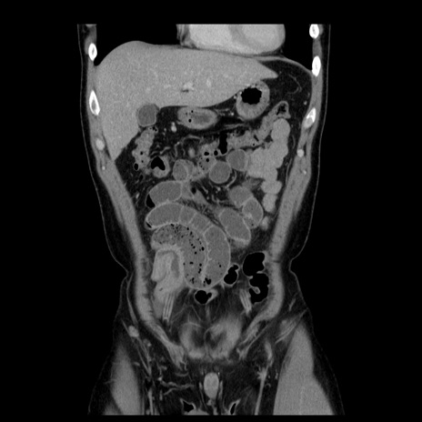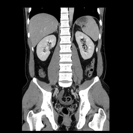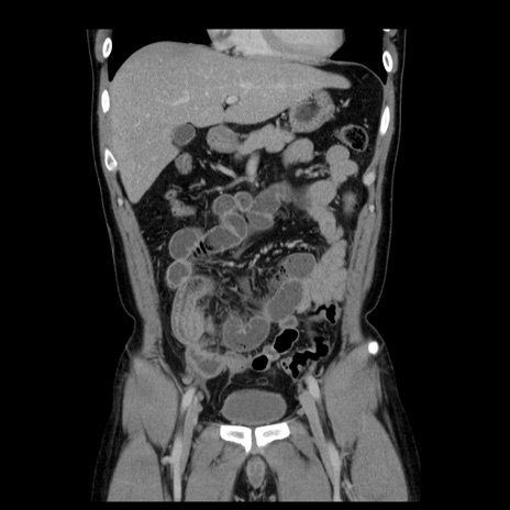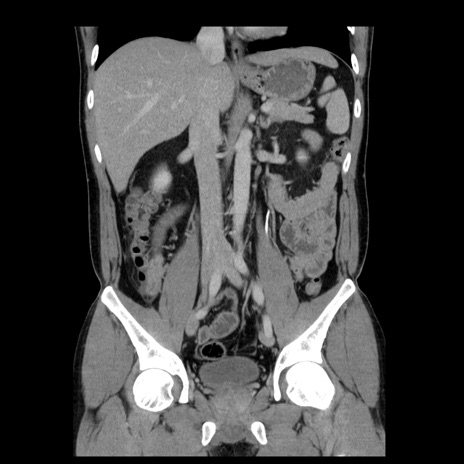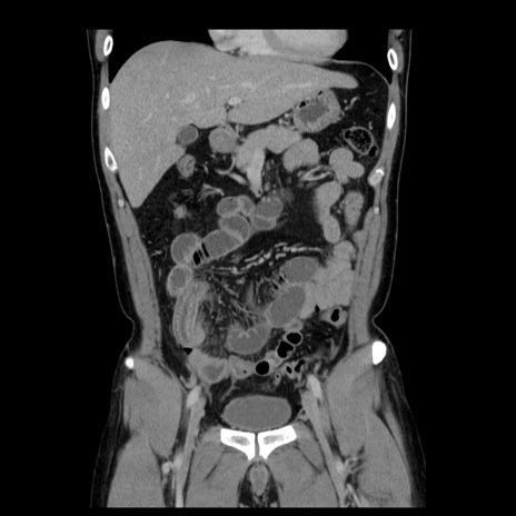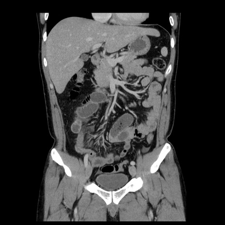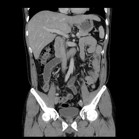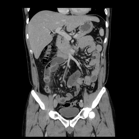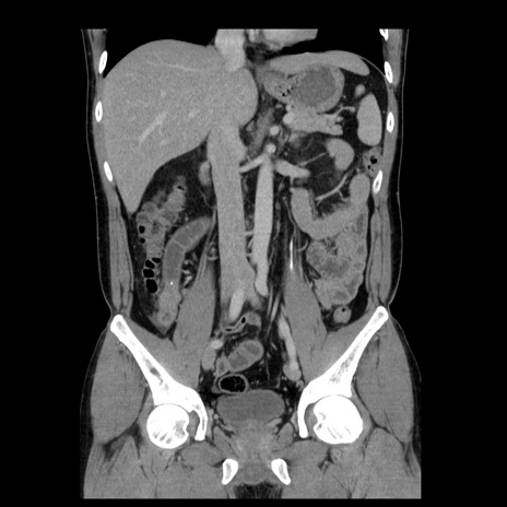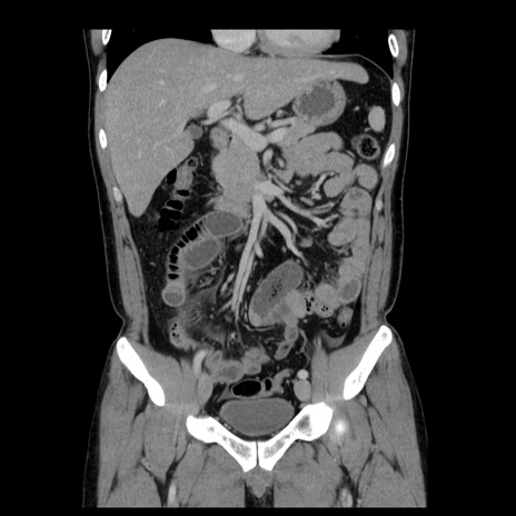 【症例】30歳代男性 【主訴】腹痛、嘔吐 【現病歴】昨晩から突然の腹痛あり、その後嘔吐、軟便も出現。腹痛が改善しないため救急搬送となる。2日前にしめ鯖の食事歴あり。 【身体所見】意識清明、苦悶様、BP 135/90mmHg、BT 35.7℃、腹部:平坦、やや硬、心窩部〜臍部に自発痛、圧痛あり、筋性防御+、反跳痛- 【データ】WBC 8100、CRP 0.57
