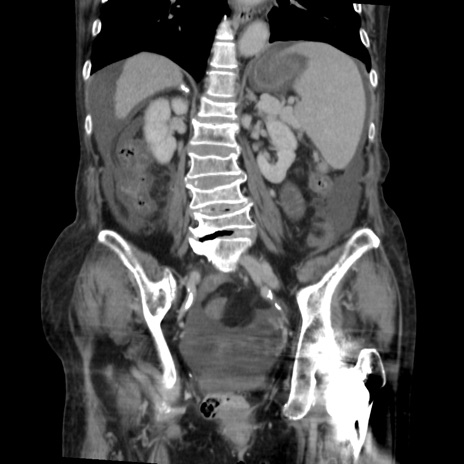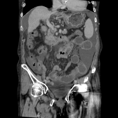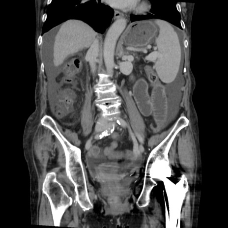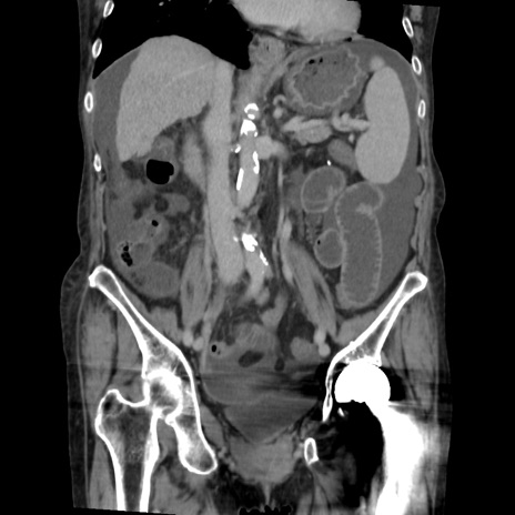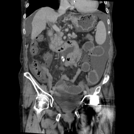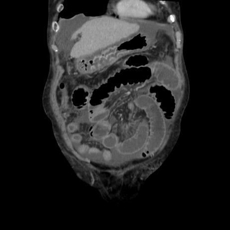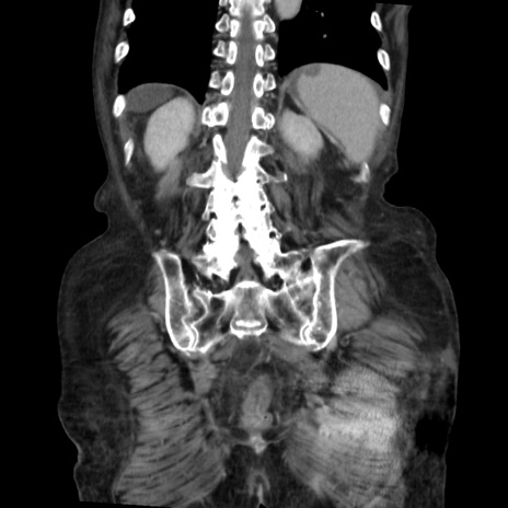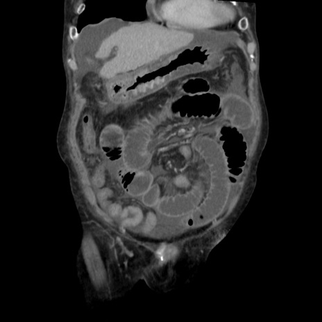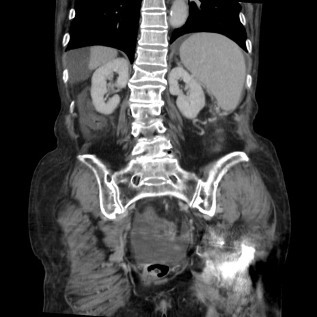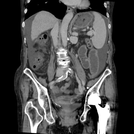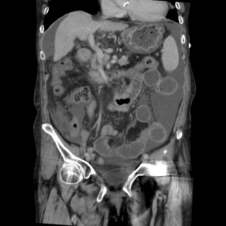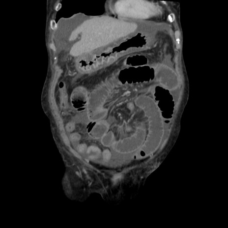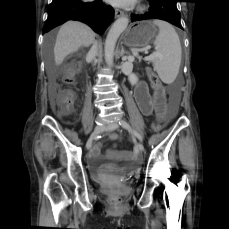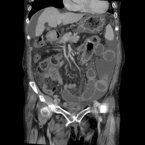 【症例】80歳代 女性 【主訴】腹部膨満感 【現病歴】他院にて肝硬変にてフォロー中。1週間前から便秘、腹部膨満感、臍部腫瘤あり受診となる。 【既往歴】肝硬変 【身体所見】腹部膨隆あり、皮膚変化なし、疼痛なし。 【データ】WBC 4600、CRP 0.25