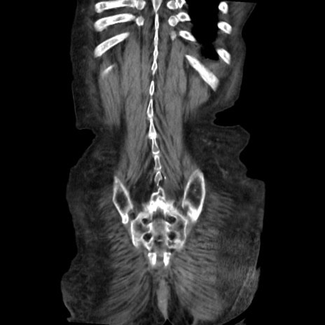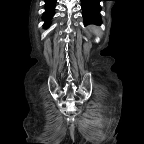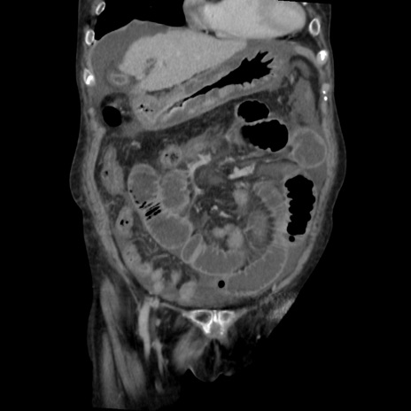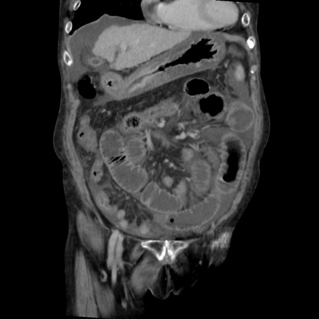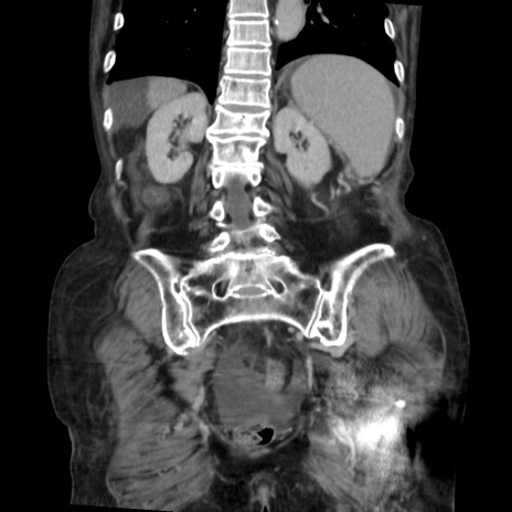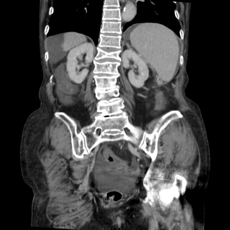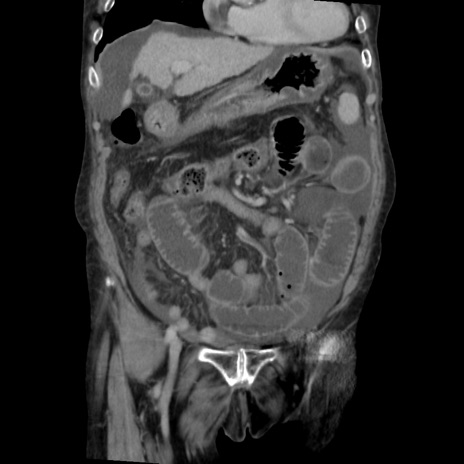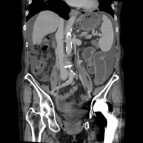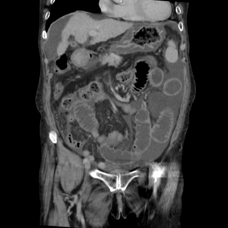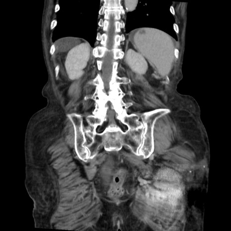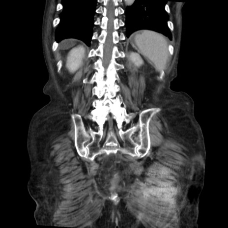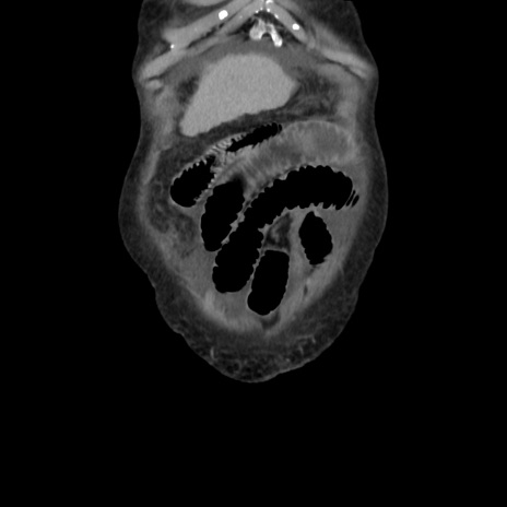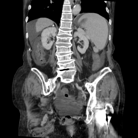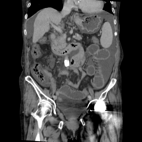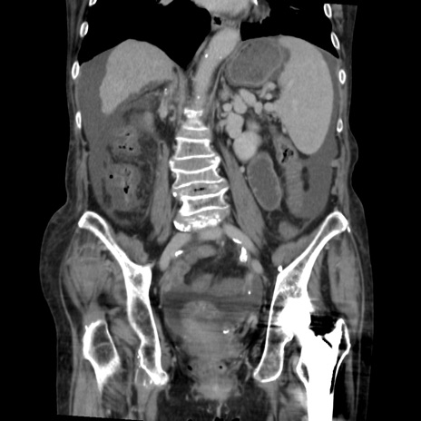 【症例】80歳代 女性 【主訴】腹部膨満感 【現病歴】他院にて肝硬変にてフォロー中。1週間前から便秘、腹部膨満感、臍部腫瘤あり受診となる。 【既往歴】肝硬変 【身体所見】腹部膨隆あり、皮膚変化なし、疼痛なし。 【データ】WBC 4600、CRP 0.25